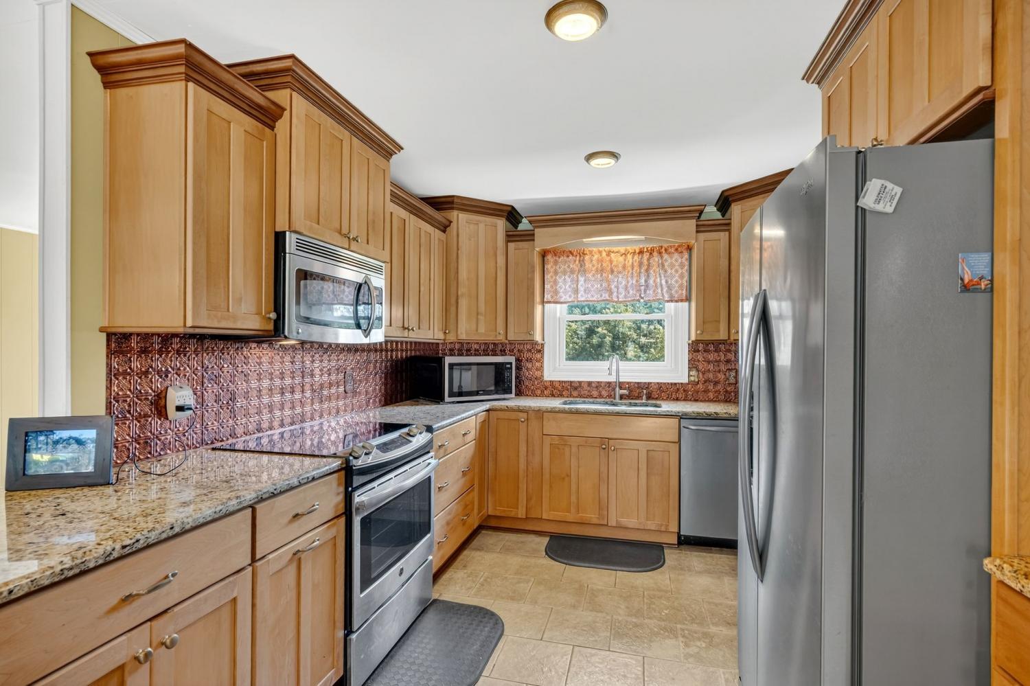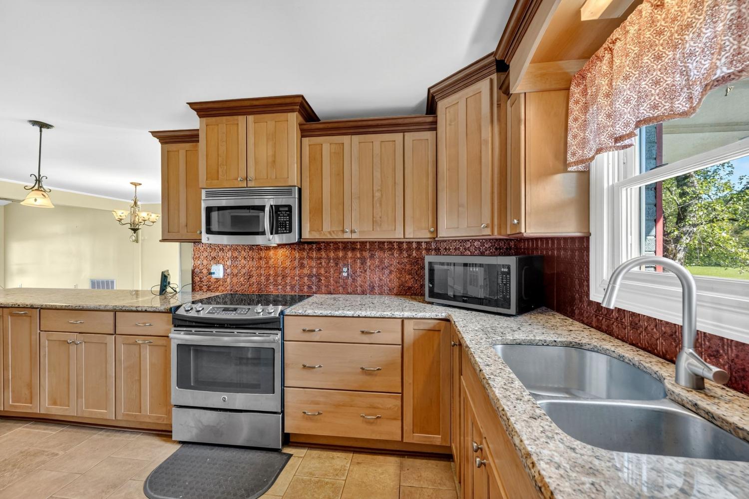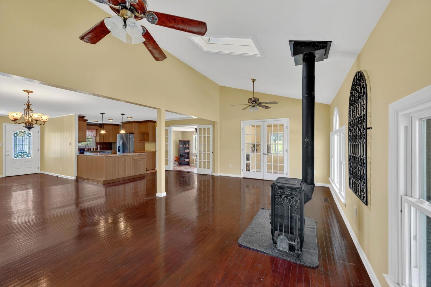 Your Perfect Country Retreat on 10 acres with Spacious Basement Rancher, horse barn, chicken coop, guest home, RV pad complete with septic, equipment shed, greenhouses, workshops, She shed, Covered outdoor seating area overlooking beautiful flower gardens with two fountain ponds. Cross fenced pastures, garden spots -perfect for country living, entertaining, and enjoying every sunny day! Open floor plan with Chef's kitchen with custom cabinets, granite counters, stainless steel appliances, wood burning stove, hardwood floors, luxurious master suite with claw foot tub and large shower and lots of storage. This property blends, space, functionality and natural beauty-ready to welcome you home!