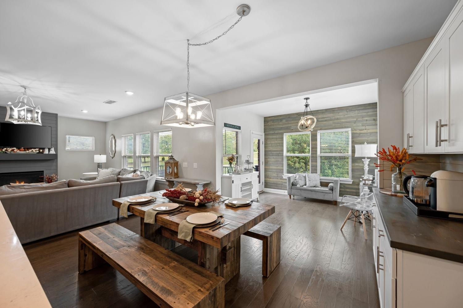 Tucked on a quiet cul-de-sac, this stunning all-brick home offers timeless curb appeal with its charming front porch, two-car garage, and serene views overlooking the 14th hole of the Foxland Harbor Golf Course. Enjoy resort-style living surrounded by rolling hills, peaceful lake breezes, and the natural beauty of one of Middle Tennessee’s most sought-after communities. Inside, the main level features an enclosed office, a spacious great room, and an elegant dining area that flows seamlessly into the gourmet kitchen—complete with a large island, double ovens, stainless steel refrigerator, and a built-in coffee buffet. The sun-filled keeping room and inviting outdoor living spaces make entertaining effortless. Upstairs, you’ll find four bedrooms, including a luxurious primary suite with double vanities, a soaking tub, and a separate shower. A versatile loft and convenient laundry room complete the upper level, offering both comfort and functionality. The finished basement provides a private bedroom and bath, a large bonus room, and generous storage space—perfect for guests, hobbies, or movie nights. Washer, dryer, and interior blinds remain with the home. Foxland Harbor residents enjoy an unparalleled lifestyle with access to golf, tennis, fitness, pool, and lake amenities—all just 25 miles from downtown Nashville. Membership to Tennessee Grasslands offers even more, including two premier golf courses, resort pools, clubhouses, and dining options. Located near Old Hickory Lake with nearby boat access and zoned for award-winning schools, this home offers the perfect blend of luxury, leisure, and location.