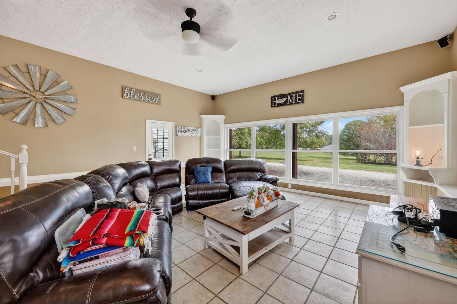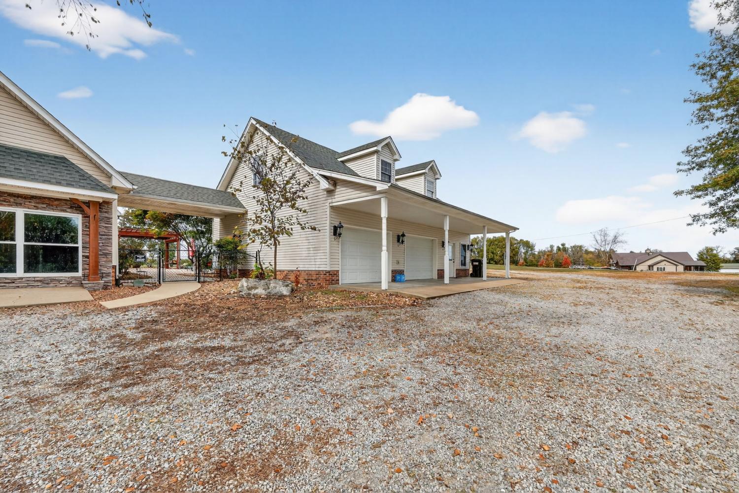 Welcome to this Cape Cod style home on 5 serene acres of countryside retreat. This beautiful 3 bedroom 2.5 bath home offers timeless character with modern comfort offering space, privacy and unique features including a natural light-filled Florida room, detached 2 car garage with over 1200 additional finished square feet not included in home square footage-an oversized bonus room above and generous office space with kitchen and full bathroom. Flexibility for a home business, hobby space or private guest suite/apartment. Outside the home features a fully stocked fish pond, smokehouse and well house and open green space with fenced in backyard to sit under the pergola or around the fire pit. Concrete slab is ready for a future shop supported by its own well water and separate septic system. Location is a short drive into town amenities and minutes to the Nashville or Clarksville. This property is unique and has features you will not find elsewhere.
