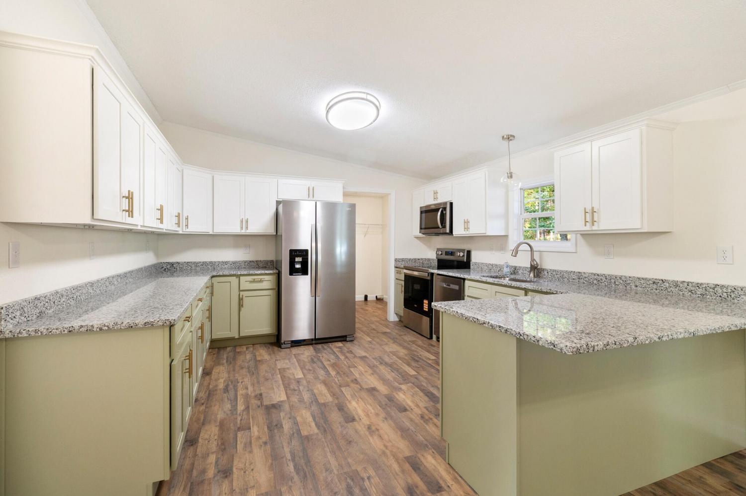 Welcome Home to this beautifully updated home on 2.49 acres. Like brand new from Floor to Ceiling. Completely new Kitchen with shaker cabinets, granite counters, tons of Prep Space, new appliances including refrigerator. 2 Large Living Spaces, Private Owners Suite with beautiful bath that features double vanity with granite counters and 2 person tiled walk in shower plus walk in closet. 4 additional bedrooms-one with private bath and a shared hall bath for others. This home sits on 2 lots for a total of 2.49 acres and includes a large out building plus a covered Carport. Enjoy sitting on the Beautiful covered front porch or the large covered rear deck with your morning coffee. Extra upgrades include New HVAC, new plumbing, new porches front & rear, all new vanities, new appliances, new flooring. The only thing missing is YOU! This lovely home is move in ready, make it yours today.