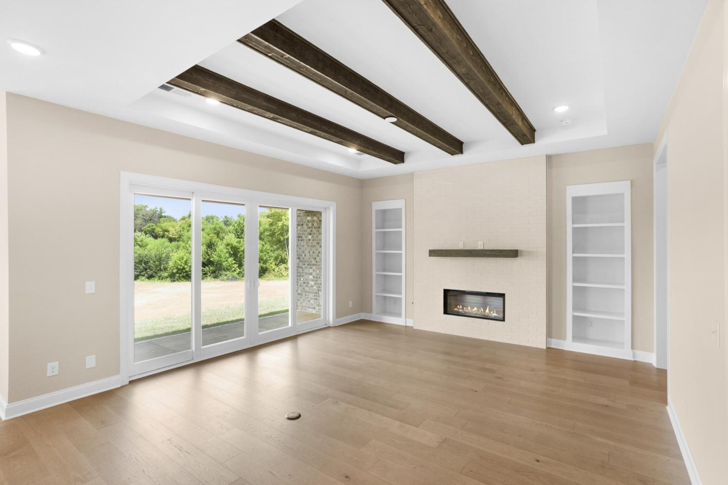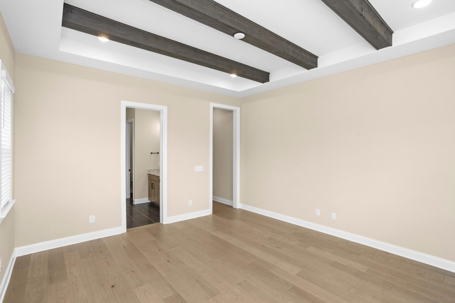HIGH-END LIVING: THE PARNELL PLAN AT AUGUST PARK (LOT 244) Welcome to the highly sought-after AUGUST PARK community. The Parnell floor plan is expertly designed with premium finishes that give it the feel of a TRUE CUSTOM HOME. This is a functional, elegant house built for modern, luxury living. Main Level Elegance and Utility The wide entry immediately introduces the home's quality, leading past a private STUDY and a large guest hall with a coat closet and half bath. The formal DINING ROOM is off a broad hall, set across from the dramatic DOUBLE-LANDING STAIRCASE. The main living area centers around the GOURMET KITCHEN, featuring MONOGRAM STAINLESS STEEL APPLIANCES, dazzling QUARTZ COUNTERTOPS, and custom SOFT-CLOSE CABINETS. Functionality is key, with both a BUTLER'S PANTRY and a separate kitchen WALK-IN PANTRY for seamless prep and storage. The kitchen flows into the open, inviting GREAT ROOM, which features a VAULTED AND BEAMED CEILING. The room is anchored by a fireplace and custom BUILT-IN BOOKCASES. Throughout the main floor, you'll appreciate the luxury details like extensive TRIM WORK and tall 8-FOOT DOORS. Private Primary Suite and Laundry Access The primary suite is a true retreat, positioned down a dedicated PRIVATE HALL for quiet seclusion. It also features a BEAMED CEILING and offers the convenience of EASY, DIRECT ACCESS TO THE LAUNDRY ROOM. The primary bath is a five-part ELEGANT, RESORT-STYLE SPACE leading to a SUPER LARGE WALK-IN CLOSET. Unmatched Privacy Upstairs The upstairs is uniquely structured for maximum privacy and flexibility, a feature that distinguishes this plan: TWO COMPLETELY SEPARATE BEDROOM AREAS. One wing offers TWO SPACIOUS BEDROOMS, each with a WALK-IN CLOSET, that share a full bath—perfect for children or a private family space. The second area is like a SECOND PRIMARY SUITE; a generous third bedroom with its own ON-SUITE BATH. This makes the upstairs ideal for guests, extended family, or older children needin