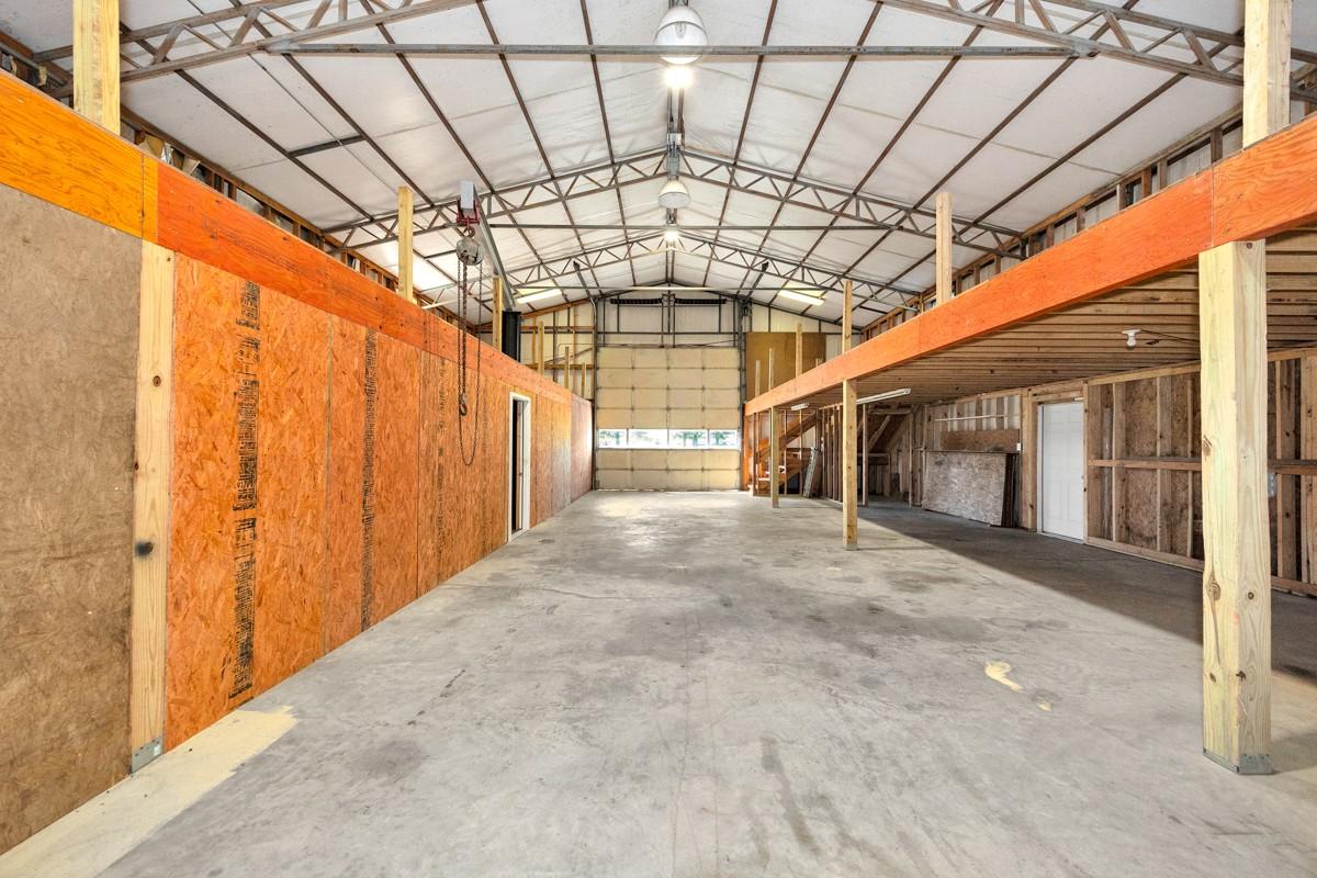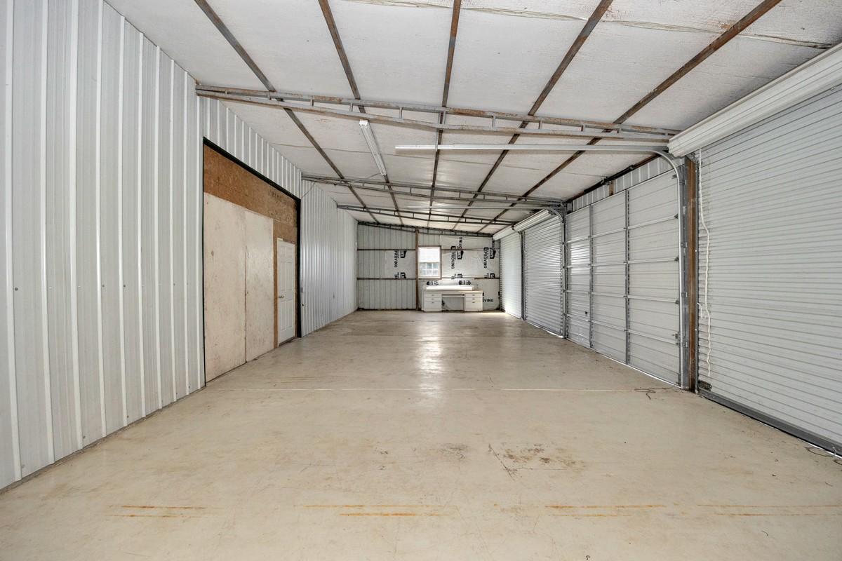 Barndominium influenced metal building on a great 6.79 acre tract with building site. The 1,086 sf living quarters are ready for you to live while you build your dream home! With one bedroom, one 3/4 bath, kitchen and large great room the living area. Main storage 3,714sf area has two 14x14 overhead doors, three car garage, enclosed lean-to garage with five overhead doors.
