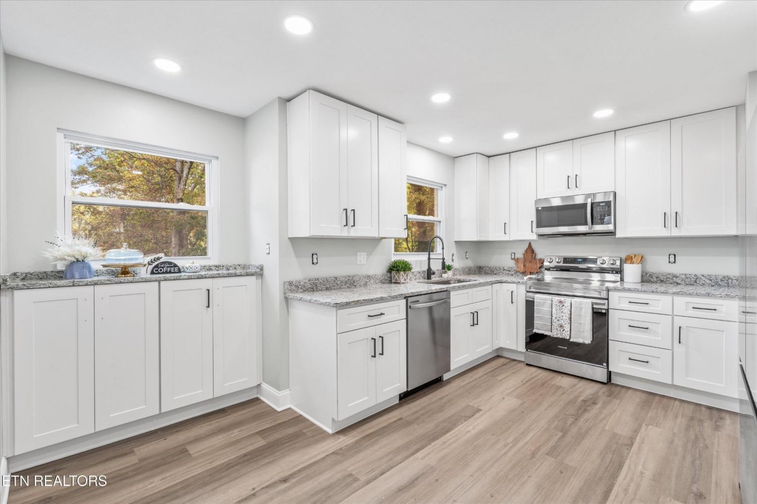 Sellers are offering a free Home Warranty! Fall in love with this fully renovated all-brick beauty! Everything you could want — and everything is brand new! This home was completely gutted and rebuilt with all-new plumbing, HVAC, water heater, breaker box, insulation, and drywall, and more! Step inside and you'll instantly feel the charm! High wooden ceilings, a gorgeous stone fireplace, and big bright windows fill the space with natural light. The kitchen is a showstopper — granite counters, brand-new cabinets, extended pantry, and your very own coffee bar for those cozy mornings. Both bathrooms have been completely updated with new tile, vanities, tubs, and a sleek glass shower door in the primary. You'll also love the new flooring, new porch doors (including a screened porch to be finished!), and modern lighting throughout. Outside, enjoy the freshly painted brick exterior, new front and garage doors, updated walkway, and brand new stylish stone accents. There's even a detached garage, 2 small workshops, fenced yard, & a 2 vehicle carport that provide plenty of parking. Everything here has been reimagined with care — the perfect blend of character, craftsmanship, and comfort. Move right in and start living your best life at 2212 Ridgecrest Drive! Buyer and or buyers agent to verify all information. Information deemed reliable but not guaranteed.