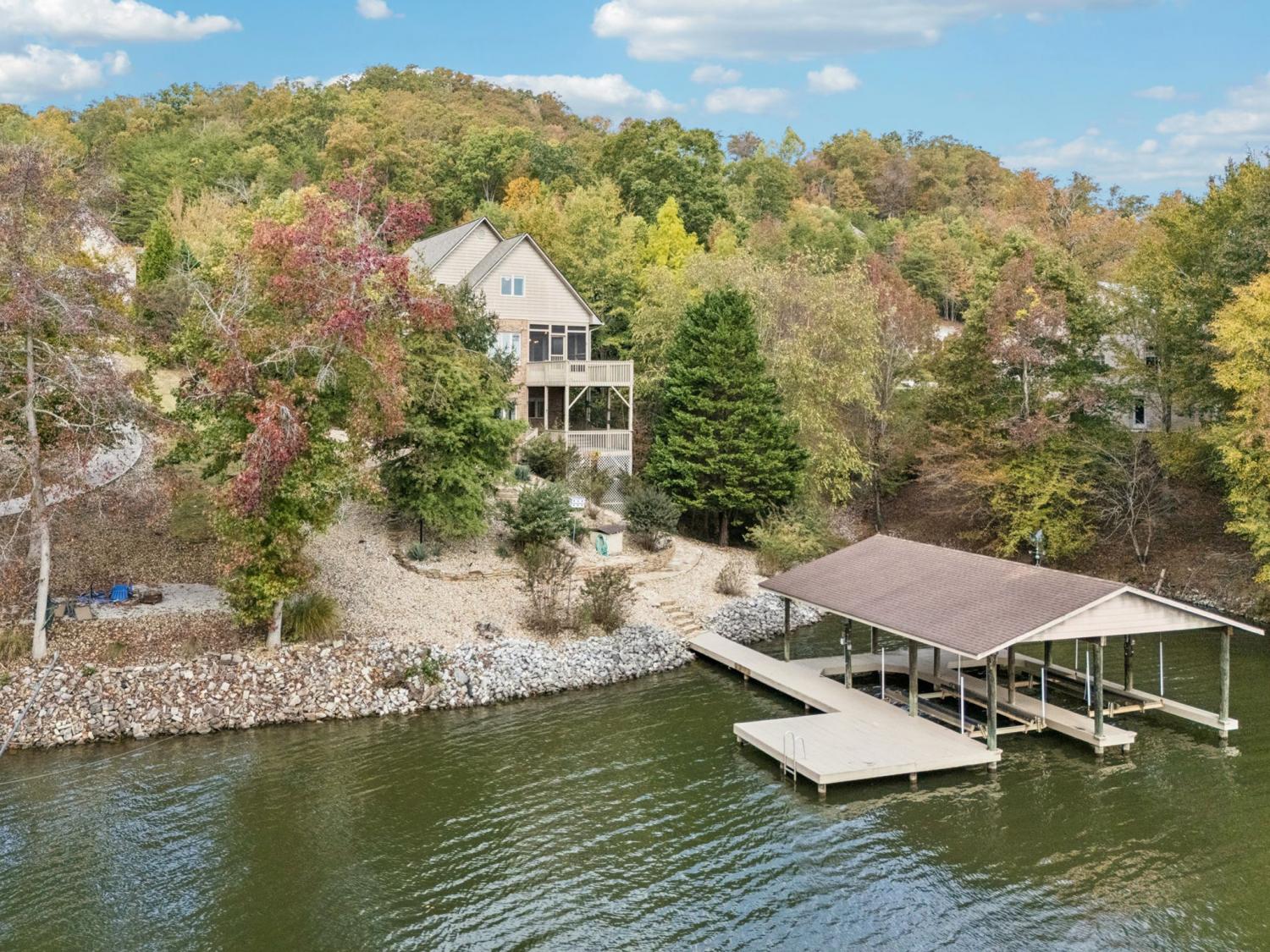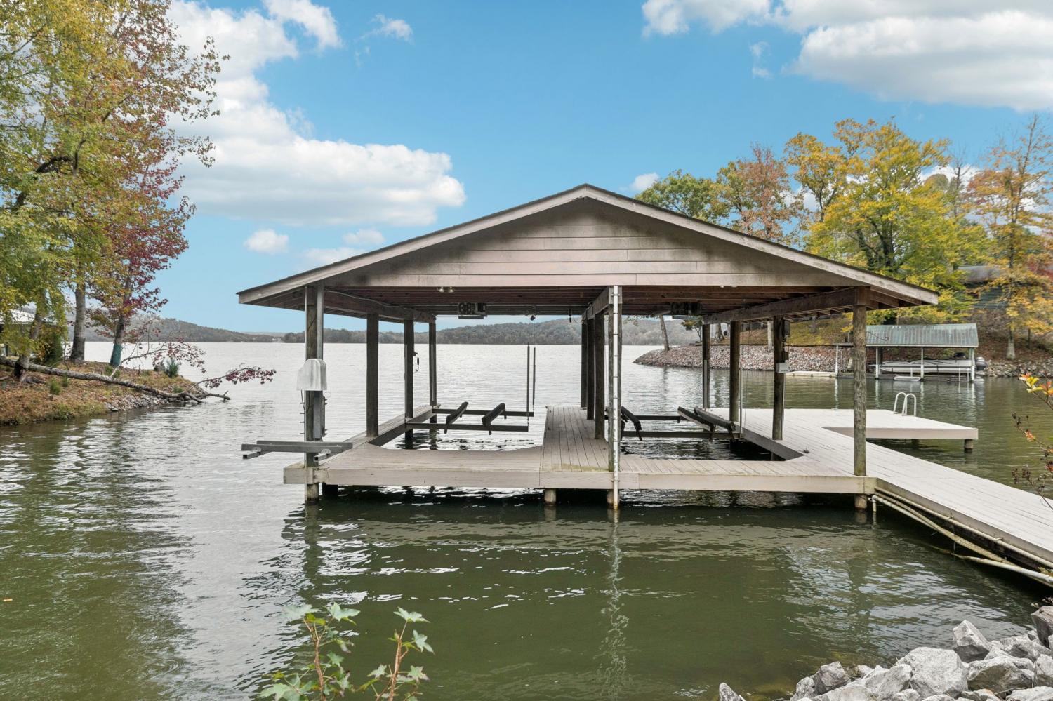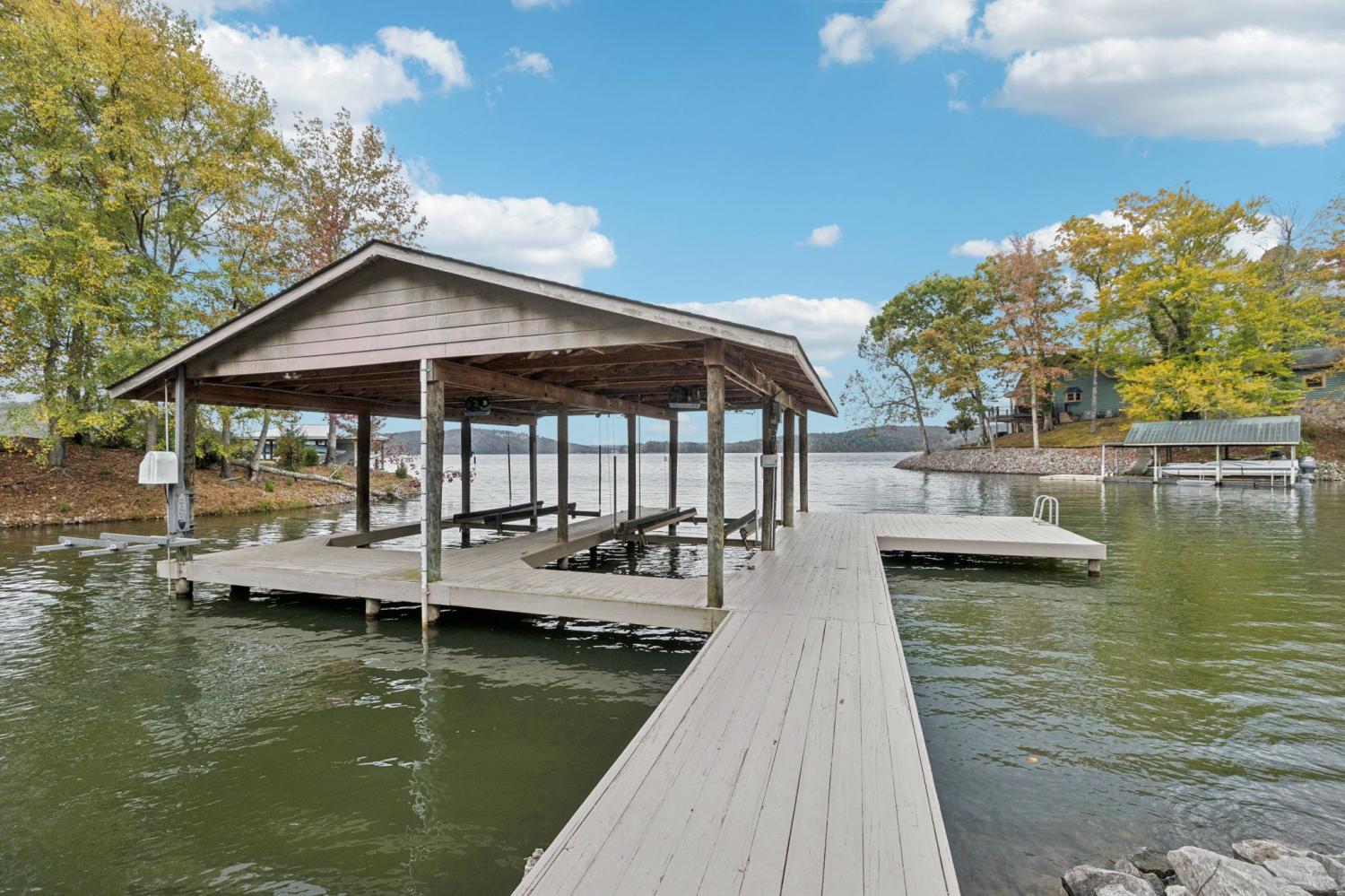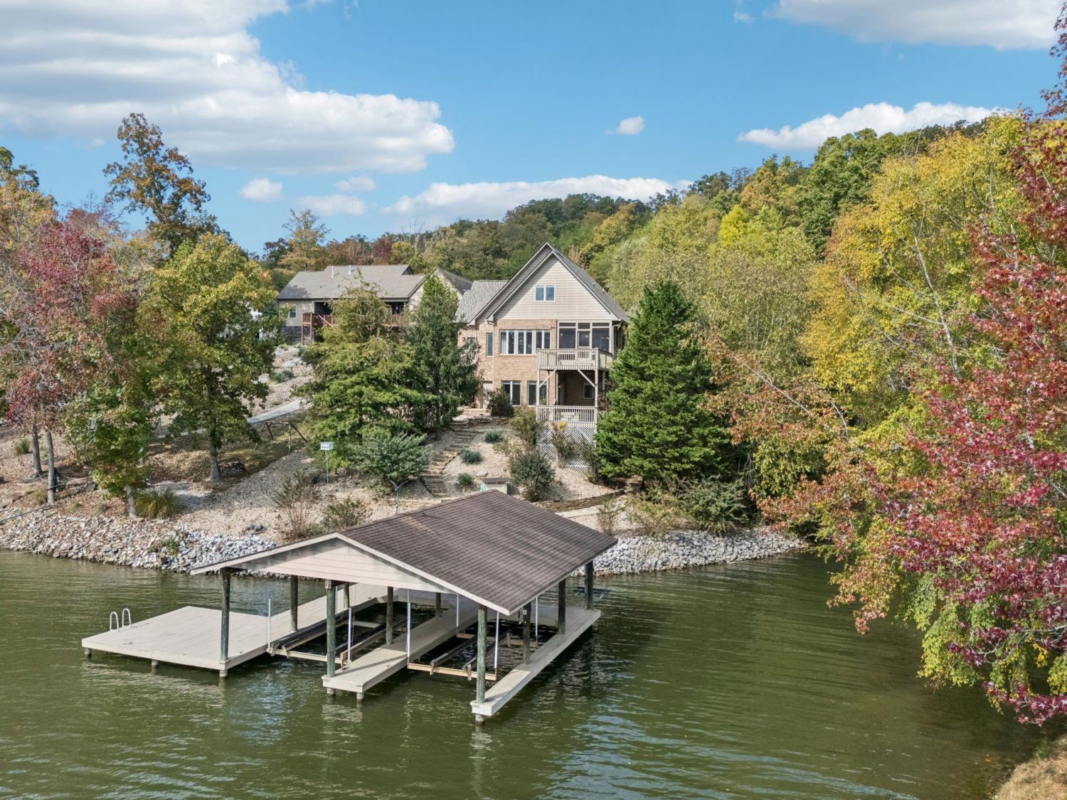 Enjoy the views from this extraordinary waterfront custom built brick home that is steps away from the gorgeous & expansive waters of beautiful Watts Bar Lake! Directly off the main channel, but tucked away in a quiet cove with calm waters, this property boasts multiple floors of living space, all with amazing views from it's waterfront windows & lounging decks and patios. Innovative rock landscaping leads you down to a covered double boat dock with 2 electric boat lifts and 1 jet ski lift. When you have finished your day of boating, fishing and recreation, enjoy relaxing with nightly sunsets and full moons reflecting off the lake. On rainy days, the nearby soothing waterfall adds ambiance to your nature's retreat. This impressive home features 4998 sq. ft of living space, hardwoods throughout, gas cooking range, 7 spacious bedrooms, walk-in closets, 4 ½ bathrooms, a 2 car garage, a basement workshop and a downstairs in-law suite with kitchenette and separate entrance. Main level of home is handicap accessible, with primary bedroom & bath, laundry room, private office with french doors & built-in cabinets/shelves, formal dining, and open concept kitchen / living room space with stone fireplace and floor to ceiling Pella windows overlooking the lake. Upstairs includes 4 bedrooms, 2 baths, with one room doubling as a flexible bonus room. Thoughtfulness to natural lighting was considered, skylights installed throughout. Brand new roof, gutters and gutter guards with warranty. High speed internet available from Starlink. HOA amenities include community pavilion and rentable docks. Would make a great full-time residence or a family weekend waterfront escape. Conveniently located only 18 min to Walmart, 40 min to Crossville, 1.5 hr to Knoxville. Tour this beauty today!