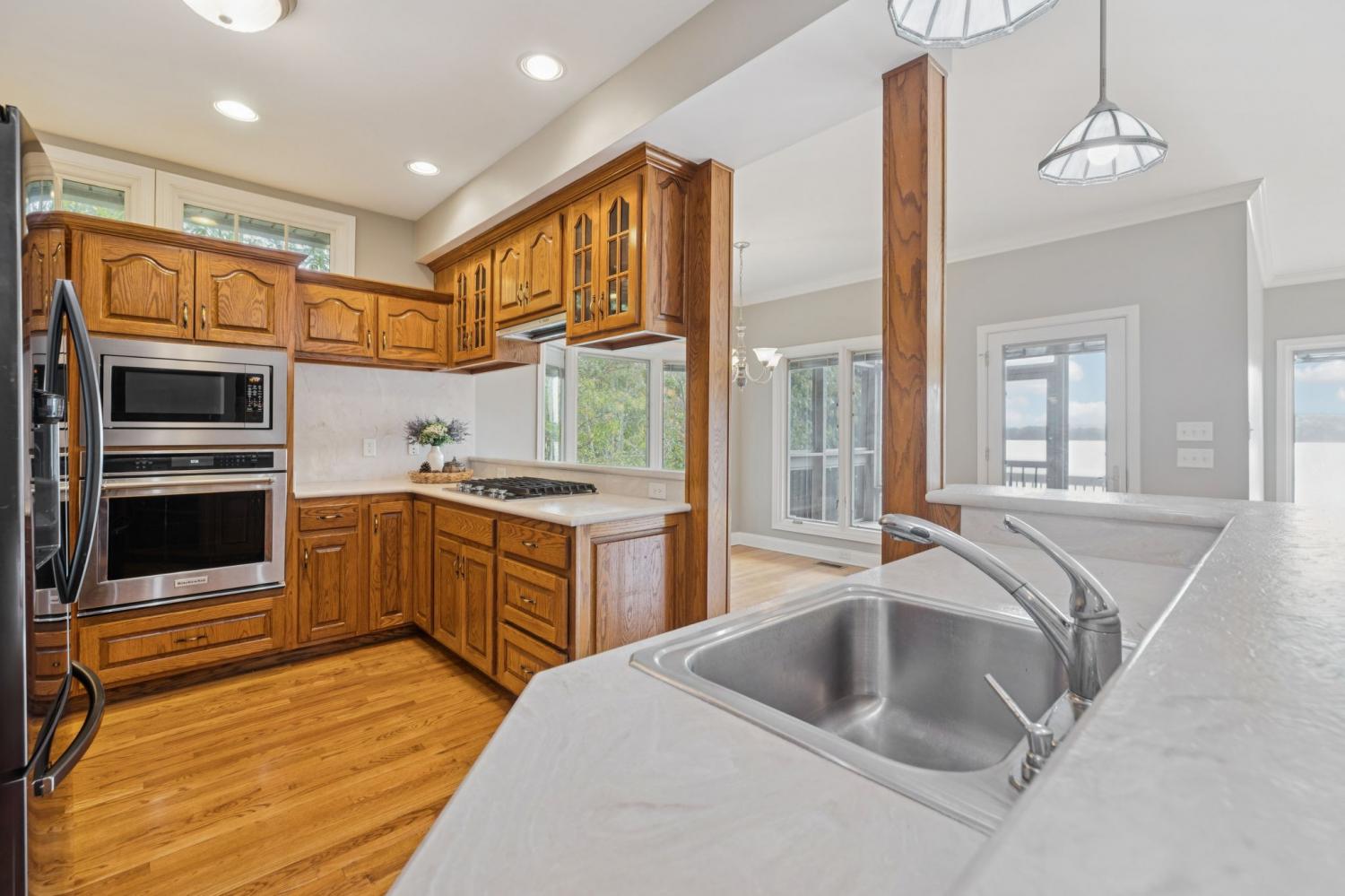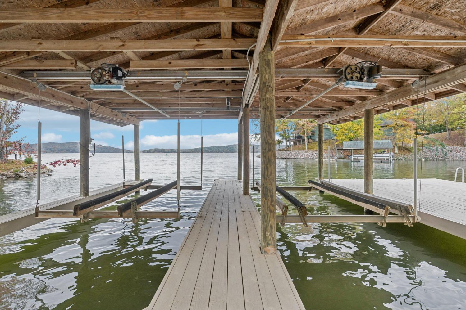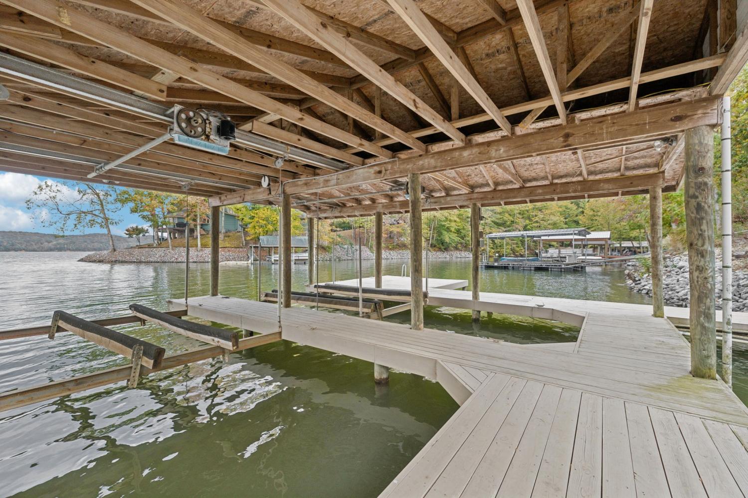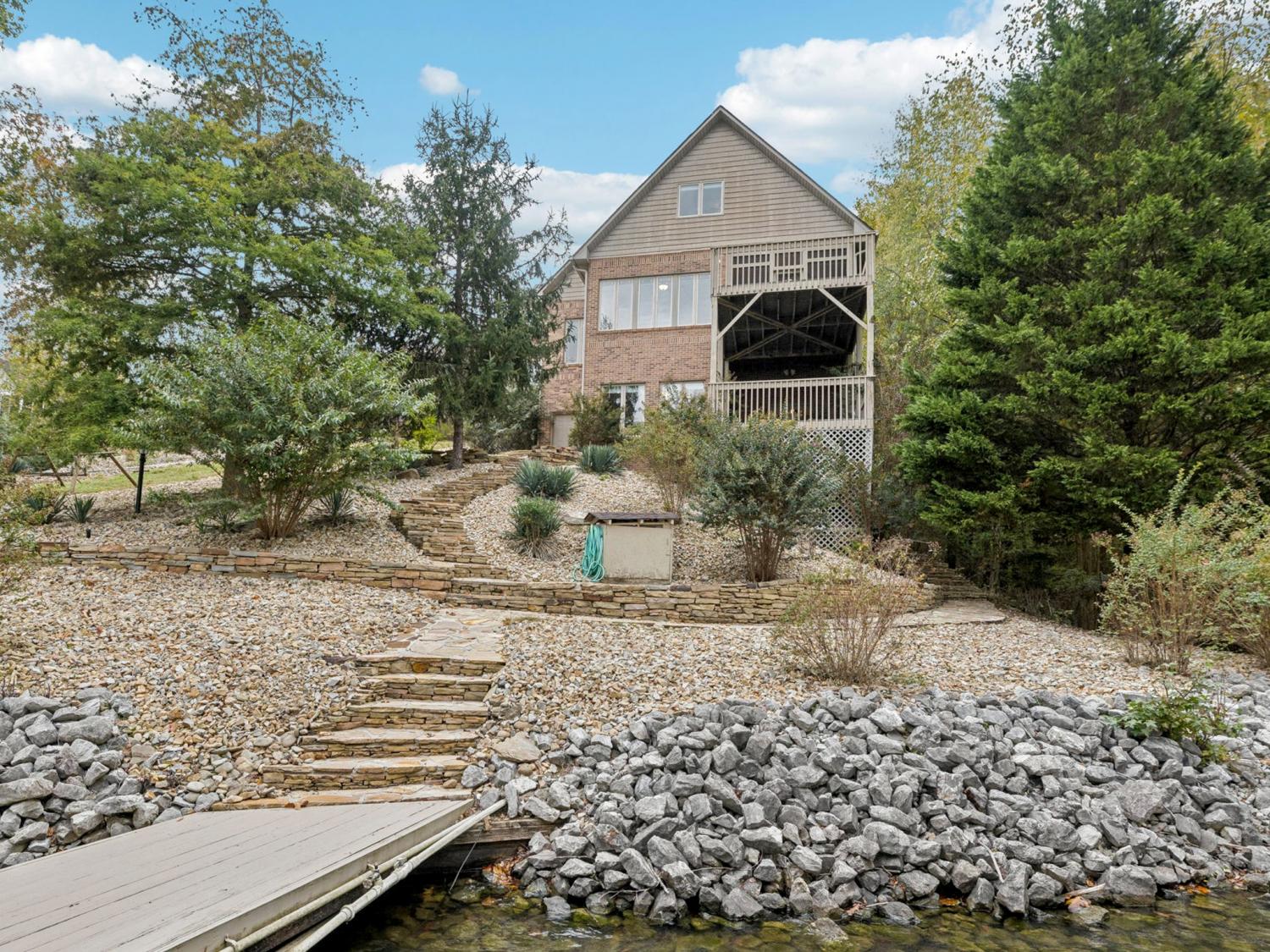 Enjoy the views from this extraordinary waterfront custom built brick home that is steps away from the gorgeous & expansive waters of beautiful Watts Bar Lake! Directly off the main channel, but tucked away in a quiet cove with calm waters, this property boasts multiple floors of living space, all with amazing views from it's waterfront windows & lounging decks and patios. Innovative rock landscaping leads you down to a covered double boat dock with 2 electric boat lifts and 1 jet ski lift. When you have finished your day of boating, fishing and recreation, enjoy relaxing with nightly sunsets and full moons reflecting off the lake. On rainy days, the nearby soothing waterfall adds ambiance to your nature's retreat. This impressive home features 4998 sq. ft of living space, hardwoods throughout, gas cooking range, 7 spacious bedrooms, walk-in closets, 4 ½ bathrooms, a 2 car garage, a basement workshop and a downstairs in-law suite with kitchenette and separate entrance. Main level of home is handicap accessible, with primary bedroom & bath, laundry room, private office with french doors & built-in cabinets/shelves, formal dining, and open concept kitchen / living room space with stone fireplace and floor to ceiling Pella windows overlooking the lake. Upstairs includes 4 bedrooms, 2 baths, with one room doubling as a flexible bonus room. Thoughtfulness to natural lighting was considered, skylights installed throughout. Brand new roof, gutters and gutter guards with warranty. High speed internet available from Starlink. HOA amenities include community pavilion and rentable docks. Would make a great full-time residence or a family weekend waterfront escape. Conveniently located only 18 min to Walmart, 40 min to Crossville, 1.5 hr to Knoxville. Tour this beauty today!