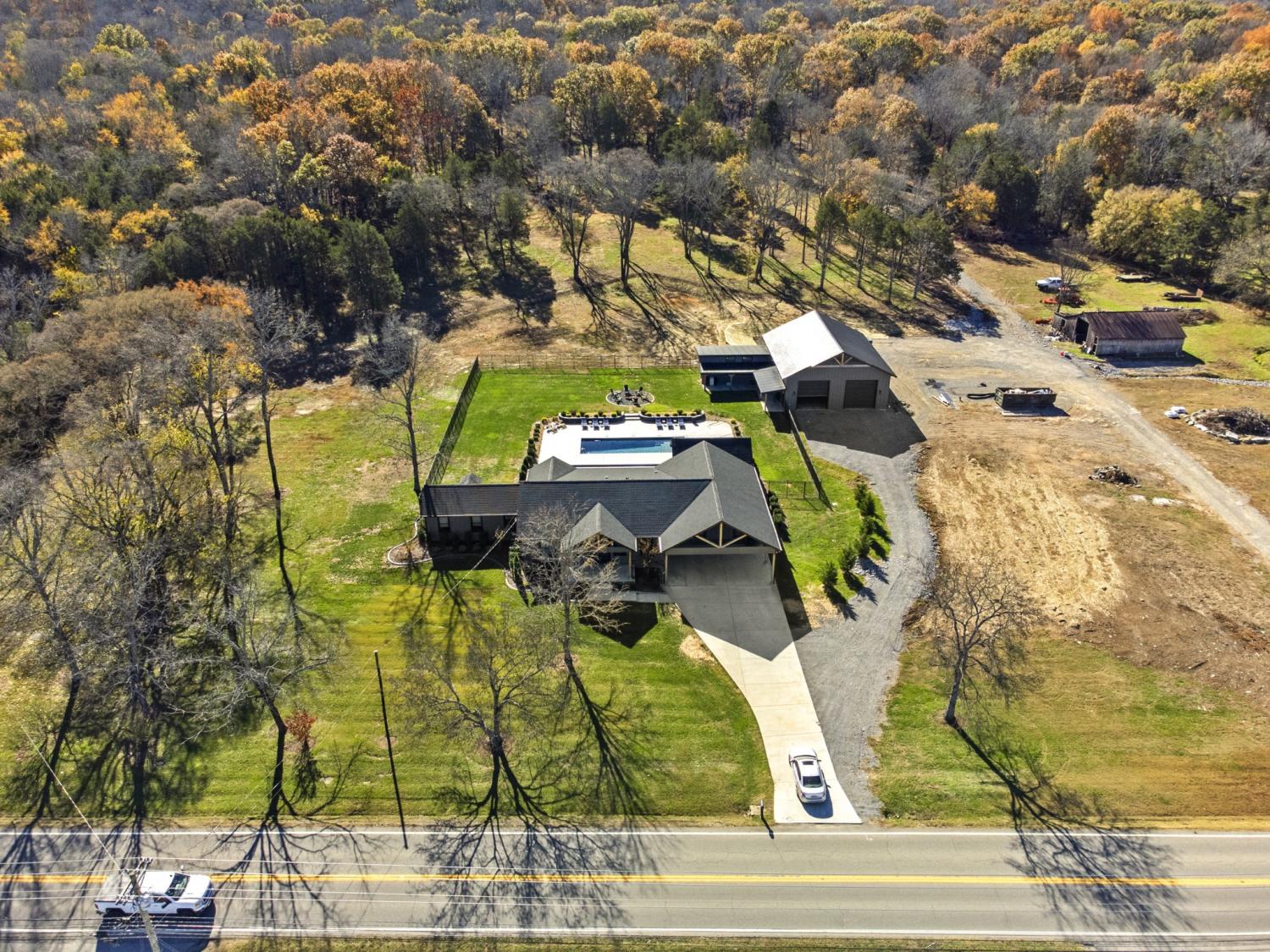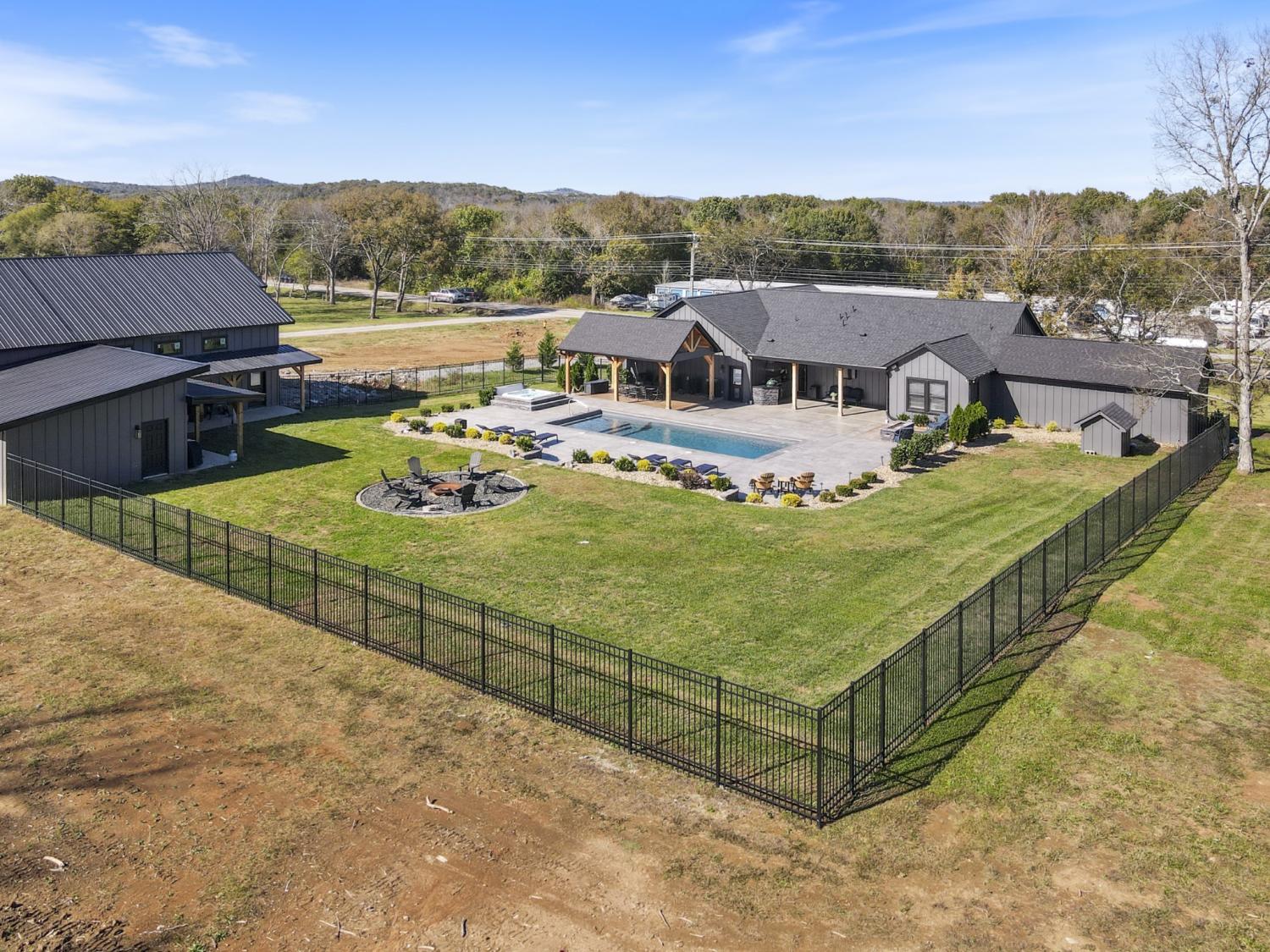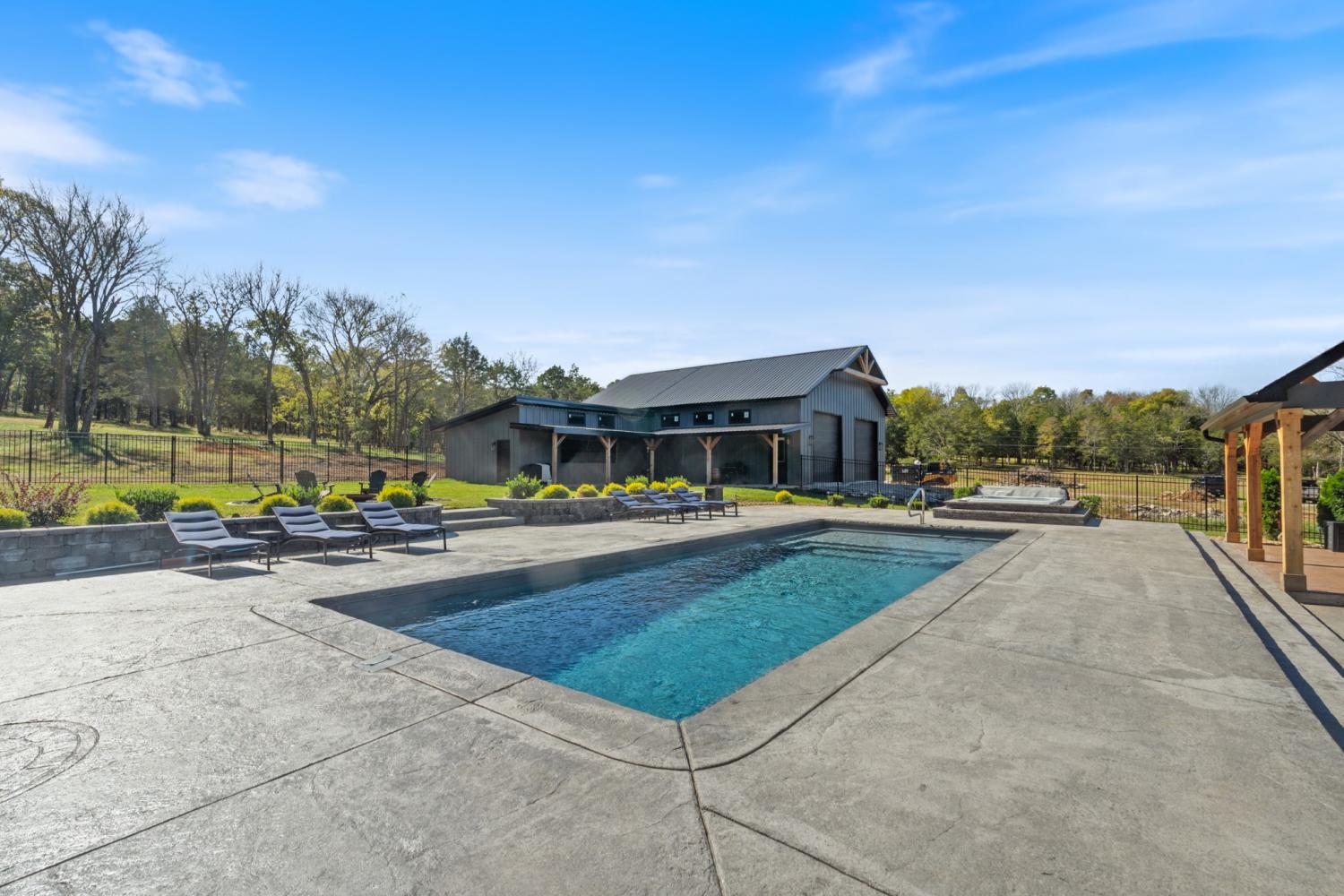 Experience modern country living at its finest in this custom-built 2023 barndominium on 10 pristine acres bordering the Rutherford/Williamson County line. Perfectly positioned with quick access to I-840, this property offers effortless connection to Nashville, Franklin, and Murfreesboro—while providing the privacy, space, and serenity of country life. Designed for entertaining and everyday comfort, this 3-bedroom (or 2 + study), 2-bath home spans 2,892 sq. ft. and showcases vaulted ceilings, rich finishes, and an inviting open layout. The chef’s kitchen features stainless steel Kitchen Aid Pro Series appliances, an oversized island, quartz counters, and custom cabinetry. The primary suite feels like a private retreat with a spa-inspired bath, dual vanities, walk-in shower and huge 16x19 walk in closet. The 30x30 bonus room provides versatile flex space for a home gym, studio, or media room with additional unfinished space above. Outdoor oasis includes an expansive 42x15 heated saltwater pool, stamped concrete decking, outdoor kitchen with Green Egg smoker & commercial grill. Covered pavilion with wood ceiling detail for outdoor dining, a fire pit area overlooking the fenced backyard are perfect for gatherings under the stars. Outdoorsmen & car enthusiasts will love the 2,600 sq. ft. heated & cooled detached barn, featuring custom finishes, storage, & room for multiple vehicles. The barn kitchen features stone backdrop with up lighting, 14' of soft close Hickory cabinets & 4' roll up garage door opening over bar for outdoor parties. Built by Willow Grove Construction, every element of this property has been thoughtfully designed for lifestyle, functionality, & recreation. For those dreaming bigger, the adjacent 162-acre parcel is also available, offering an unmatched opportunity to create a multi-home family compound or private estate with total seclusion & timeless Tennessee beauty. Luxury, lifestyle, and location—this Murfreesboro retreat truly has it all.