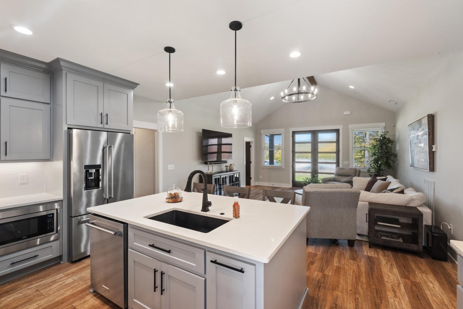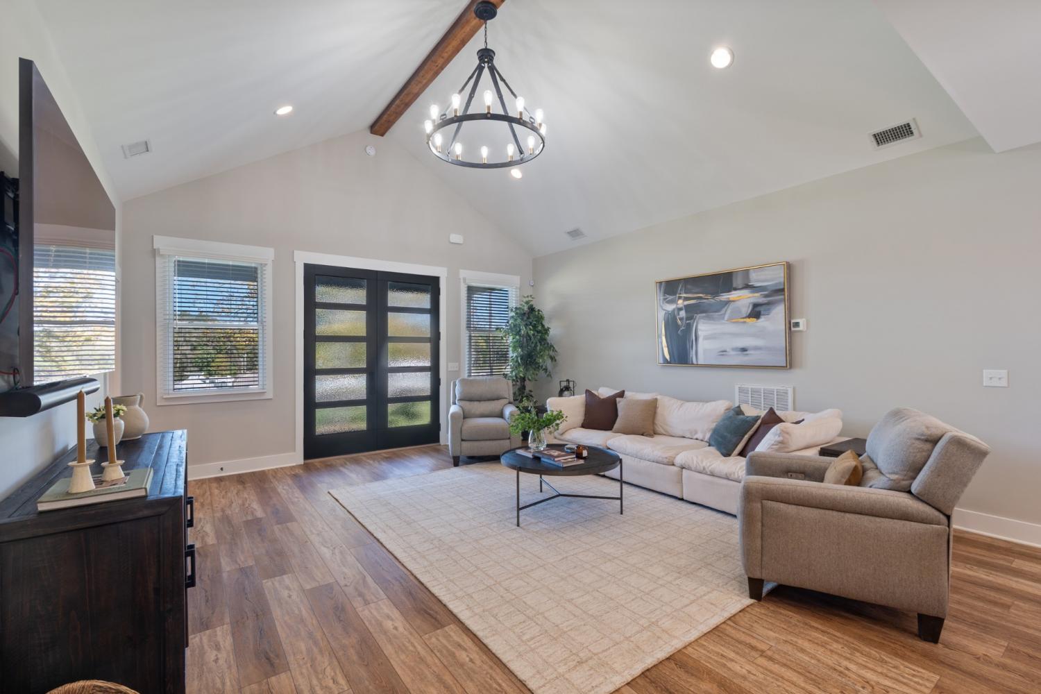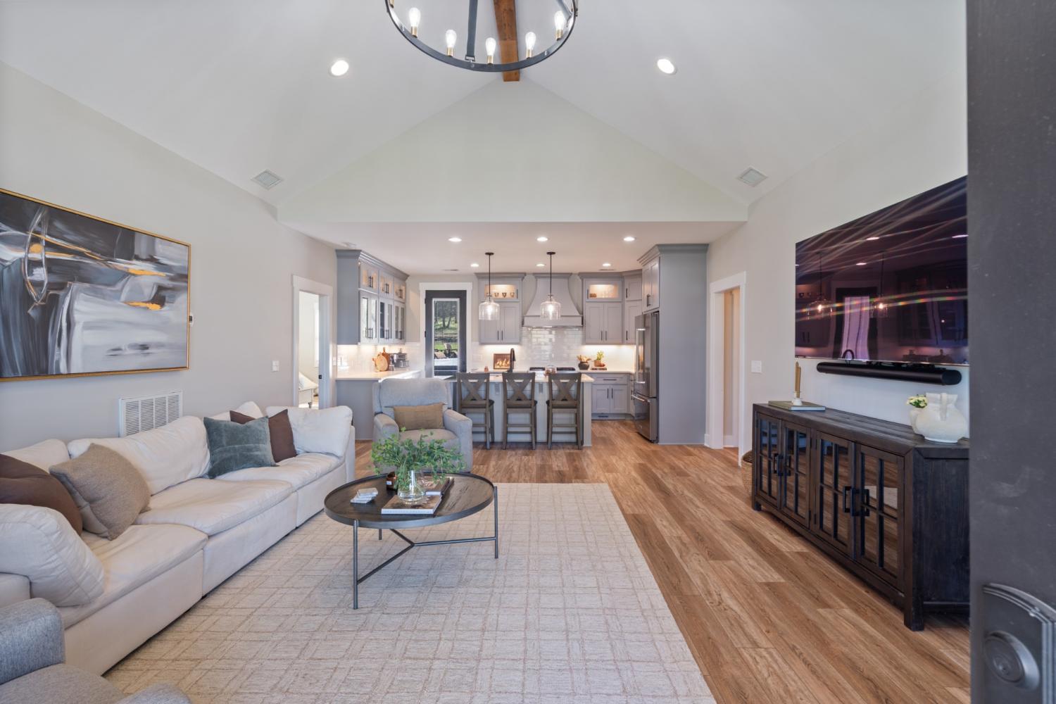 Experience modern country living at its finest in this custom-built 2023 barndominium on 10 pristine acres bordering the Rutherford/Williamson County line. Perfectly positioned with quick access to I-840, this property offers effortless connection to Nashville, Franklin, and Murfreesboro—while providing the privacy, space, and serenity of country life. Designed for entertaining and everyday comfort, this 3-bedroom (or 2 + study), 2-bath home spans 2,892 sq. ft. and showcases vaulted ceilings, rich finishes, and an inviting open layout. The chef’s kitchen features stainless steel Kitchen Aid Pro Series appliances, an oversized island, quartz counters, and custom cabinetry. The primary suite feels like a private retreat with a spa-inspired bath, dual vanities, walk-in shower and huge 16x19 walk in closet. The 30x30 bonus room provides versatile flex space for a home gym, studio, or media room with additional unfinished space above. Outdoor oasis includes an expansive 42x15 heated saltwater pool, stamped concrete decking, outdoor kitchen with Green Egg smoker & commercial grill. Covered pavilion with wood ceiling detail for outdoor dining, a fire pit area overlooking the fenced backyard are perfect for gatherings under the stars. Outdoorsmen & car enthusiasts will love the 2,600 sq. ft. heated & cooled detached barn, featuring custom finishes, storage, & room for multiple vehicles. The barn kitchen features stone backdrop with up lighting, 14' of soft close Hickory cabinets & 4' roll up garage door opening over bar for outdoor parties. Built by Willow Grove Construction, every element of this property has been thoughtfully designed for lifestyle, functionality, & recreation. For those dreaming bigger, the adjacent 162-acre parcel is also available, offering an unmatched opportunity to create a multi-home family compound or private estate with total seclusion & timeless Tennessee beauty. Luxury, lifestyle, and location—this Murfreesboro retreat truly has it all.
