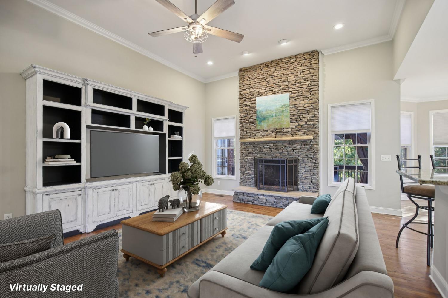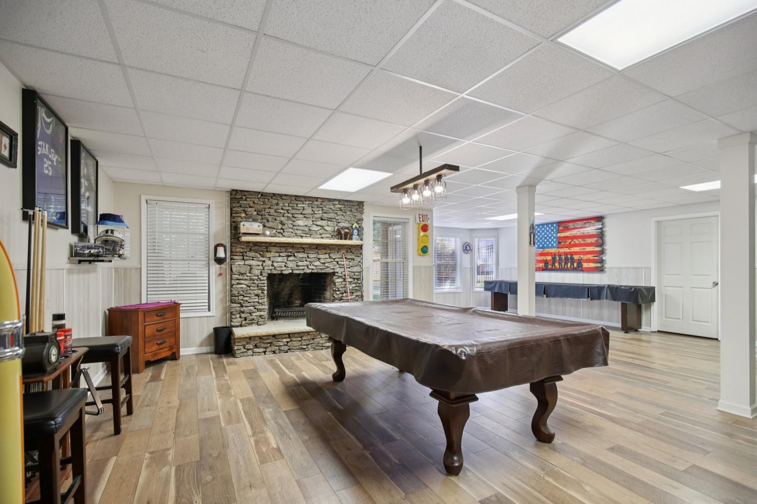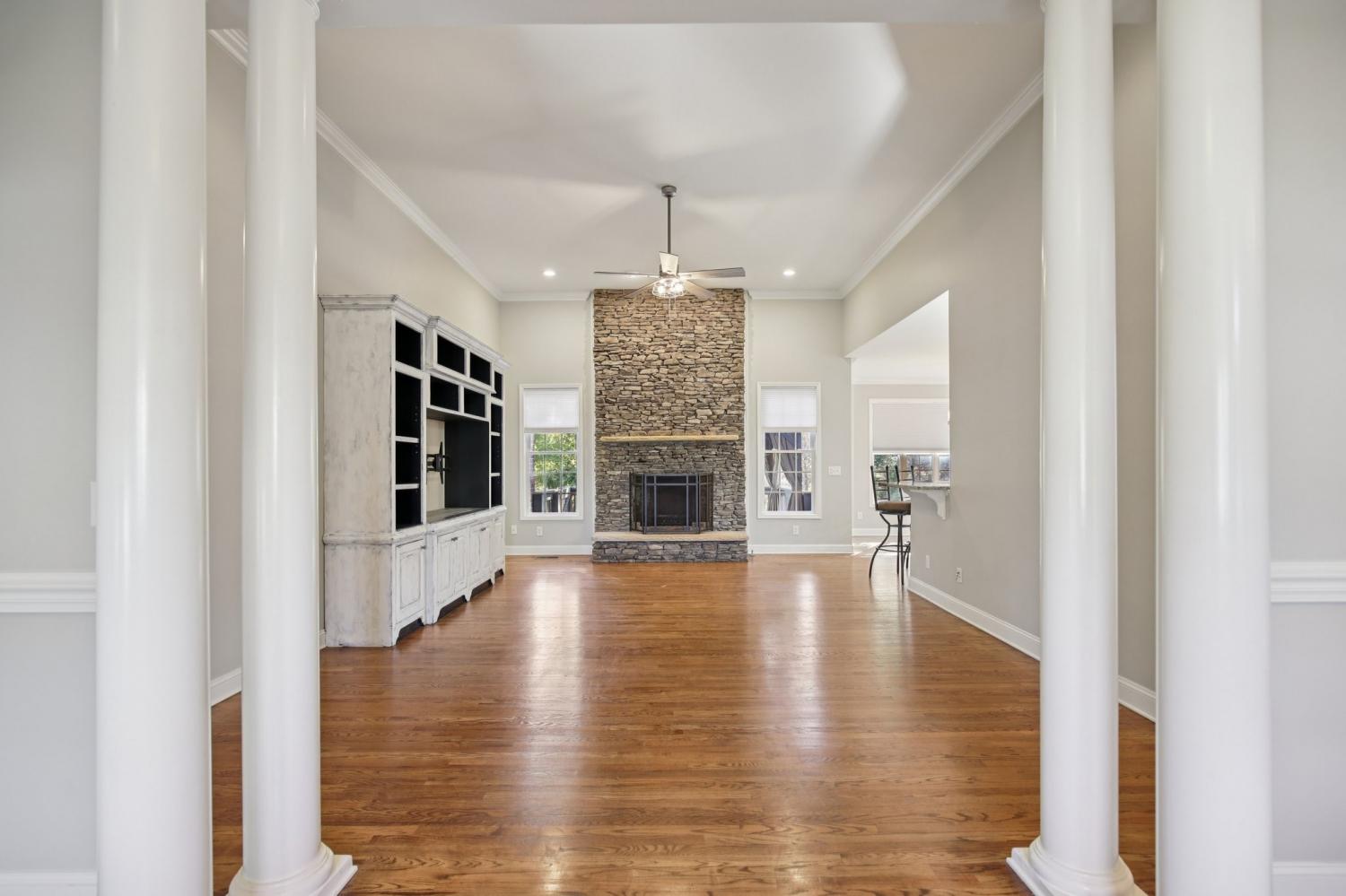 Stately Elegance Meets Family Comfort in Castleberry Farm Welcome to this exceptional residence offering over 6,500 square feet of total space, with 4,300+ finished square feet of thoughtfully designed living area in the highly sought-after Castleberry Farm community. A rare blend of craftsmanship, comfort, and functionality, this home is ideal for families who value space, quality, and timeless beauty. Step inside to an open, light-filled layout adorned with rich hardwood floors, granite countertops, and two stunning masonry fireplaces that exude warmth and sophistication. The bright, gourmet kitchen features stainless steel appliances, double ovens, and ample prep space—perfect for hosting gatherings or preparing family meals. The expansive living room with its soaring ceilings and gas fireplace serves as the heart of the home, effortlessly connecting to the dining area and kitchen for seamless entertaining. The main-level primary suite is a serene retreat, complete with a walk-in closet and luxurious en-suite bath. Upstairs, you’ll find spacious secondary bedrooms and a versatile bonus room ideal for a playroom, home office, or media lounge. The home’s massive 2,000 sq. ft. basement offers endless potential. Approximately 859 sq. ft. of finished space provides the ultimate recreation area, perfect for a pool table, gaming, or movie nights, while the remaining unfinished areas provide ample storage and a secure storm shelter. Outdoors, enjoy a fully fenced backyard with a covered patio—the perfect setting for barbecues, family gatherings, or simply unwinding in privacy. A newly installed carport, two separate driveways, and multiple garage entries ensure plenty of parking and convenience. Adding even more appeal, this is one of the few homes in the neighborhood with no HOA—giving you freedom and flexibility rarely found in such an established community. Located just minutes from local schools, parks, and Highway 100, this home offers the best of Fairview living.