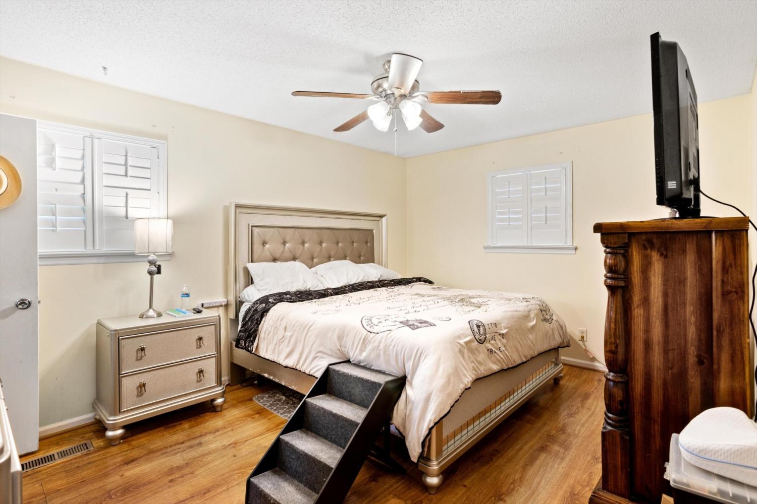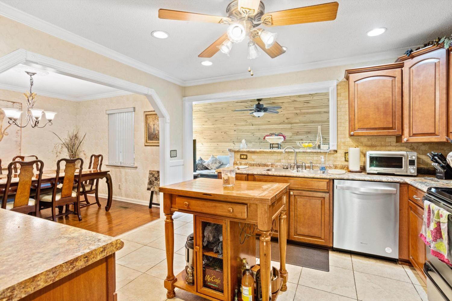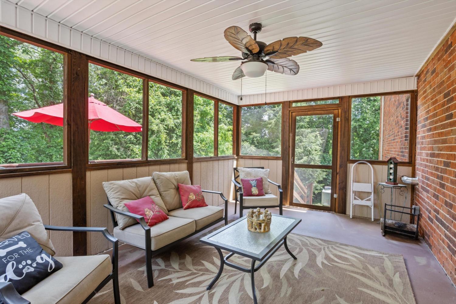 This charming all-brick home offers plenty of room for everyone with thoughtful updates throughout. The architectural shingle roof (approx. 10 years old) and updated vinyl windows provide peace of mind, while the beautiful hardwood floors add warmth and character. Enjoy an extra-large living room perfect for gatherings, a formal dining room with built-in cabinetry for added storage and display plus a spacious den downstairs—over 500 sq. ft.—complete with a bar area, ideal for entertaining or relaxing. The updated guest bath features a double vanity and a stylish tile surround shower, while the third full bath downstairs makes a great setup for an in-law or teen suite. The kitchen shines with updated cabinets, countertops, and stainless steel appliances, opening into a cozy sunroom with a wood tongue-and-groove ceiling. Step outside to a screened porch that overlooks a sundeck and private backyard, creating multiple spaces to enjoy the outdoors. Located just minutes from shopping, hospitals, and I-75, this home combines comfort, convenience, and timeless style!