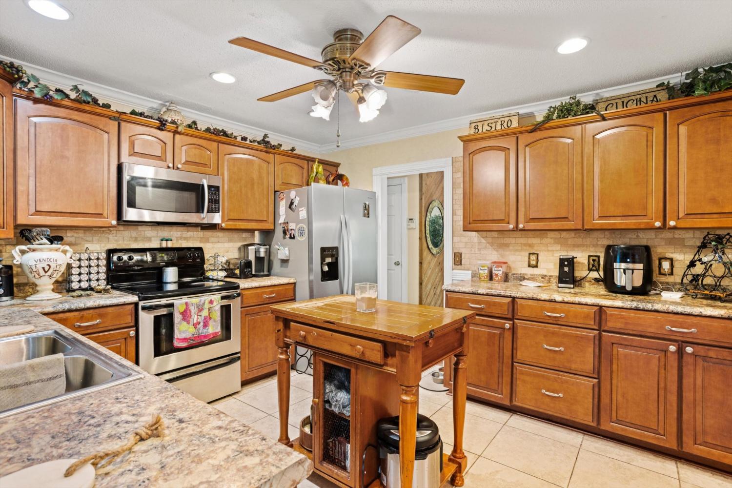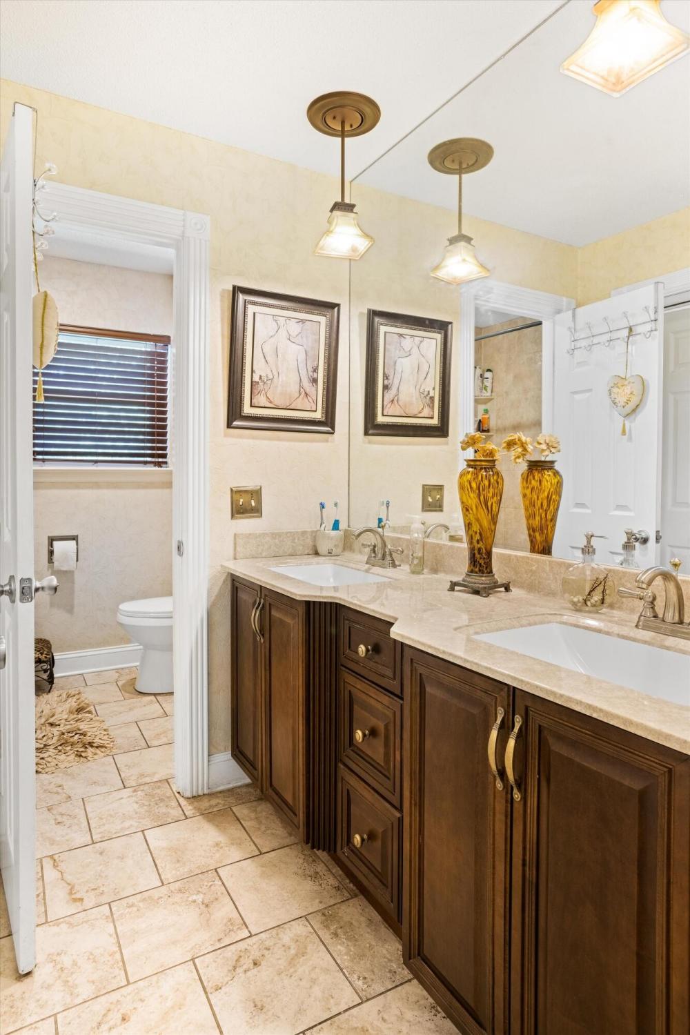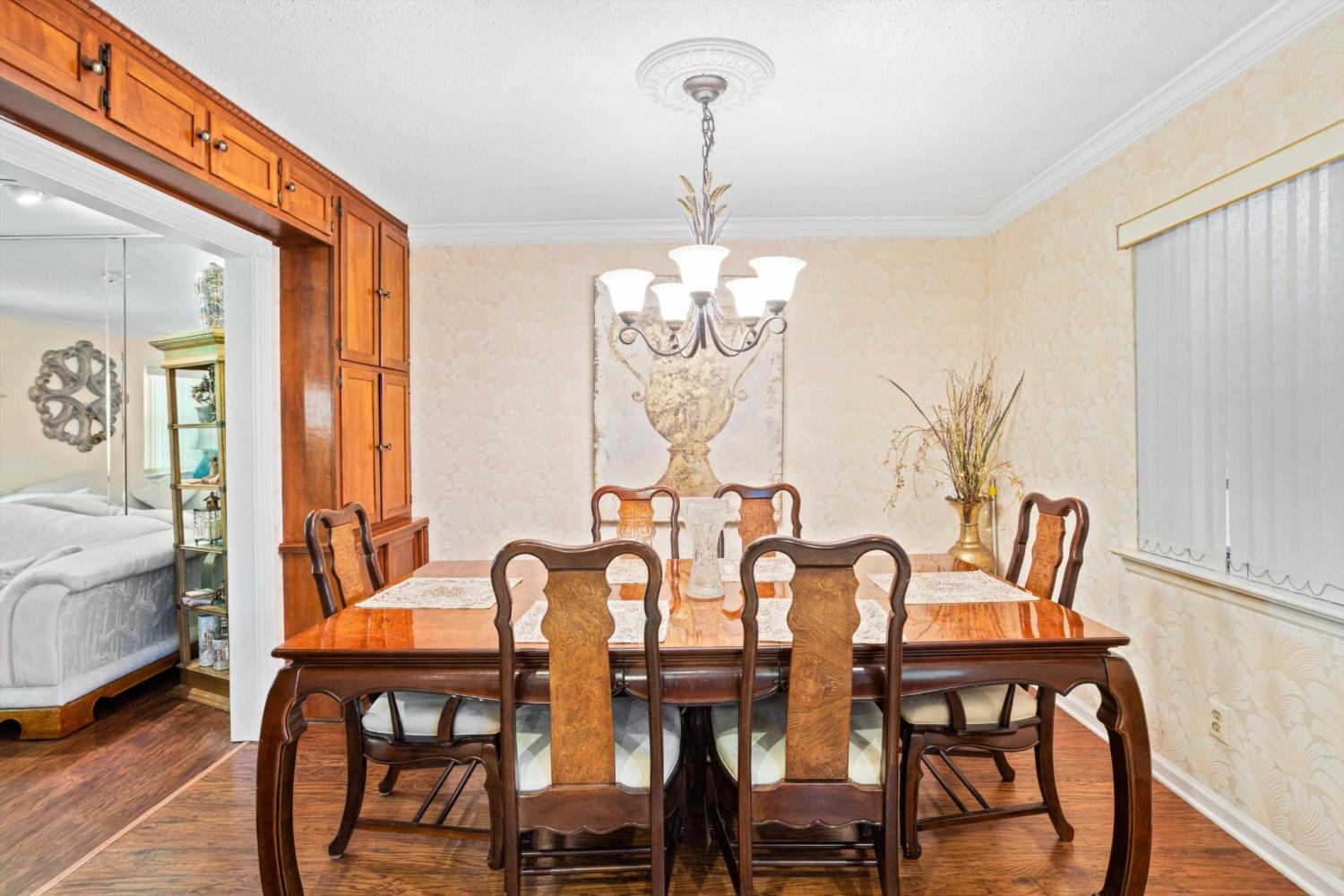 This charming all-brick home offers plenty of room for everyone with thoughtful updates throughout. The architectural shingle roof (approx. 10 years old) and updated vinyl windows provide peace of mind, while the beautiful hardwood floors add warmth and character. Enjoy an extra-large living room perfect for gatherings, a formal dining room with built-in cabinetry for added storage and display plus a spacious den downstairs—over 500 sq. ft.—complete with a bar area, ideal for entertaining or relaxing. The updated guest bath features a double vanity and a stylish tile surround shower, while the third full bath downstairs makes a great setup for an in-law or teen suite. The kitchen shines with updated cabinets, countertops, and stainless steel appliances, opening into a cozy sunroom with a wood tongue-and-groove ceiling. Step outside to a screened porch that overlooks a sundeck and private backyard, creating multiple spaces to enjoy the outdoors. Located just minutes from shopping, hospitals, and I-75, this home combines comfort, convenience, and timeless style!