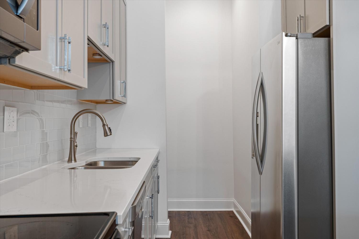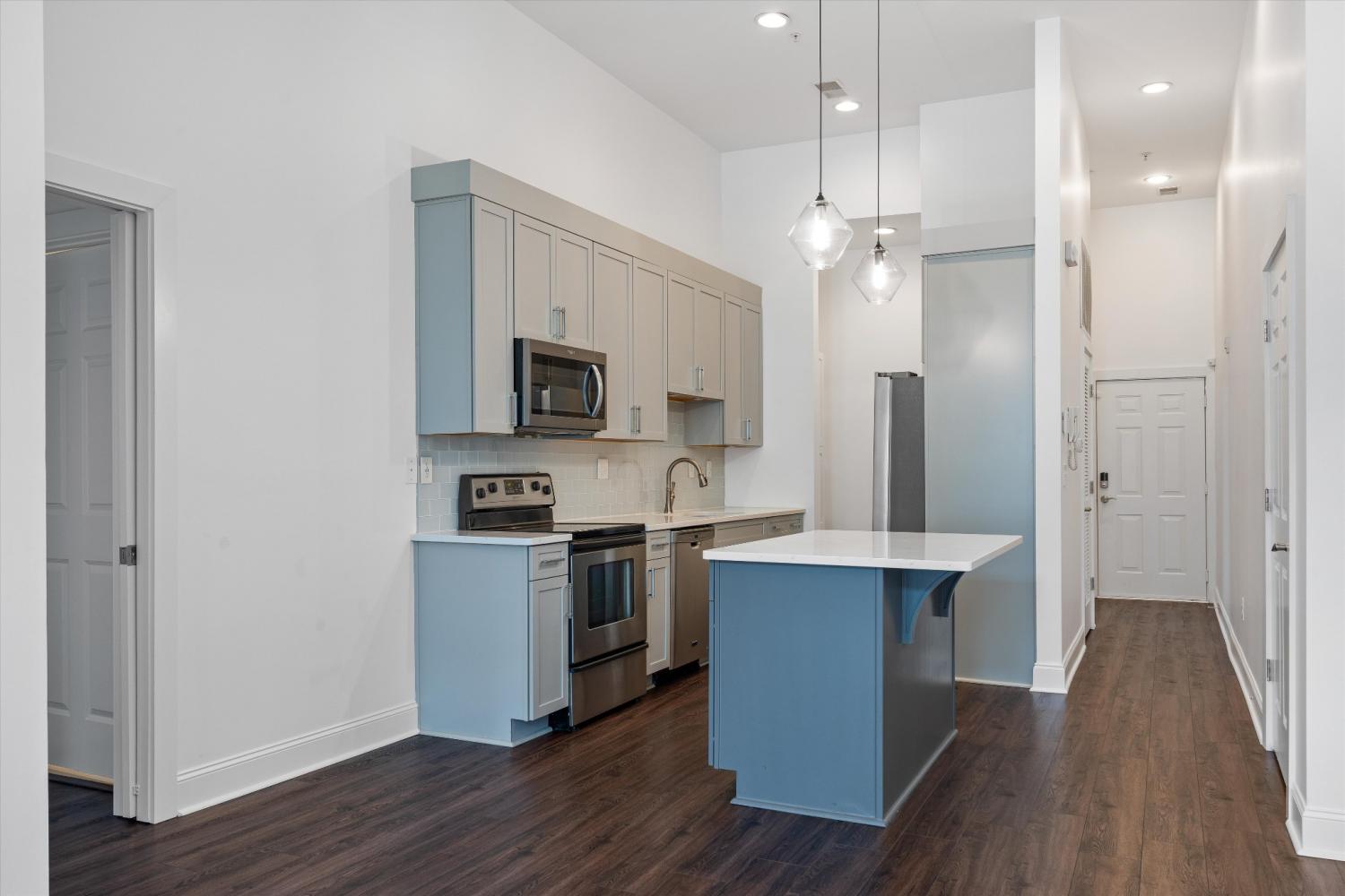 Welcome to this beautifully updated, move-in ready first-floor condo featuring 2 bedrooms and 2 full baths. Step inside to find an open layout with high ceilings and laminate wood flooring throughout, creating a warm and modern feel. The stylish kitchen offers contemporary finishes, sleek cabinetry, and ample counter space, it's perfect for both everyday living and entertaining. Both bathrooms have been thoughtfully updated with modern touches to complement the home’s clean design. Enjoy the convenience of being minutes from Downtown Nashville, Geodis Park, 12 South, Belmont University, and Vanderbilt University, with easy access to I-65 for quick commuting. This gated community offers peace of mind with secure, guaranteed parking located behind the building. Perfect for those seeking a low-maintenance lifestyle near all that Nashville has to offer, this move-in ready condo combines comfort, modern style, and unbeatable location.
