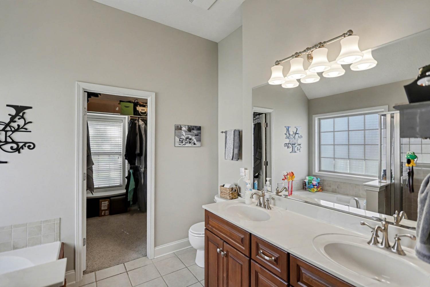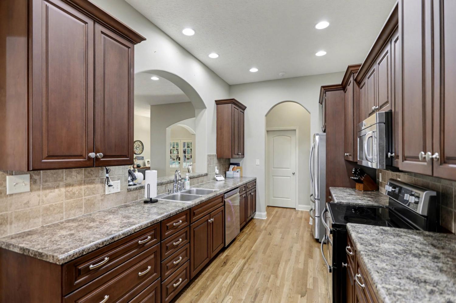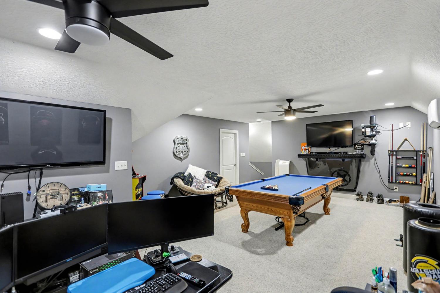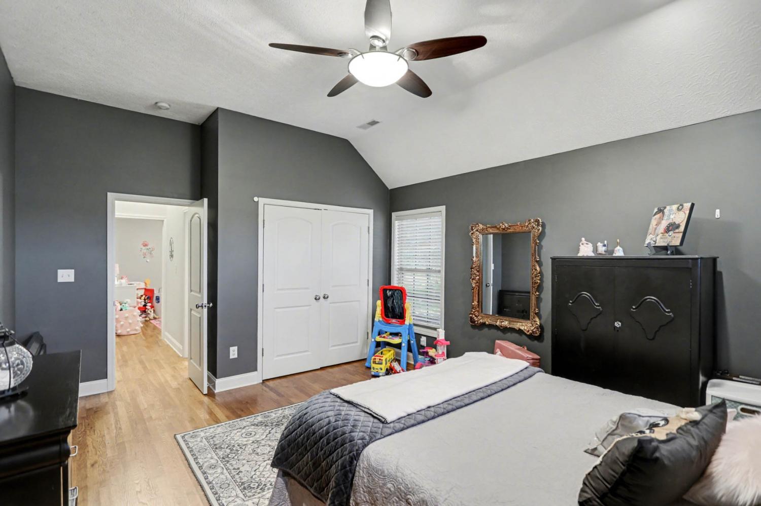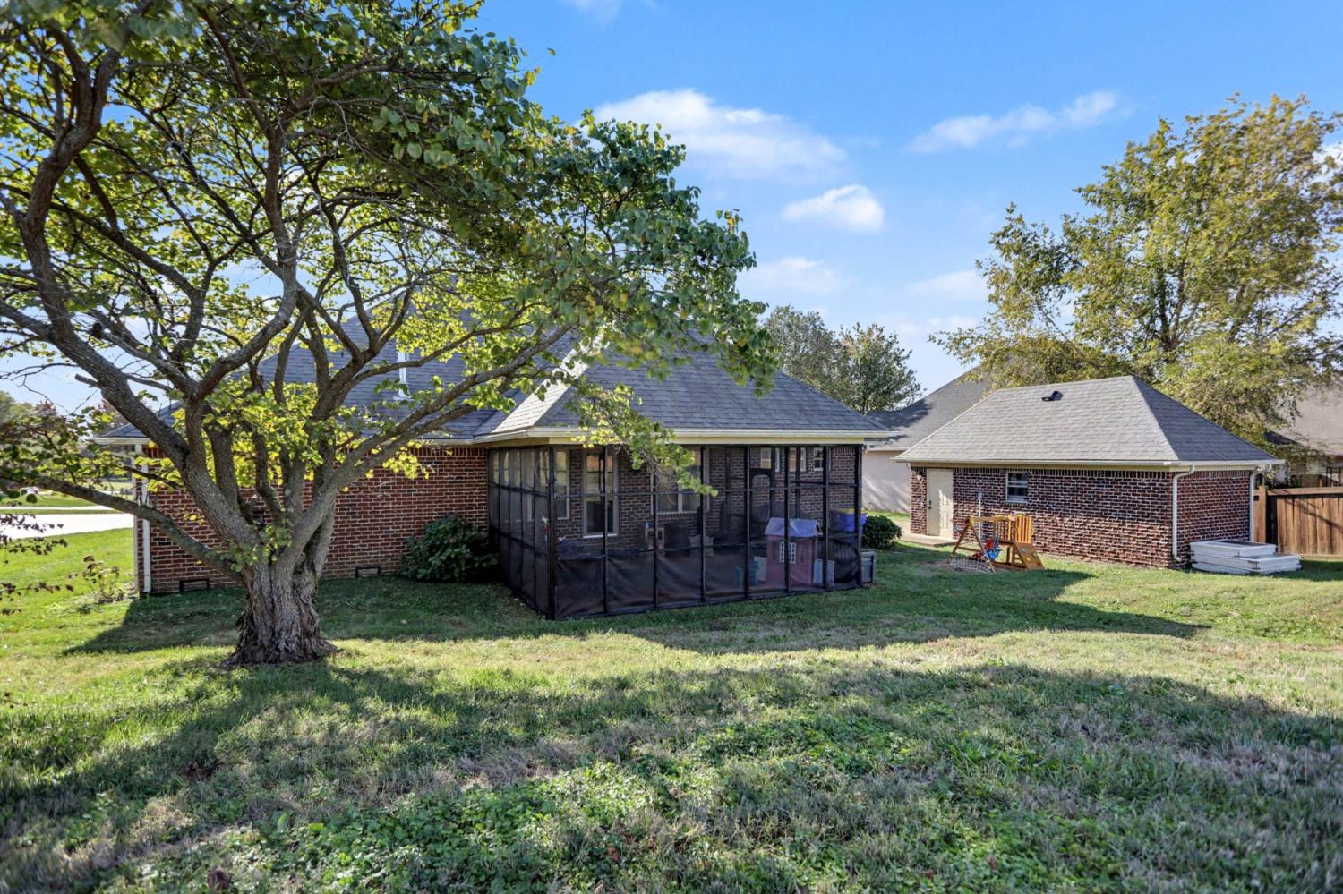 NEW or NEARLY-NEW everything. Within the last 5 years, the sellers have replaced the roof on both the house and garage; the main level central heat and air; they added a second heat & air unit for the upstairs; plus, the house is turnkey with a new dishwasher, stove, garbage disposal, refrigerator, washer & dryer, and ceiling fans. Perched on a pleasant lot overlooking a peaceful loop, this beautiful, all-brick home features voluminous spaces, sparkling hardwoods, and newer big-ticket components. Substantial double doors off of the covered front porch are stylish and hint at the style and ambiance of this fine home. A gorgeous new fireplace with a rock wall & new mantle and reflective firebox is vented and anchors the spacious living room. The kitchen features an abundance of counterspace and cabinetry as well as a sizable breakfast nook. The formal yet open dining room is perfect for entertaining. Take in the gorgeous sunsets from your screened-in back patio. Retreat to the privately located owner's suite with a huge walk-in closet and spa-like bath. Owner-suite dimensions in a second bedroom makes it a perfect room for guests. Enjoy crafting in the recently added hobby room with built-in bookshelves, or set up a home office or media room in the spacious bonus room above the 2-car garage. There is even more tinkering and storage space in the nicely-done detached garage with nice stairs to the loft storage. The sellers love this neighborhood and the grassy area in the loop where you can toss ball, chip, or watch the kids play. This home and area have so many great features.
