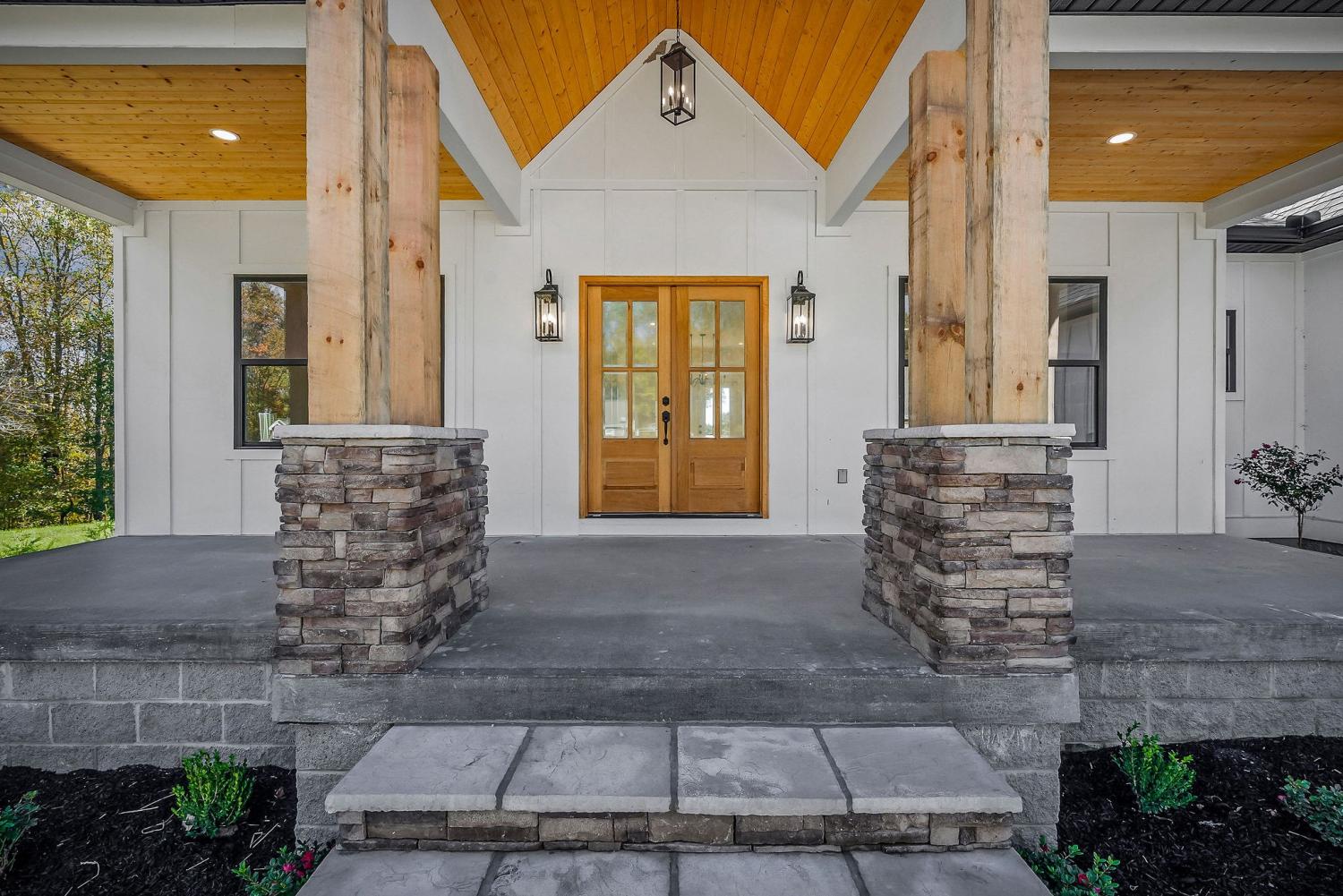 Exterior Construction : Hardboard Siding,Stone