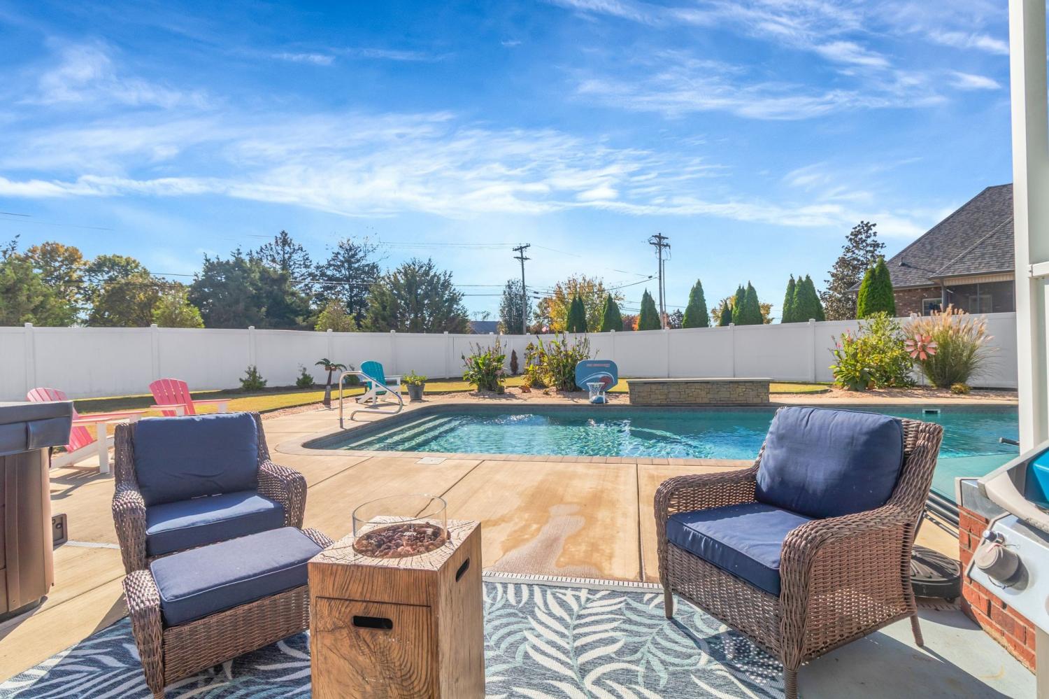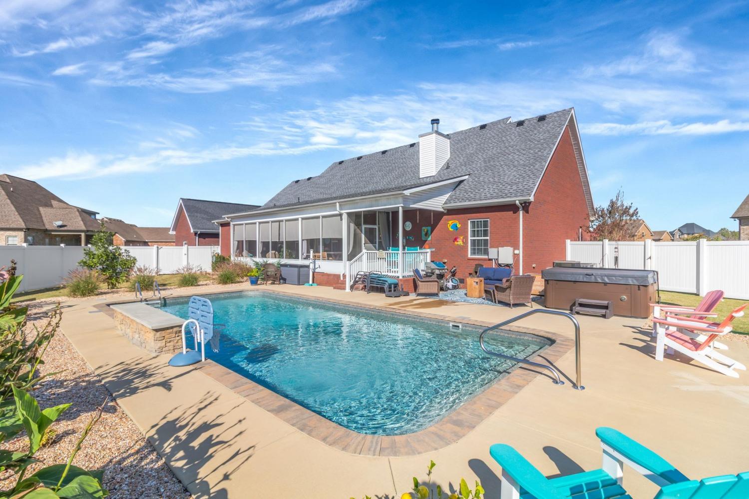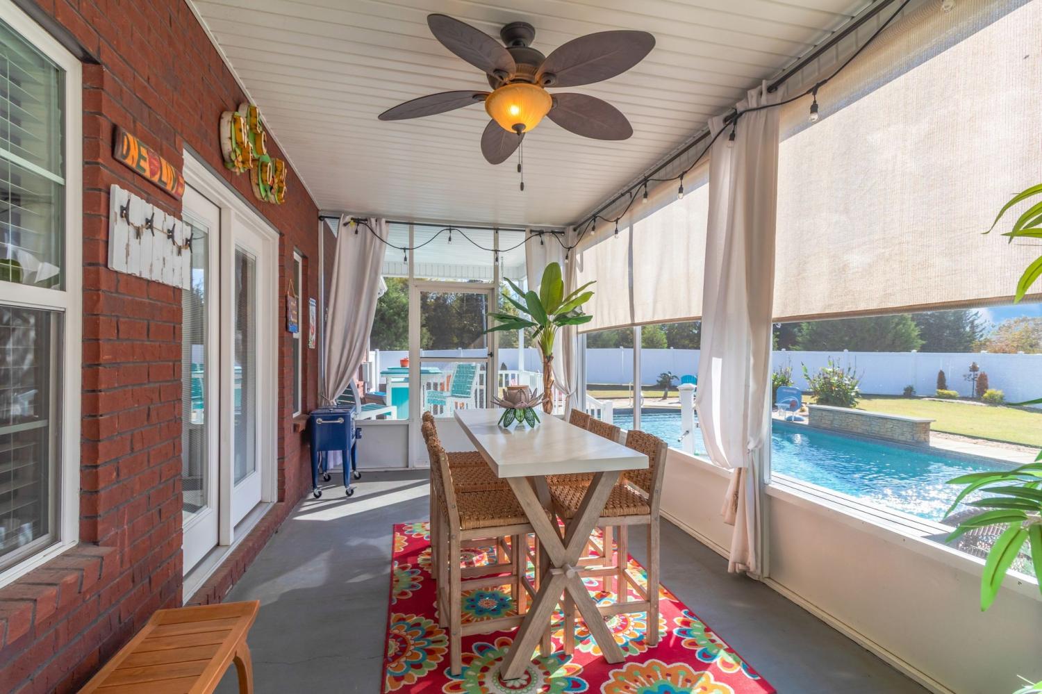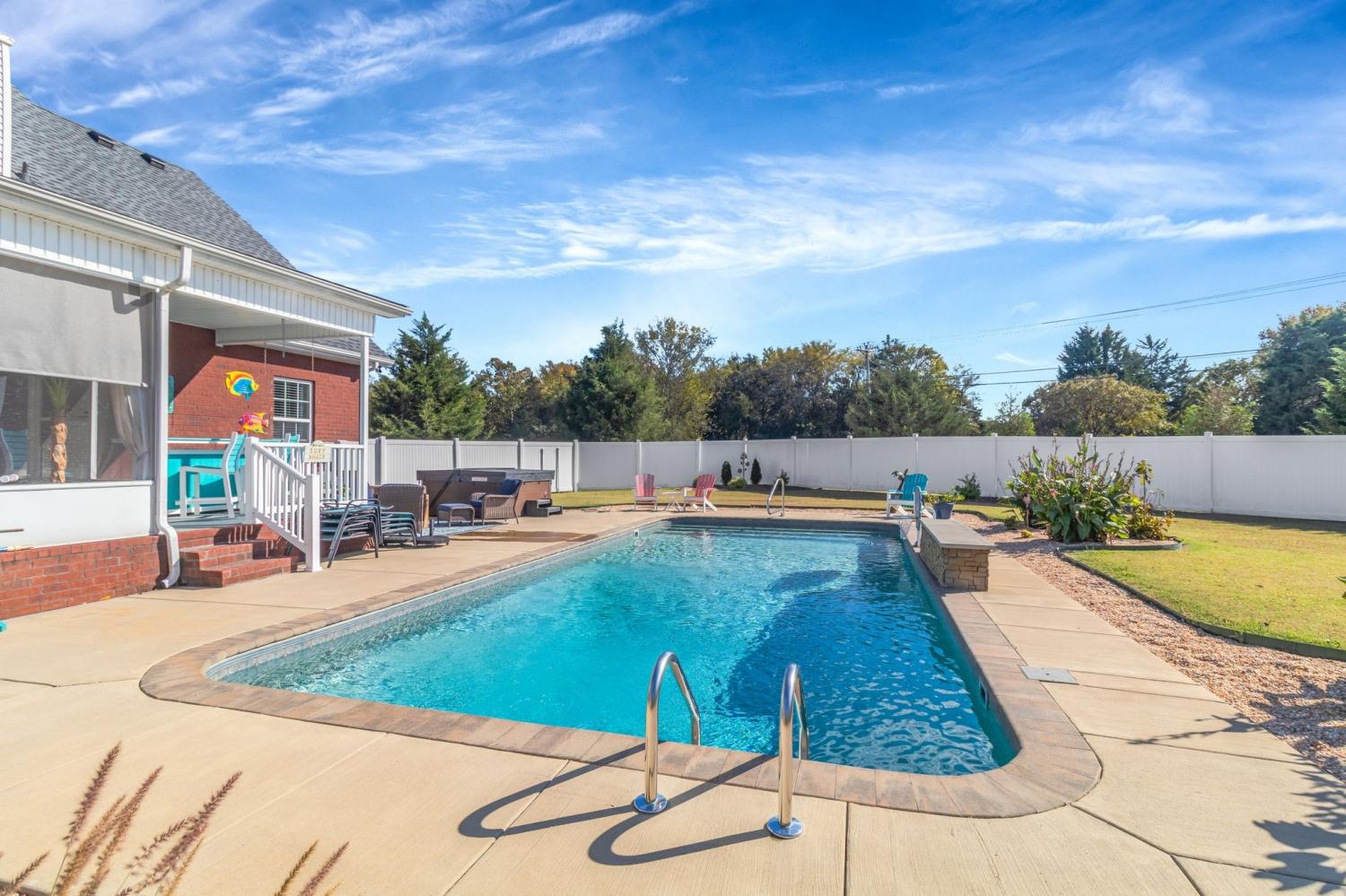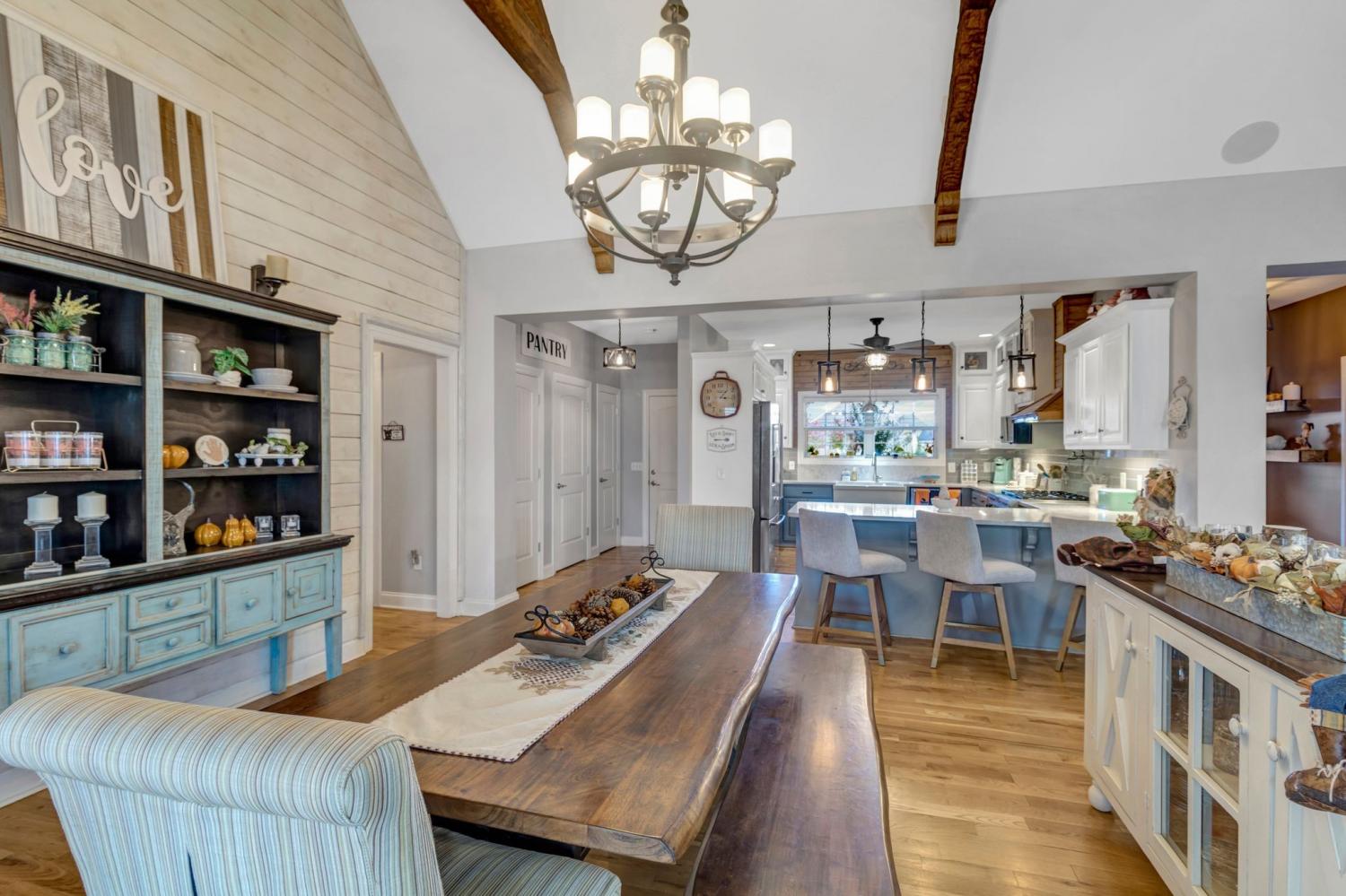 Stunning, Updated Home with 4 Bedrooms on the Main Level! Beautifully renovated with designer finishes throughout. The kitchen features quartz countertops, double ovens, gas cooktop, pot filler, and upgraded appliances. Open living area with exposed beams, shiplap accents, and built-ins flanking a stacked stone wood-burning fireplace. The primary bath has been updated with an upgraded vanity and stylish finishes. Bonus room upstairs converted to a private suite with full bath. Baths feature granite counters and tile finishes. Carpet installed three years ago. Enjoy the screened porch overlooking a large, fenced-in backyard with a 16x36 saltwater heated pool (installed 3 years ago) featuring coping all around, a three-tier waterfall with color-changing lights. Additional highlights include: 3-car attached garage + 1-car detached garage with 220V power & water Encapsulated crawl space Utility room with granite counter, sink & cabinets Move-in ready and full of updates—this home offers luxury, comfort, and outdoor living at its best!