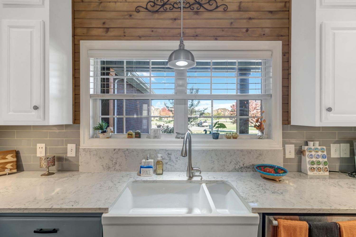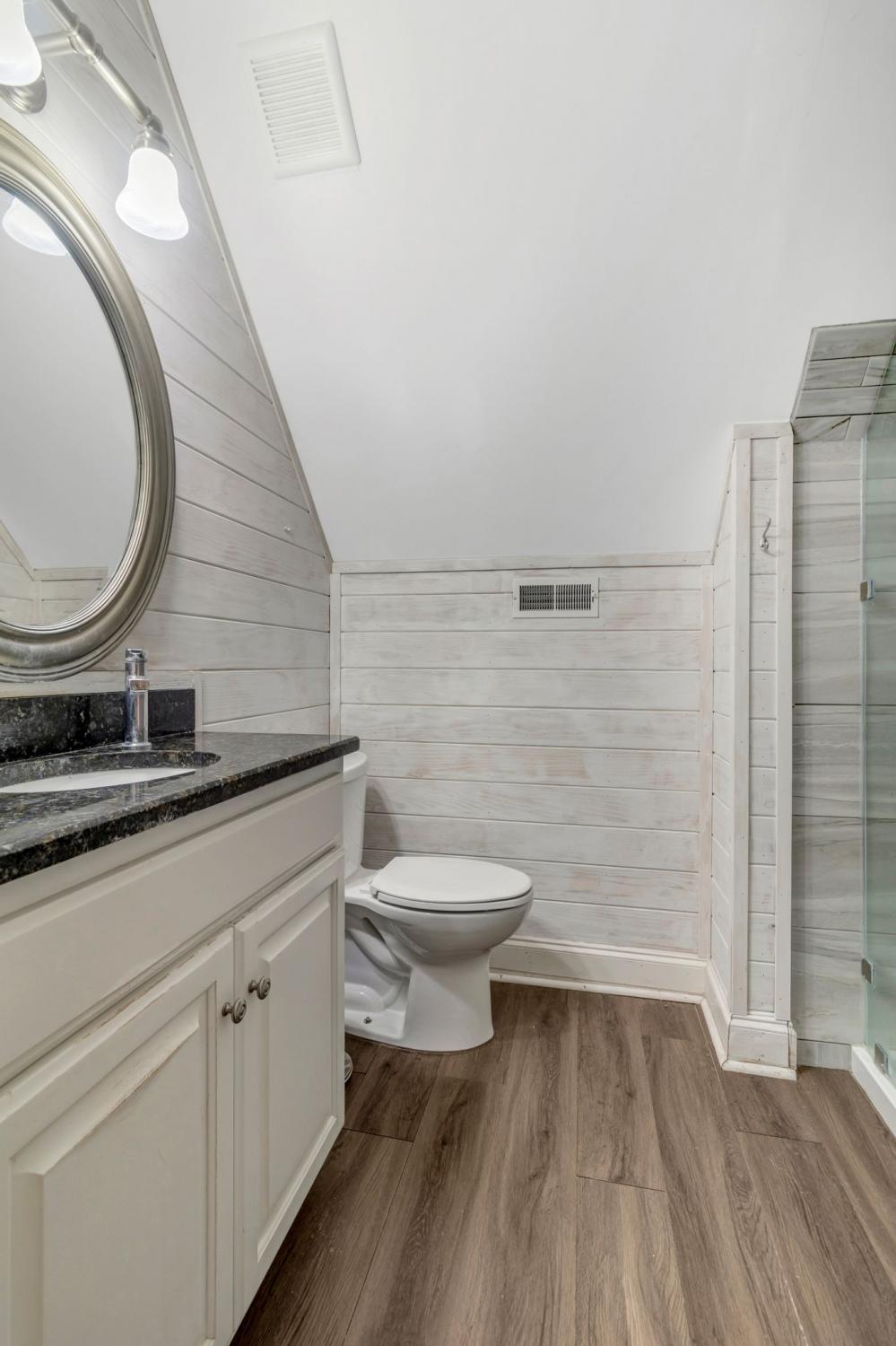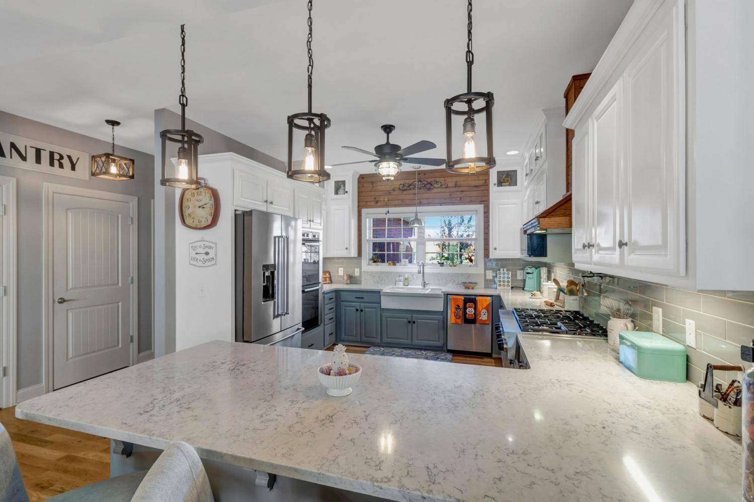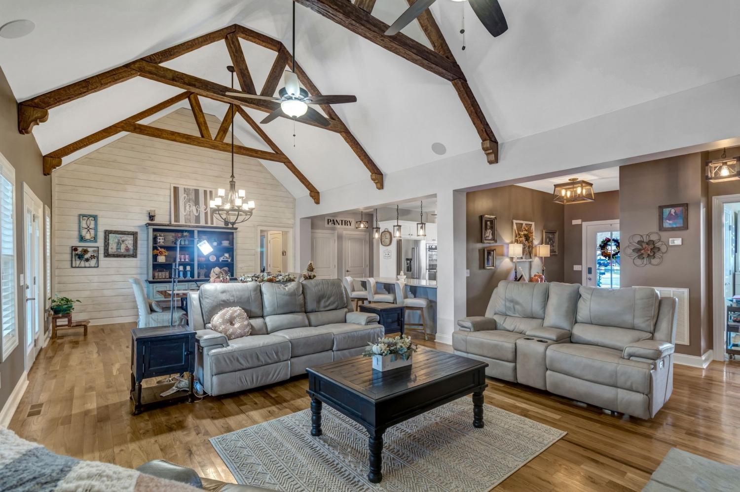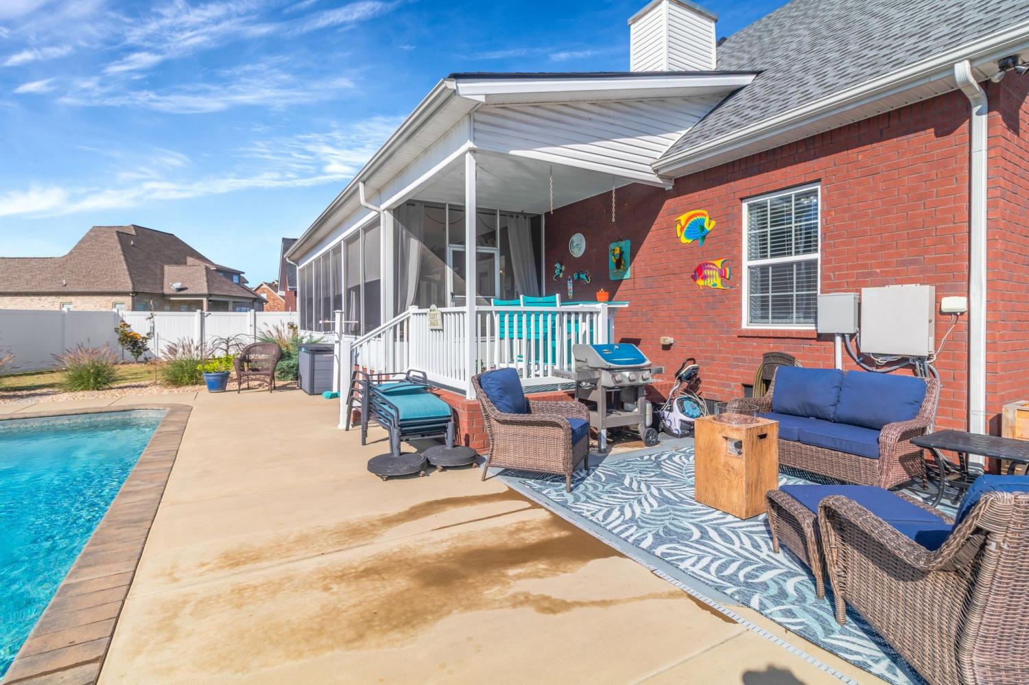 Stunning, Updated Home with 4 Bedrooms on the Main Level! Beautifully renovated with designer finishes throughout. The kitchen features quartz countertops, double ovens, gas cooktop, pot filler, and upgraded appliances. Open living area with exposed beams, shiplap accents, and built-ins flanking a stacked stone wood-burning fireplace. The primary bath has been updated with an upgraded vanity and stylish finishes. Bonus room upstairs converted to a private suite with full bath. Baths feature granite counters and tile finishes. Carpet installed three years ago. Enjoy the screened porch overlooking a large, fenced-in backyard with a 16x36 saltwater heated pool (installed 3 years ago) featuring coping all around, a three-tier waterfall with color-changing lights. Additional highlights include: 3-car attached garage + 1-car detached garage with 220V power & water Encapsulated crawl space Utility room with granite counter, sink & cabinets Move-in ready and full of updates—this home offers luxury, comfort, and outdoor living at its best!