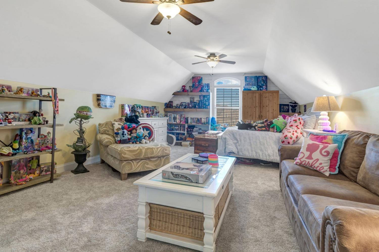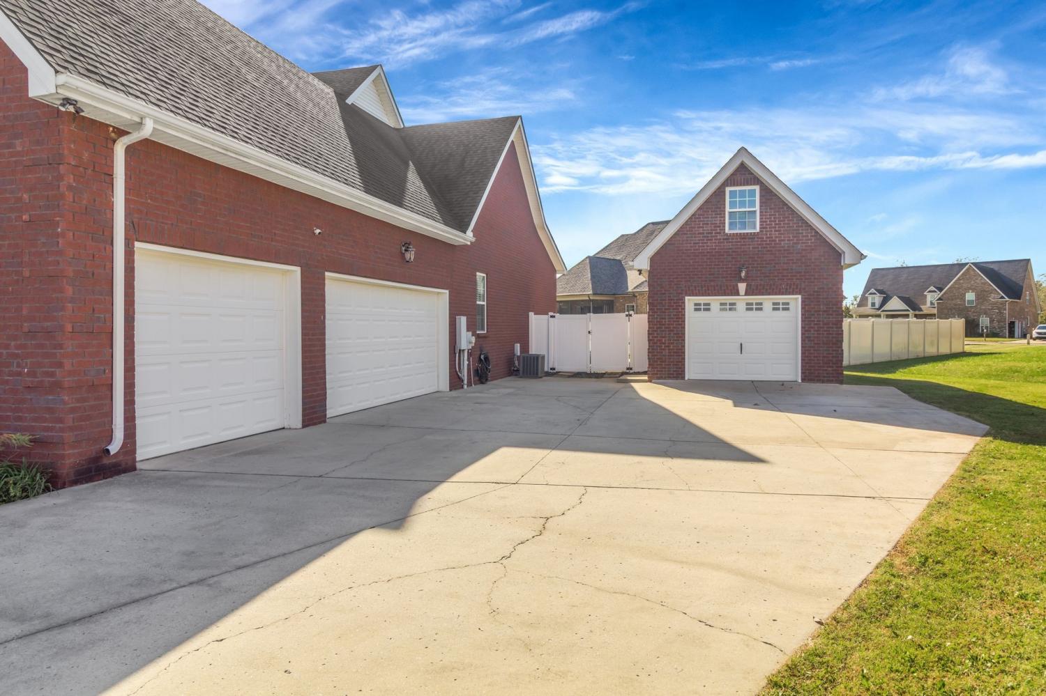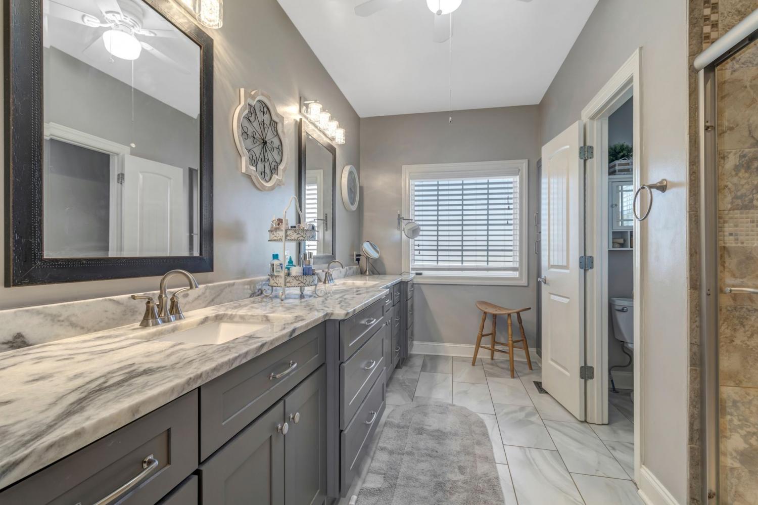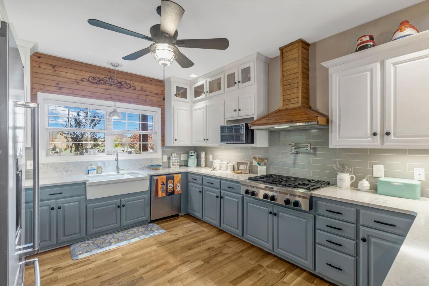 Stunning, Updated Home with 4 Bedrooms on the Main Level! Beautifully renovated with designer finishes throughout. The kitchen features quartz countertops, double ovens, gas cooktop, pot filler, and upgraded appliances. Open living area with exposed beams, shiplap accents, and built-ins flanking a stacked stone wood-burning fireplace. The primary bath has been updated with an upgraded vanity and stylish finishes. Bonus room upstairs converted to a private suite with full bath. Baths feature granite counters and tile finishes. Carpet installed three years ago. Enjoy the screened porch overlooking a large, fenced-in backyard with a 16x36 saltwater heated pool (installed 3 years ago) featuring coping all around, a three-tier waterfall with color-changing lights. Additional highlights include: 3-car attached garage + 1-car detached garage with 220V power & water Encapsulated crawl space Utility room with granite counter, sink & cabinets Move-in ready and full of updates—this home offers luxury, comfort, and outdoor living at its best!