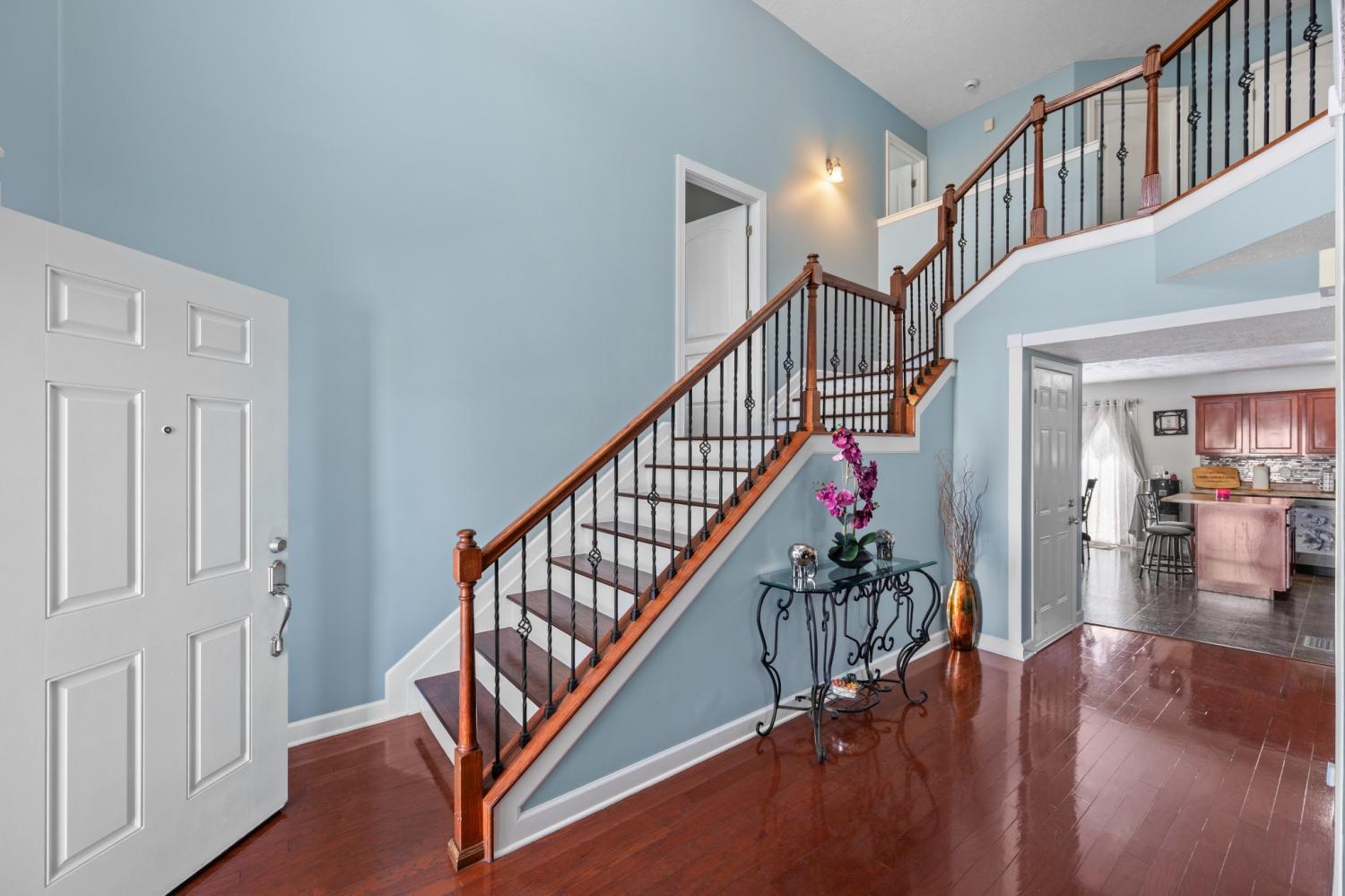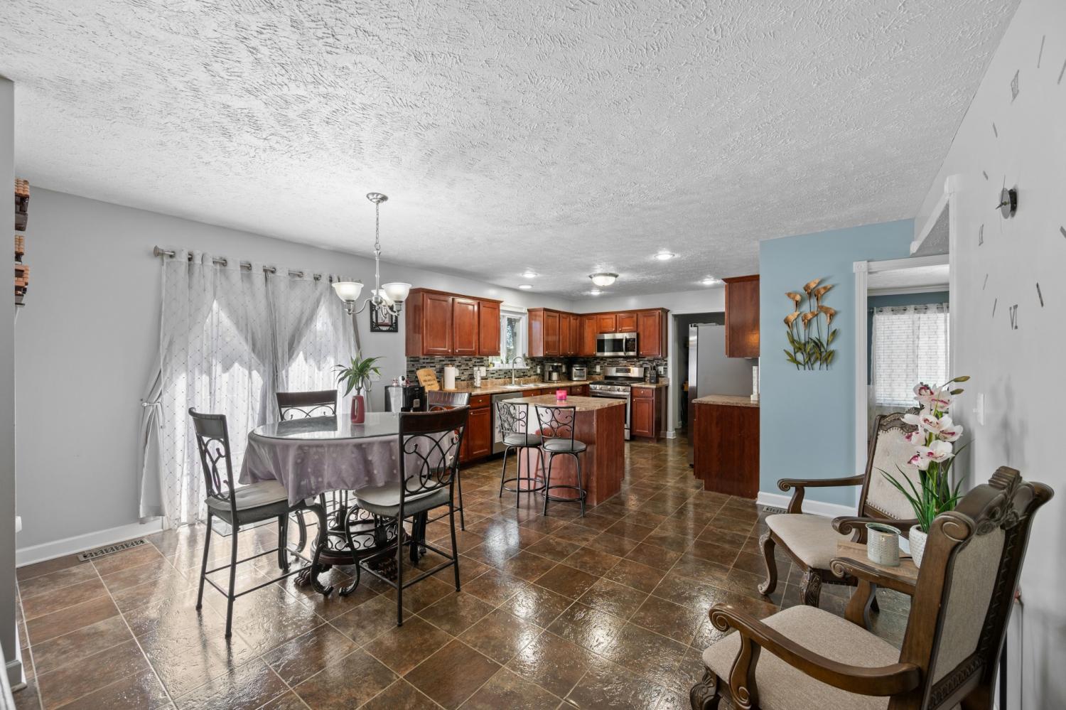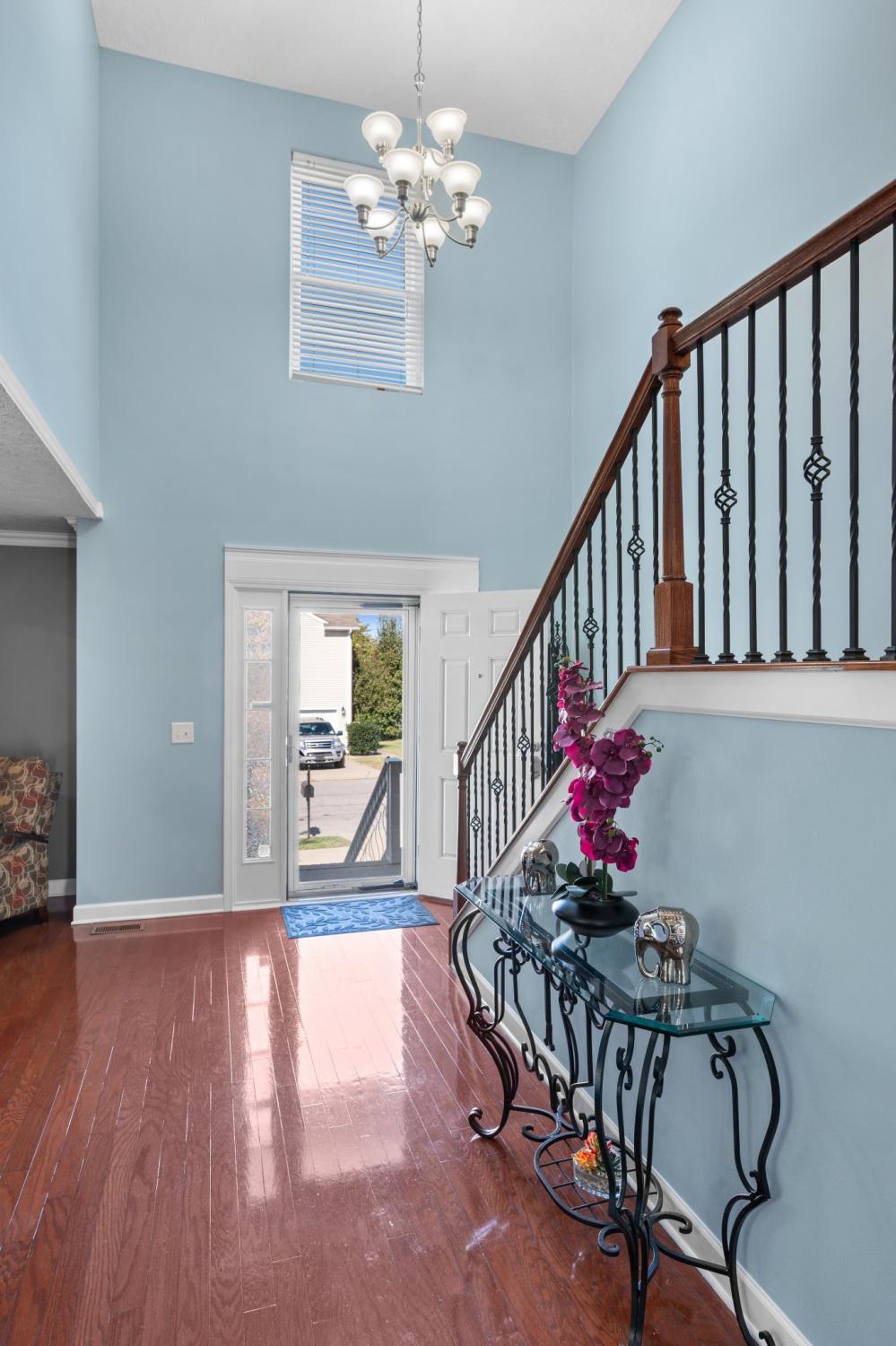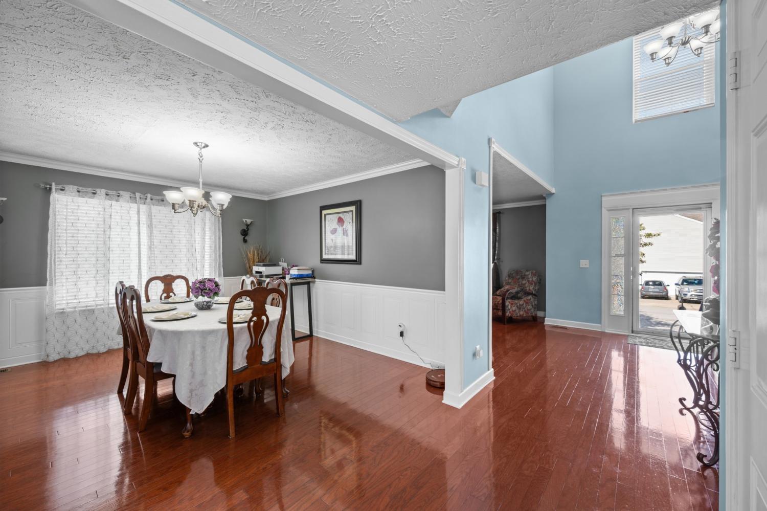 Step inside to a bright and welcoming foyer with soaring ceilings that lead to a cozy formal living and dining room with the table and china cabinet included as a welcome gift from Seller! The spacious eat-in kitchen offers plenty of cabinets, a large island, and opens to a comfortable den with a fireplace. Step outside to a huge deck for morning coffee and enjoy evening sunsets, perfect for cookouts, and gatherings. The heated and cooled basement is partially finished with a full bath and appliances that remain — giving you endless possibilities for extra living or entertaining space. A large pantry and tons of storage make everyday living easy. Located in a friendly neighborhood with quick access to shopping, dining, and highways — this home is ready to welcome its next owners.
