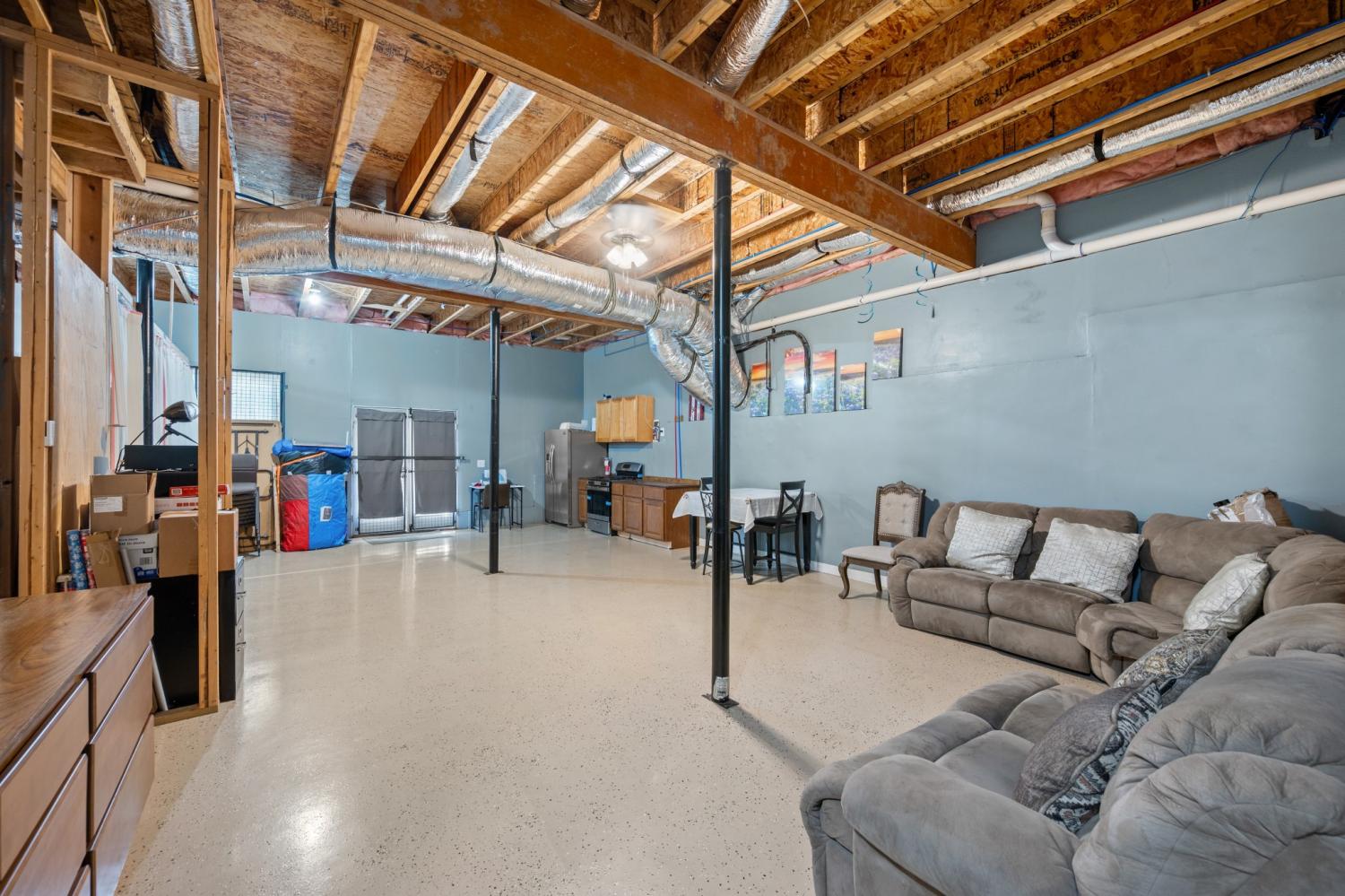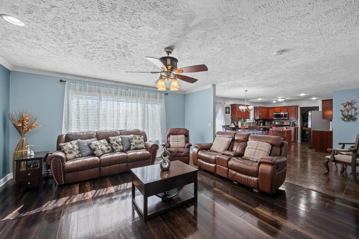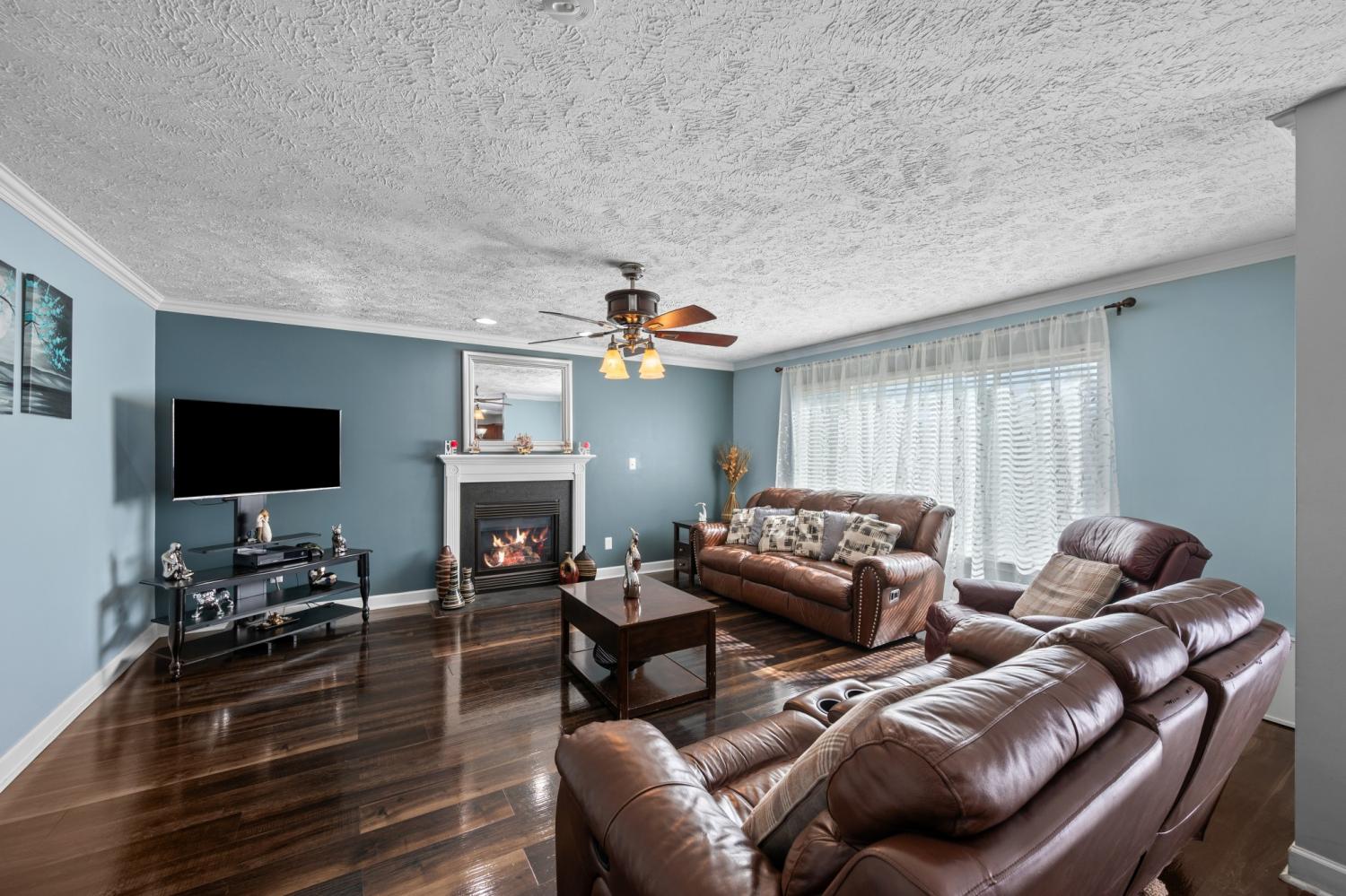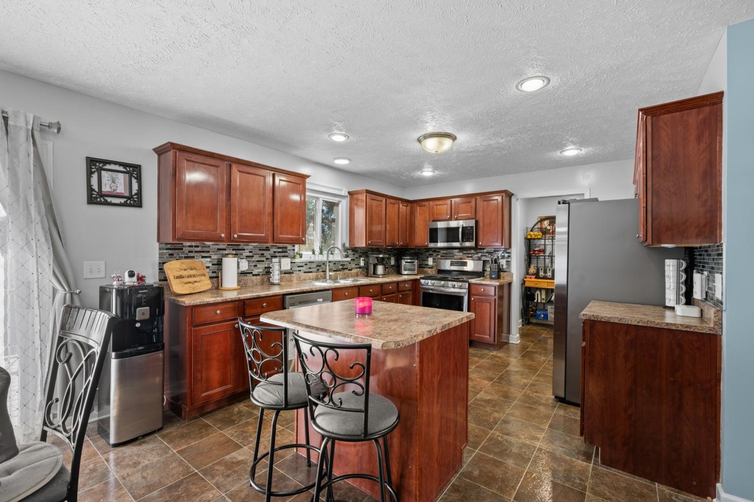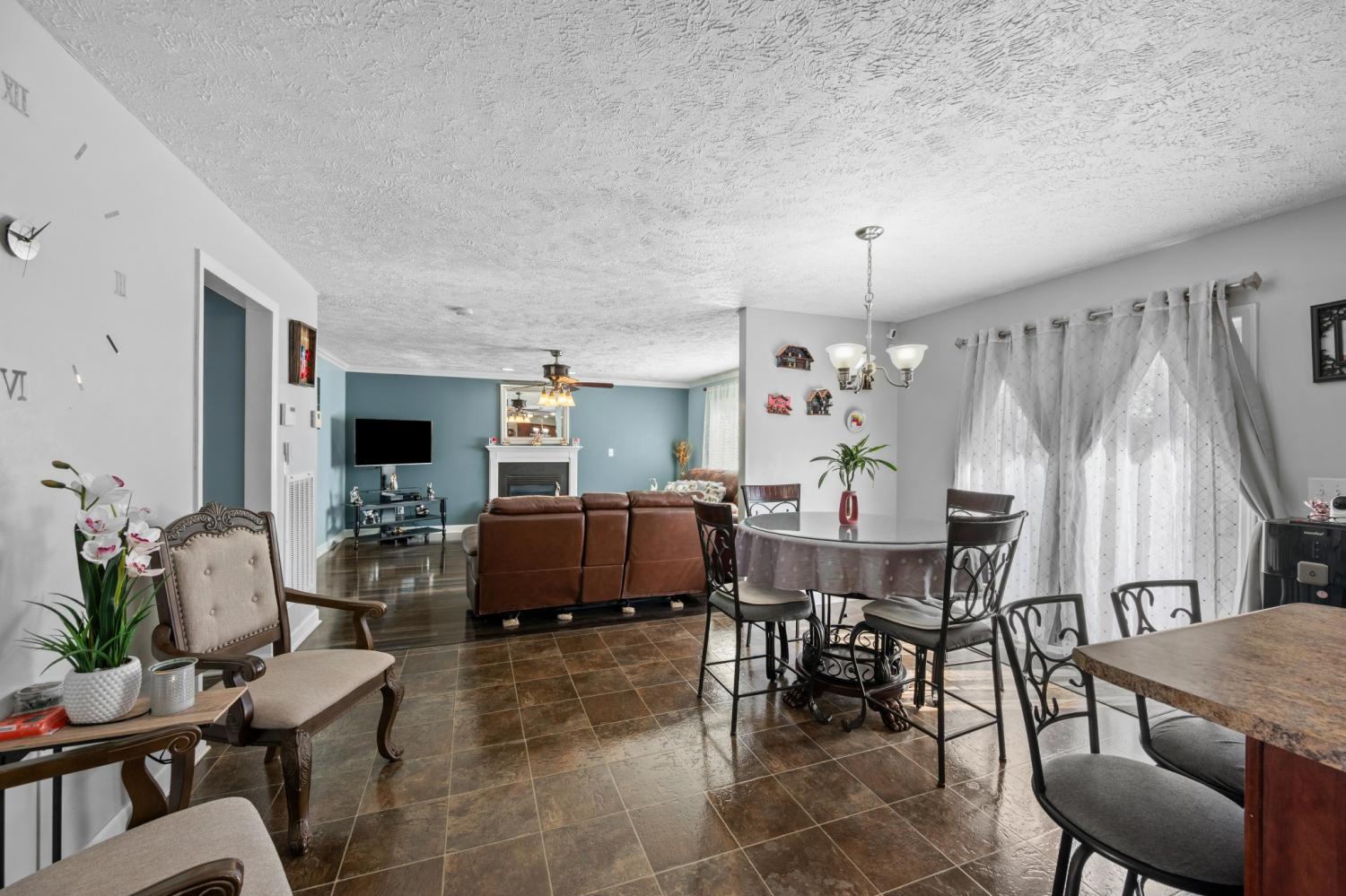 Step inside to a bright and welcoming foyer with soaring ceilings that lead to a cozy formal living and dining room with the table and china cabinet included as a welcome gift from Seller! The spacious eat-in kitchen offers plenty of cabinets, a large island, and opens to a comfortable den with a fireplace. Step outside to a huge deck for morning coffee and enjoy evening sunsets, perfect for cookouts, and gatherings. The heated and cooled basement is partially finished with a full bath and appliances that remain — giving you endless possibilities for extra living or entertaining space. A large pantry and tons of storage make everyday living easy. Located in a friendly neighborhood with quick access to shopping, dining, and highways — this home is ready to welcome its next owners.