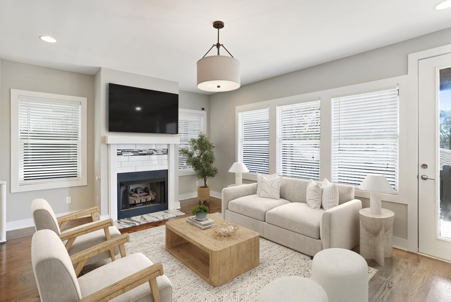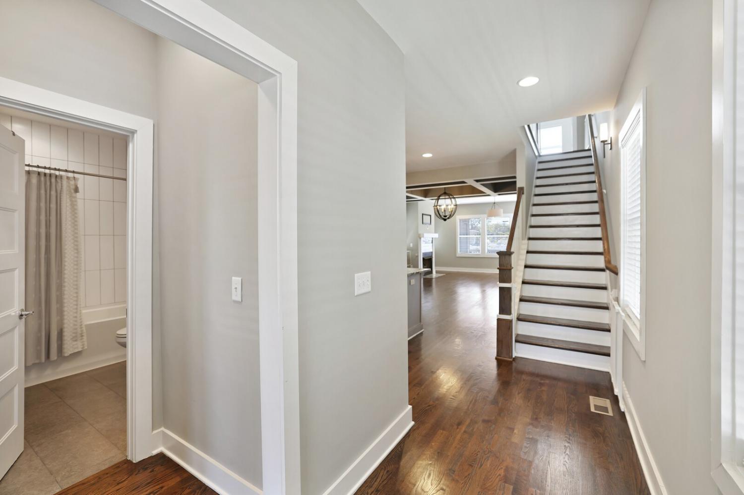 Welcome to this beautifully designed home in the heart of The Nations, one of Nashville’s most sought-after neighborhoods. Built in 2017 & offering over 2,100 square feet, this 3 bedroom, 3 bath residence combines modern style w/ everyday comfort. The location allows easy access to I-40 for a quick downtown commute & close proximity to shops & restaurants. A detached 2 car carport w/ garage door provides privacy & security, while fully fenced front & back yards create the perfect setting for both pets & entertaining. A back deck with adds to the home’s functionality. Inside, the main level features hardwood flooring throughout & an open-concept design. The chef’s kitchen has stainless steel appliances—including a refrigerator that conveys—granite countertops, a large island, tile backsplash, and a spacious eat-in area highlighted by a coffered ceiling & designer light fixture. The family room offers a gas fireplace, walls of windows that fill the space w/ natural light, & access to the deck for effortless indoor/outdoor entertaining. A main level bedroom w/ hardwood floors & a full bath provides a flexible guest or office option. Upstairs, hardwoods continue on the stairs and hallway, leading to a large bonus room with a closet—perfect for a home office, gym, playroom, or media space. The primary suite includes plush carpet & two expansive walk-in closets. The spa-like primary bath features double vanities, a tiled shower, tile flooring, & a private water closet. A third bedroom also includes plush carpet & private access to a full Jack & Jill bath, which connects to the hallway for shared access w/ the bonus room. The upstairs laundry closet, equipped with a washer and dryer that convey. Smart home touches like the Blink doorbell and keyless entry, elegant window coverings, and thoughtful details throughout make this home truly move in ready. Home Sweet Home! Up to 1% lender credit on the loan amount when buyer uses Seller's Preferred Lender.