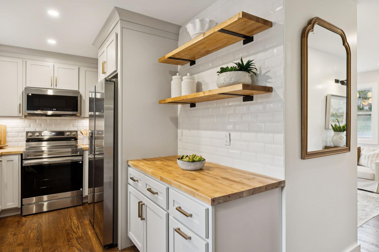 Welcome to the smartest investment in Franklin. Completely reimagined and renovated down to the studs, this 1971 Ranch home has been reborn as a modern masterpiece just steps from The Factory and minutes from the charm of Historic Downtown. This isn't just a home; it is two complete living experiences under one roof. The main level features a light-flooded open concept with oak wood flooring, a chef's kitchen boasting butcher block countertops and custom cabinetry, and a secluded primary suite designed for total relaxation.The true "unfair advantage" of this property is the fully finished daylight basement. With its own private entrance, kitchenette, two bedrooms, and full bath, it offers a lucrative Short Term Rental opportunity, a seamless mother-in-law suite, or the ultimate private office. Set on a quiet quarter-acre lot with sunset views from the new front deck, this is a rare chance to own a move-in ready gem in one of Tennessee's most sought-after zip codes. Live in one, rent the other, or enjoy the luxury of unmatched space.