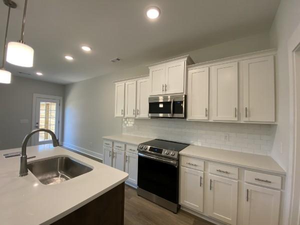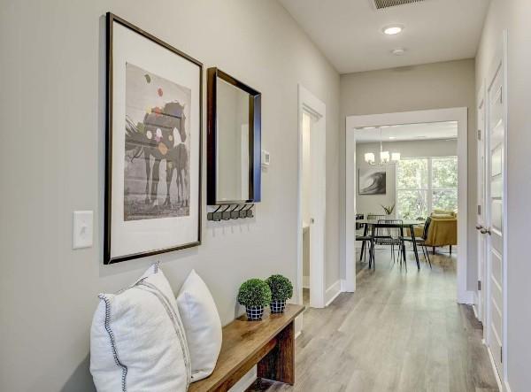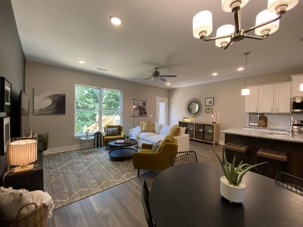 Step into elegance with towering 8-foot front doors, designed to make a lasting impression on you and your guests. From the moment you set foot on the premium Shaw LVP flooring, you’ll sense the unique quality and style that sets this townhome apart. The kitchen is thoughtfully crafted with upgraded cabinetry, modern hardware, strategic lighting, and high-end stainless steel appliances, complemented by a stylish tile backsplash—everything you need, with ample storage to match. The spacious great room opens to a private, fenced-in patio, perfect for relaxation or entertaining. Washer and dryer are included! You have access to a spacious clubhouse that can be reserved for events, two oversized swimming pools, a playground, and a fully equipped fitness center. This isn’t just a townhome; it’s a lifestyle upgrade.