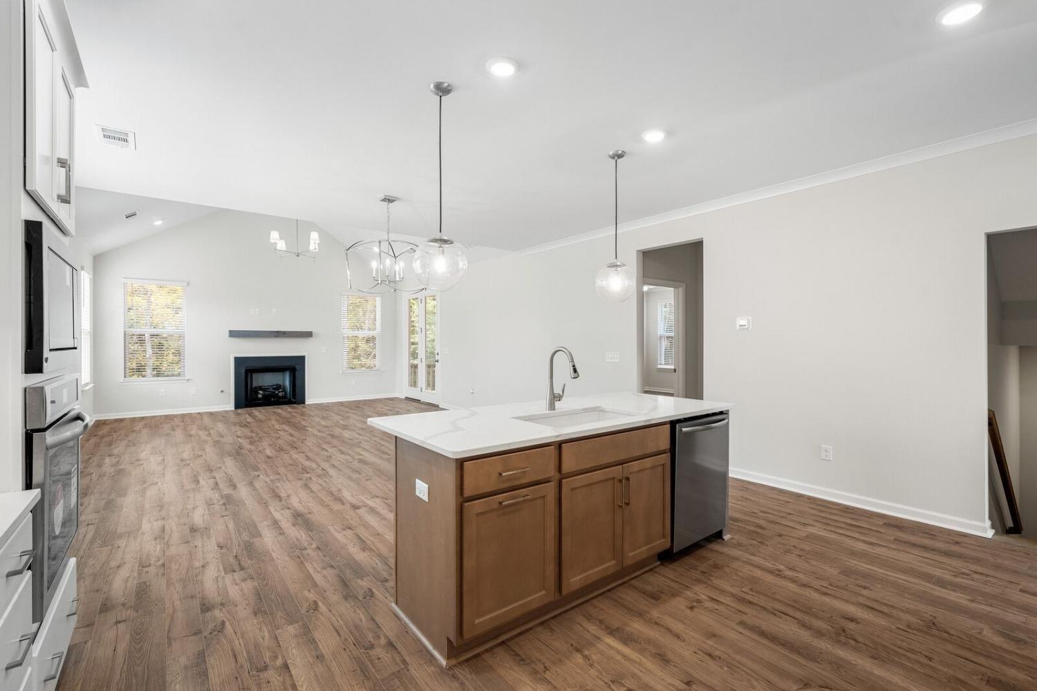 Modern Farmhouse on a Cul-de-Sac | Lockwood on Lot 8 – MOVE-IN READY Low interest-rate incentives with preferred lender & title The final basement home at Goodwin Farms, this stunning Lockwood sits on a spacious cul-de-sac with a walk-out basement and peaceful tree-line views. The white farmhouse exterior, three covered porches, and 3-car front-entry garage with extended driveway make this home both elegant and functional. Inside, enjoy an open layout with three living areas, a main-level primary suite and study/dining room and a flexible walk-out basement featuring a bedroom, full bath, W/D hookups, and pre-plumbed wet bar. Upstairs offers three additional bedrooms, two full baths, and a large den. Photos are of the actual home.