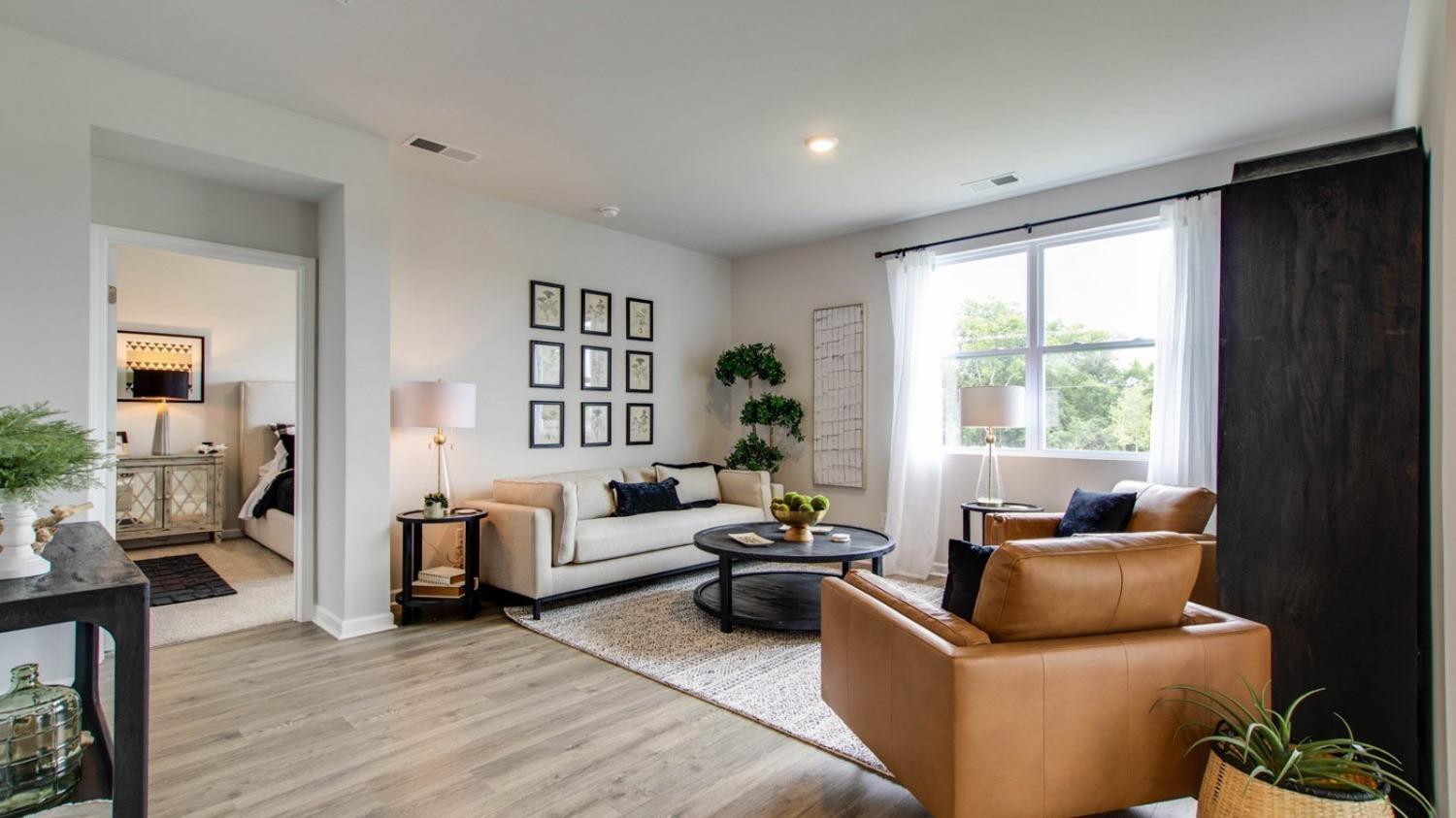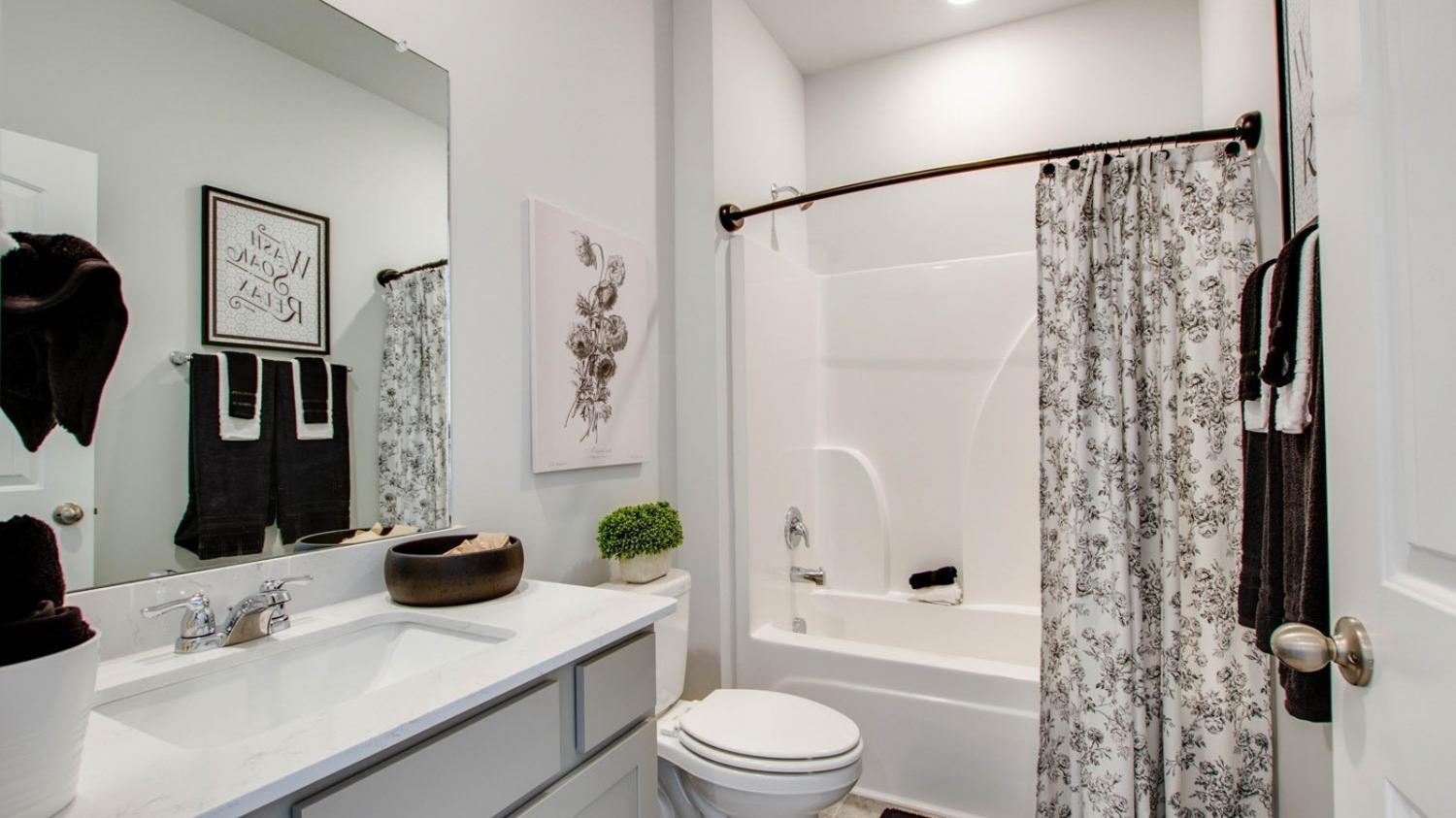 Welcome to the Cali, a new home in The Parks, White House, TN. This one-story floorplan offers 4 bedrooms, 2 bathrooms, and a 2 car garage, blending generous living space with smart design. Step inside to an open-concept layout enhanced by 9' ceilings, quartz countertops throughout the kitchen and bathrooms, and Whirlpool stainless steel appliances for a sleek, modern feel. The kitchen features a spacious island perfect for bar-style dining or entertaining, a walk-in pantry, and abundant cabinet and counter space. Adjoining dining and living spaces overlook a covered porch, an effortless transition to outdoor relaxation and al fresco dining. The primary bedroom offers privacy and size, comfortable for a king bed, paired with an en suite bathroom equipped with a double vanity, large walk-in closet, and separate linen closet. Three additional bedrooms share a thoughtfully designed full bathroom, all fitted with quartz countertops. The floorplan also includes a two-car garage that connects to the front hallway, giving easy access to the laundry room and extra storage closet. Modern conveniences abound with the Home is Connected smart technology package, allowing you to control your thermostat, lighting, and security remotely from your smart device, whether you’re home or away. Beautiful landscaping rounds out the exterior appeal.