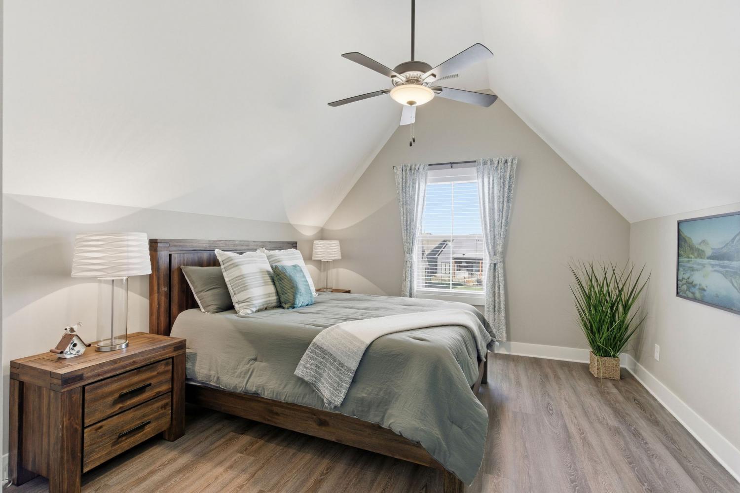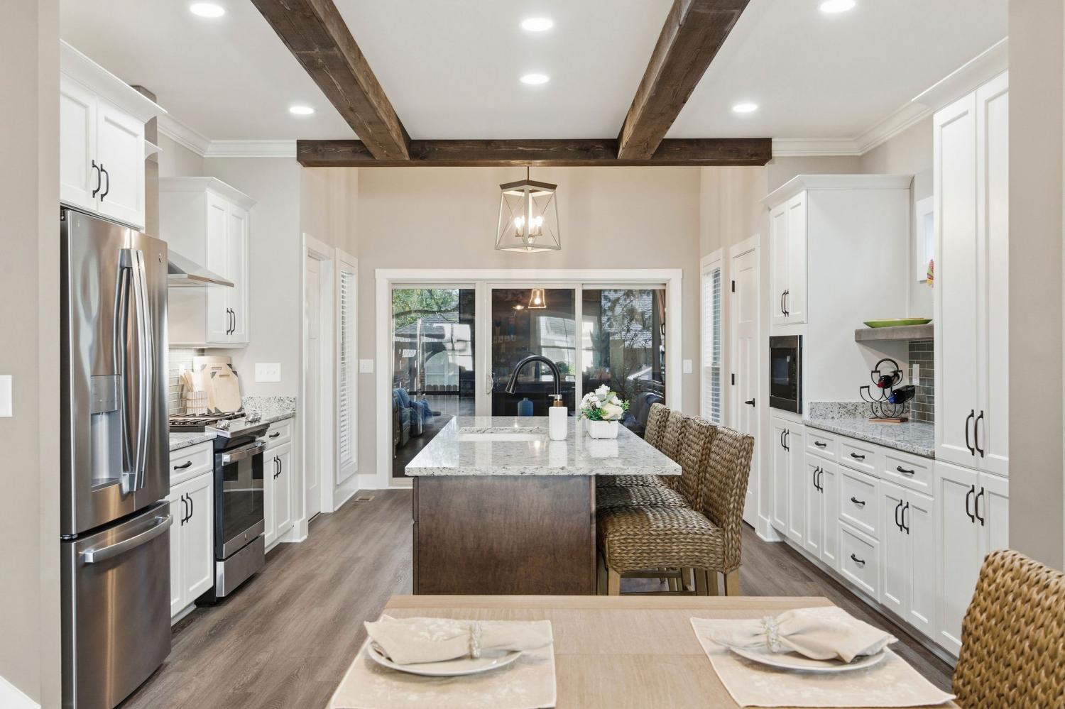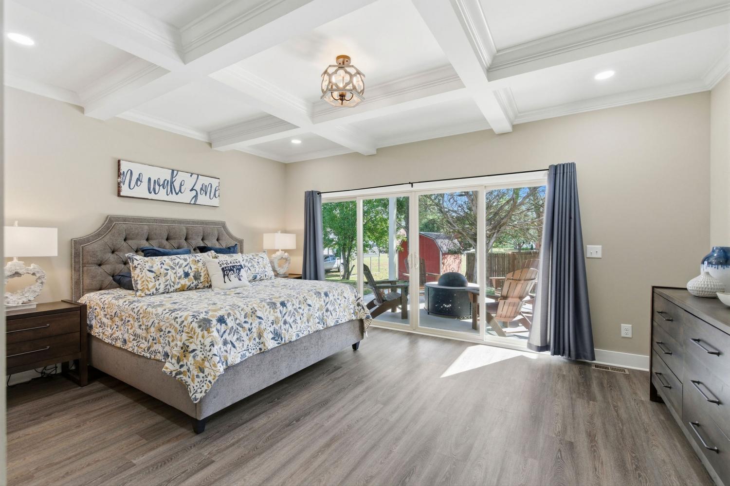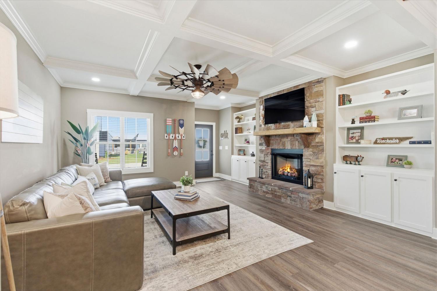 Lake life at its finest! This better than new, custom home in Twin Creeks is a MUST SEE and features upgrades galore! From the inviting stone-accented exterior and charming covered front porch to the open and thoughtfully designed interior, every detail of this home exudes quality and comfort. It is a rare opportunity to find a home with all the bells and whistles at this price! Inside, you’ll find four spacious bedrooms — including two primary suites with en suite baths — plus a bonus room with private bath that could easily serve as a fifth bedroom. The main-level primary suite with coffered ceiling features a personal patio area, while the upstairs primary suite offers a private balcony with peaceful views; both providing your own special retreat. Luxury vinyl plank floors flow seamlessly throughout this home; no carpeting. The kitchen and dining area feature detailed wooden beams, quartz countertops, a gas cooktop, and stainless steel appliances, creating a perfect mix of elegance and functionality. The open floor plan features a spacious living room with a coffered ceiling, a gas fireplace and built-ins.The kitchen and dining areas feature detailed wooden beams, adding warmth and an elegant focal point for family gatherings and entertaining. Don’t miss the chance to experience this impeccably maintained, move-in-ready home that blends luxury, functionality, and a true sense of community. But the true magic is in the lifestyle. Enjoy days on the water boating or kayaking, evenings at the community restaurant and bar, and weekends spent at the pools, clubhouse, and social events with neighbors who soon feel like family. Whether you’re looking for a primary home or a lake getaway, this home offers the best of both worlds — comfort, community, and a life that feels like vacation every day.