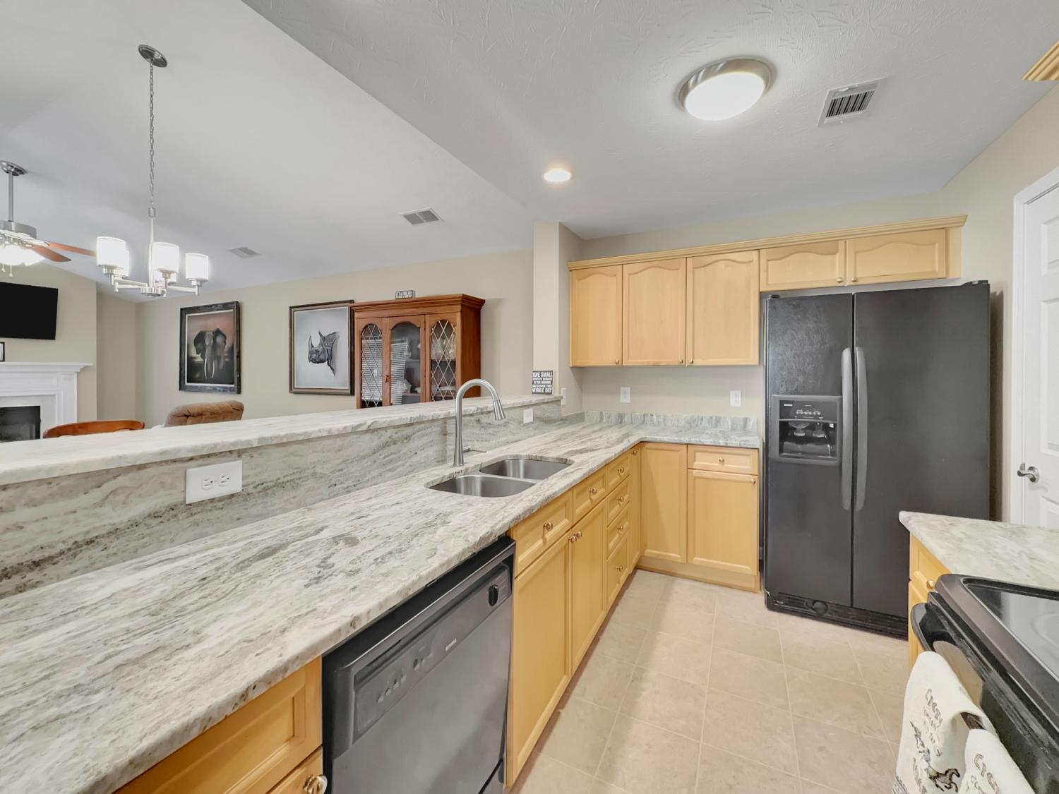 Welcome to this charming attached cottage-style home in a sought-after 55+ community! This rare 3-bedroom floor plan offers both comfort and convenience, featuring beautiful hardwood flooring throughout, gorgeous countertops, and a remodeled primary bath complete with custom built-in closet and shelving. Cozy up by the fireplace, and soon enjoy the elegance of new plantation shutters currently scheduled for installation. Located beside an open common area, the home feels bright and spacious. Residents enjoy an exceptional lifestyle with access to a clubhouse, fitness studio, outdoor pool, and a wide range of clubs, activities, and social events. Perfectly situated near shopping, grocery stores, healthcare facilities, event venues, and the local community center—this home combines peaceful living with everyday convenience.