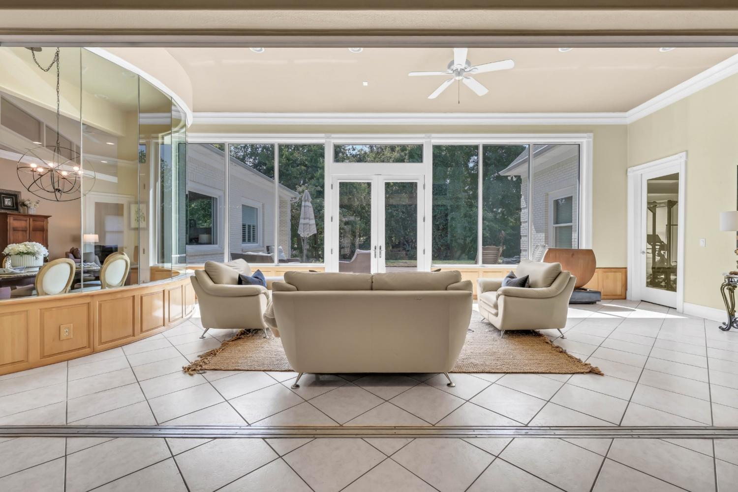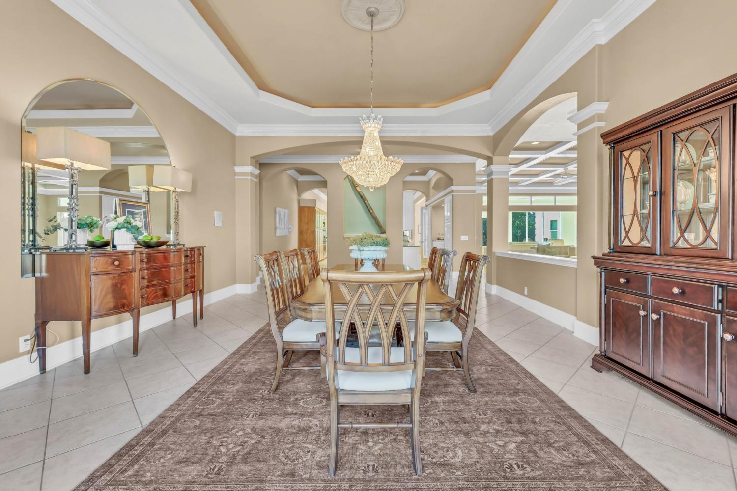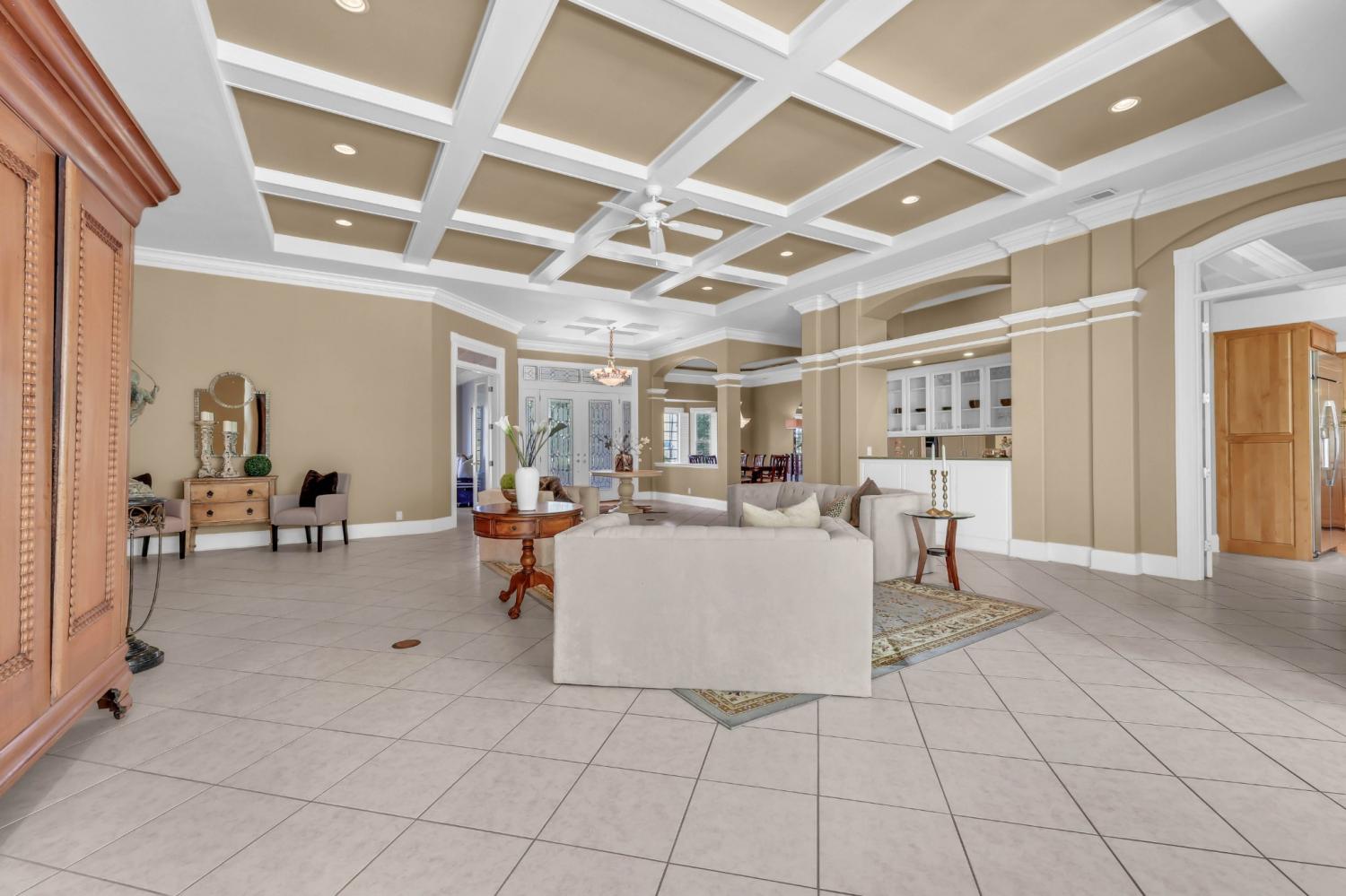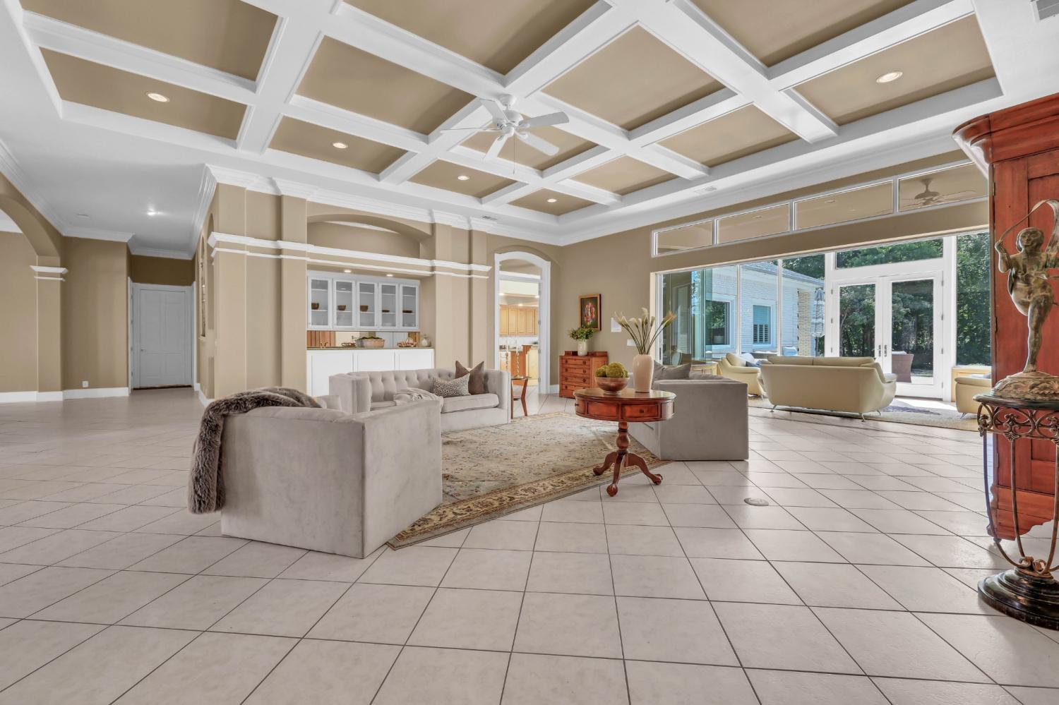 Stunning and stately, this impressive 8,300 sq. ft. residence sits gracefully on 1.88 acres, reached by a picturesque tree-lined driveway and highlighted by a grand porte-cochère. Every detail of this home exudes sophistication and comfort. Inside, the welcoming foyer opens to formal and casual living spaces, including a formal dining room and a beautifully designed eat-in kitchen featuring double islands, an abundance of custom cabinetry, a butler’s pantry, and stainless steel appliances—perfect for entertaining. The oversized primary suite is a true retreat, offering an expansive en-suite bathroom, a massive walk-in closet with built-ins, and an attached fitness room for ultimate convenience. The thoughtful floor plan includes a dedicated office for remote work, a charming Florida room filled with natural light, and a tornado shelter for added peace of mind. Elegant details are found throughout—from coffered ceilings and intricate trim work to the seamless flow between rooms. Outdoor living is equally impressive with an open patio overlooking the manicured grounds, complete with an irrigation system to maintain the lush landscape. Additional highlights include 3 spacious bedrooms, two and a half bathrooms, a three-car garage, and refined finishes that elevate this home’s timeless appeal. Combining luxury, comfort, and functionality, this remarkable estate delivers an unmatched lifestyle in an exquisite setting.