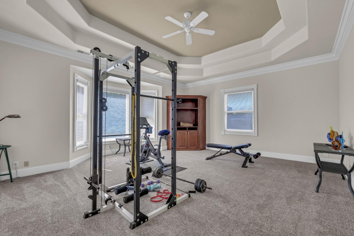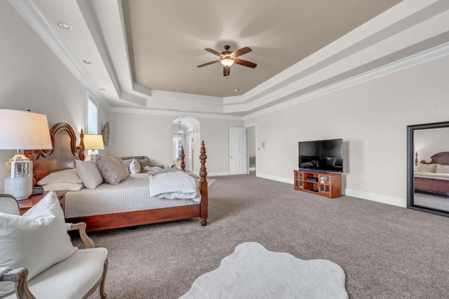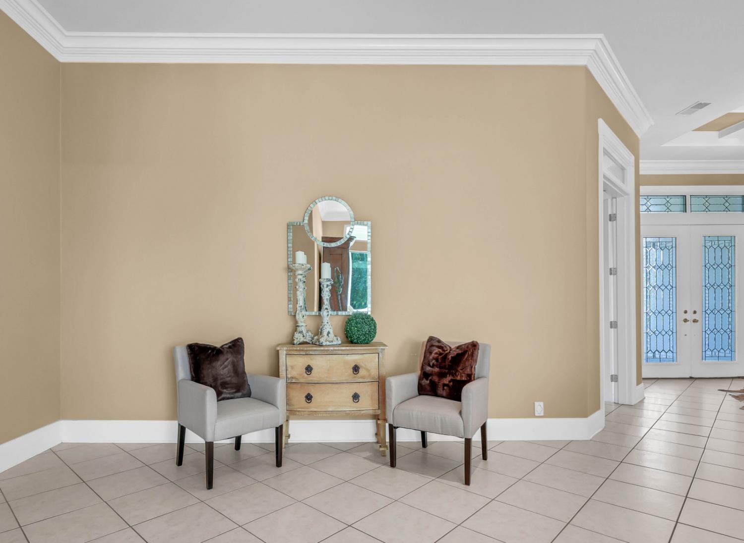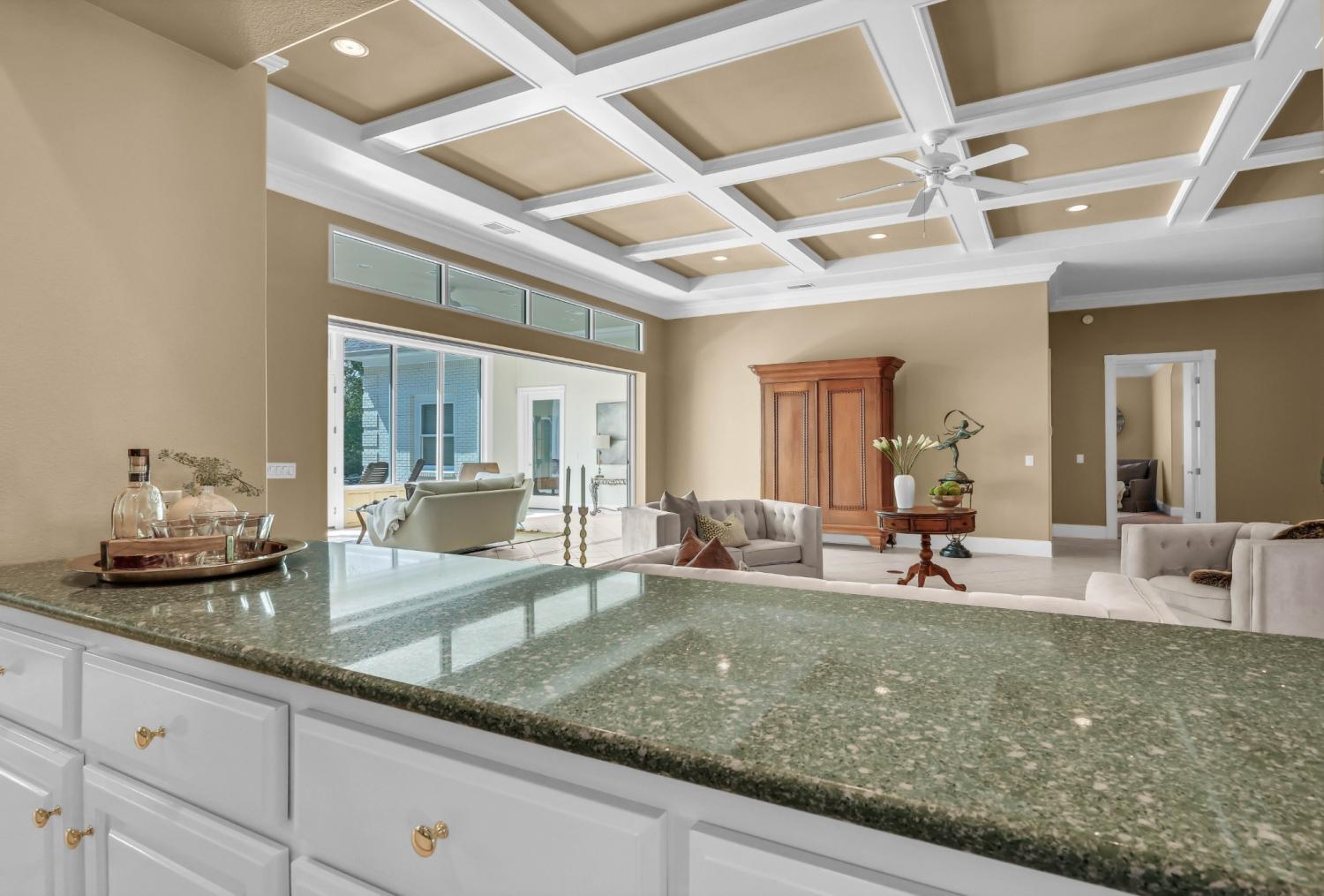 Stunning and stately, this impressive 8,300 sq. ft. residence sits gracefully on 1.88 acres, reached by a picturesque tree-lined driveway and highlighted by a grand porte-cochère. Every detail of this home exudes sophistication and comfort. Inside, the welcoming foyer opens to formal and casual living spaces, including a formal dining room and a beautifully designed eat-in kitchen featuring double islands, an abundance of custom cabinetry, a butler’s pantry, and stainless steel appliances—perfect for entertaining. The oversized primary suite is a true retreat, offering an expansive en-suite bathroom, a massive walk-in closet with built-ins, and an attached fitness room for ultimate convenience. The thoughtful floor plan includes a dedicated office for remote work, a charming Florida room filled with natural light, and a tornado shelter for added peace of mind. Elegant details are found throughout—from coffered ceilings and intricate trim work to the seamless flow between rooms. Outdoor living is equally impressive with an open patio overlooking the manicured grounds, complete with an irrigation system to maintain the lush landscape. Additional highlights include 3 spacious bedrooms, two and a half bathrooms, a three-car garage, and refined finishes that elevate this home’s timeless appeal. Combining luxury, comfort, and functionality, this remarkable estate delivers an unmatched lifestyle in an exquisite setting.