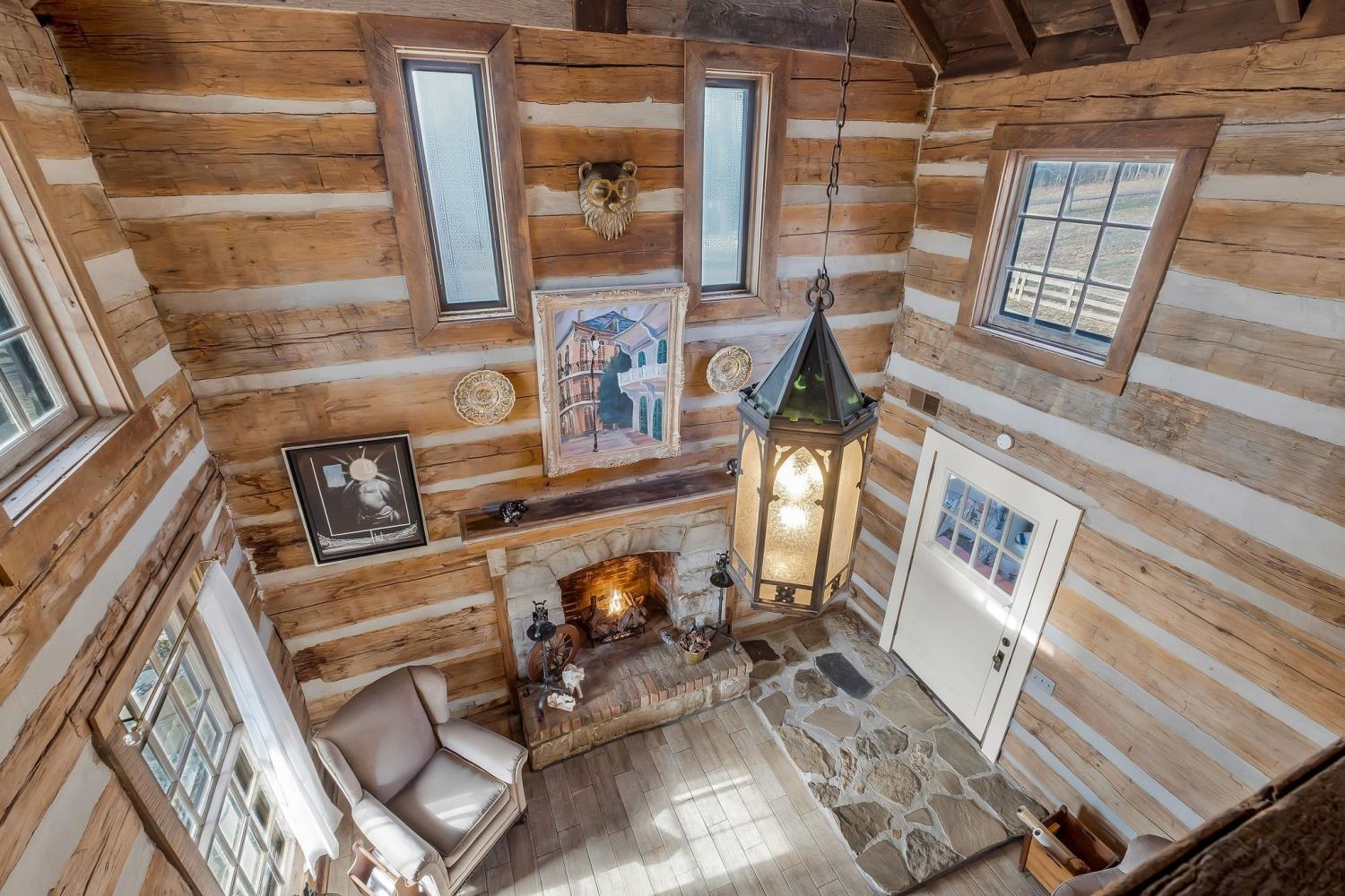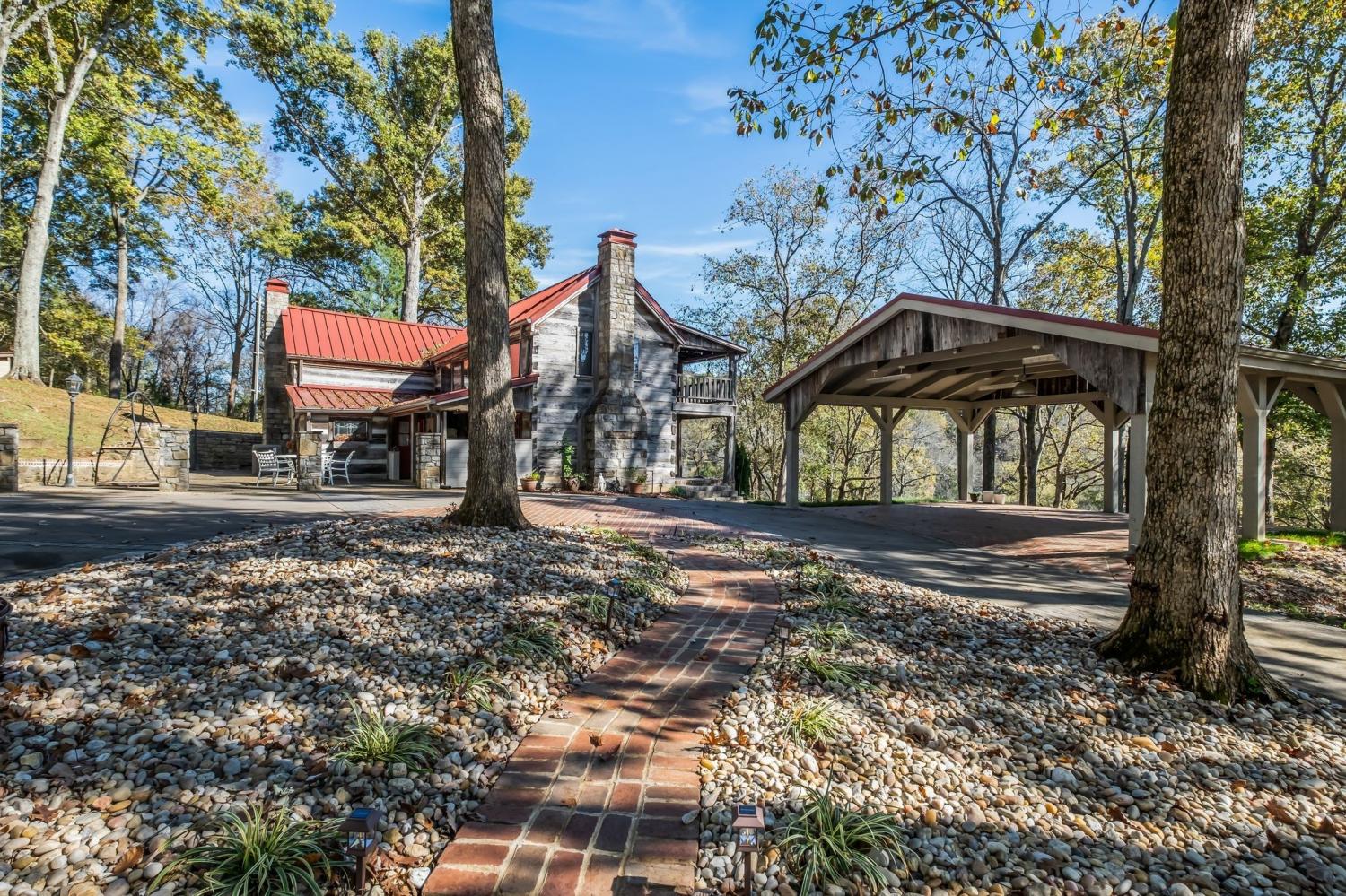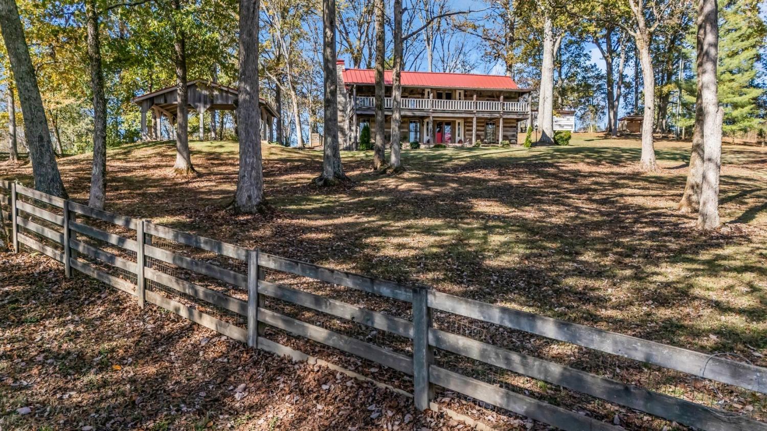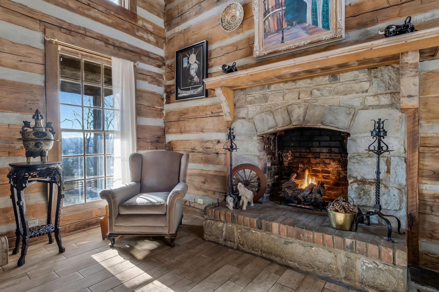 A creative masterpiece, this log home was designed and built in 1997 by famed local builder, Braxton Dixon. It is constructed of 19th century poplar logs from two different structues. The house has many architectural antique features, such as vintage leaded and stained glass windows, vintage doors, reclaimed wood and reclaimed brick floors. Dixon was a master stone mason, and the two wood burning fireplaces bear his signagure stone heart on the exterior chimneys. A gas line and gas log set was added to the living room fireplace for convenience. Two full-length covered porches overlook the 5.02 acre lot. A new 2-car carport, constructed from reclaimed wood, was added by the current owner, along with updated landscaping features and drainage improvements on the hill behind the home. The driveway from Long Hollow Pike has been repaved. A new standing seam insulated metal roof and new gutters and chimney caps were recentely installed. New HVAC was installed in 2021 by the previous owner. The primary bath features antique claw foot tub and handmade tiles from Mexico. Note that upstairs the third bedroom is entered through the second bedroom. Located just outside the Goodlettsville city limits, the home is in Sumner County and is five minutes from I-65 North, 20-25 minutes to Nashville. Garden & Gun magazine wrote a great piece about Braxton Dixon in 2013 (https://gardenandgun.com/feature/built-to-last-braxton-dixon/).