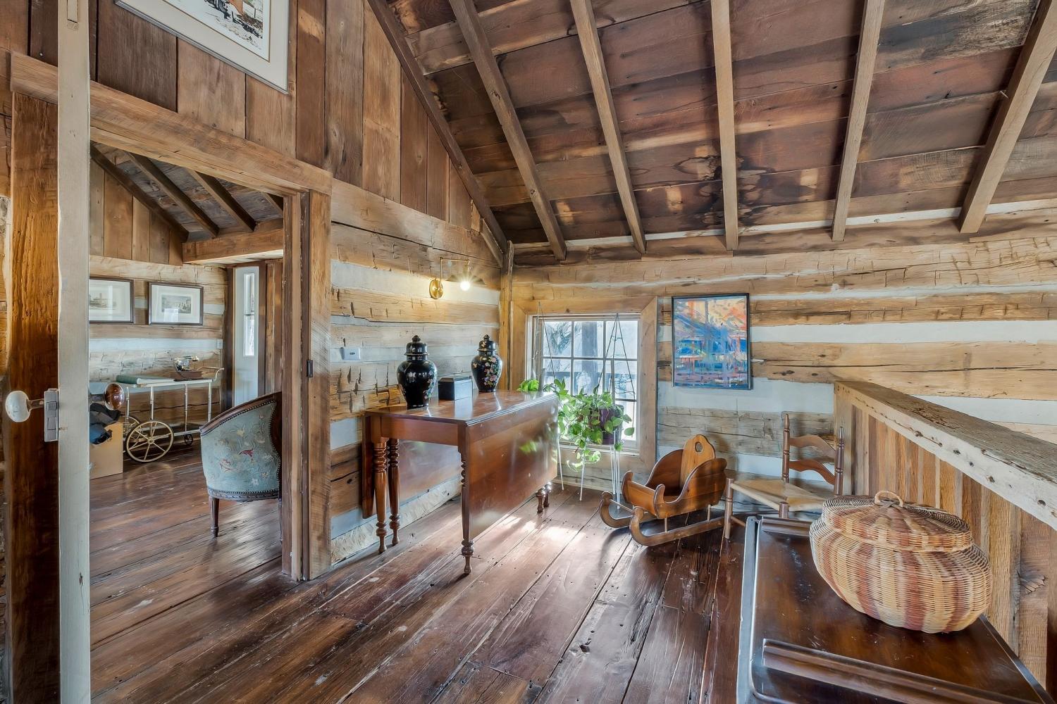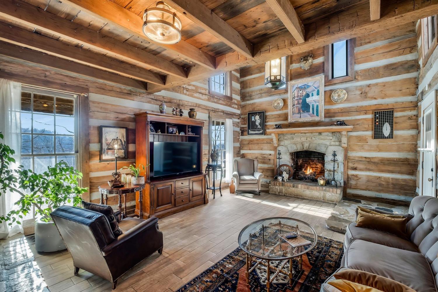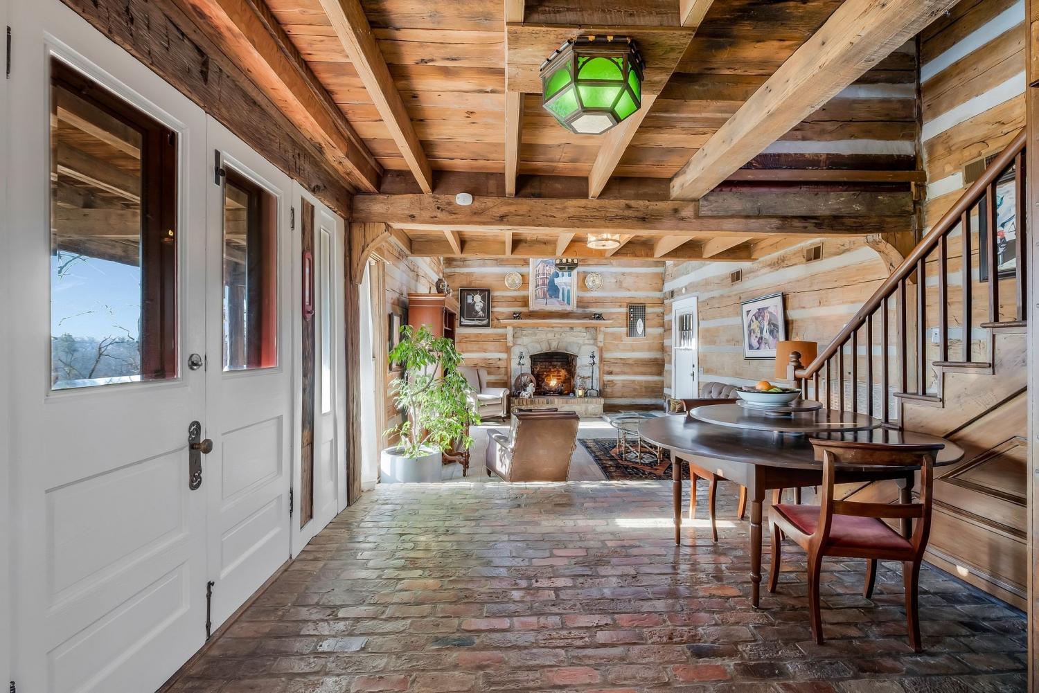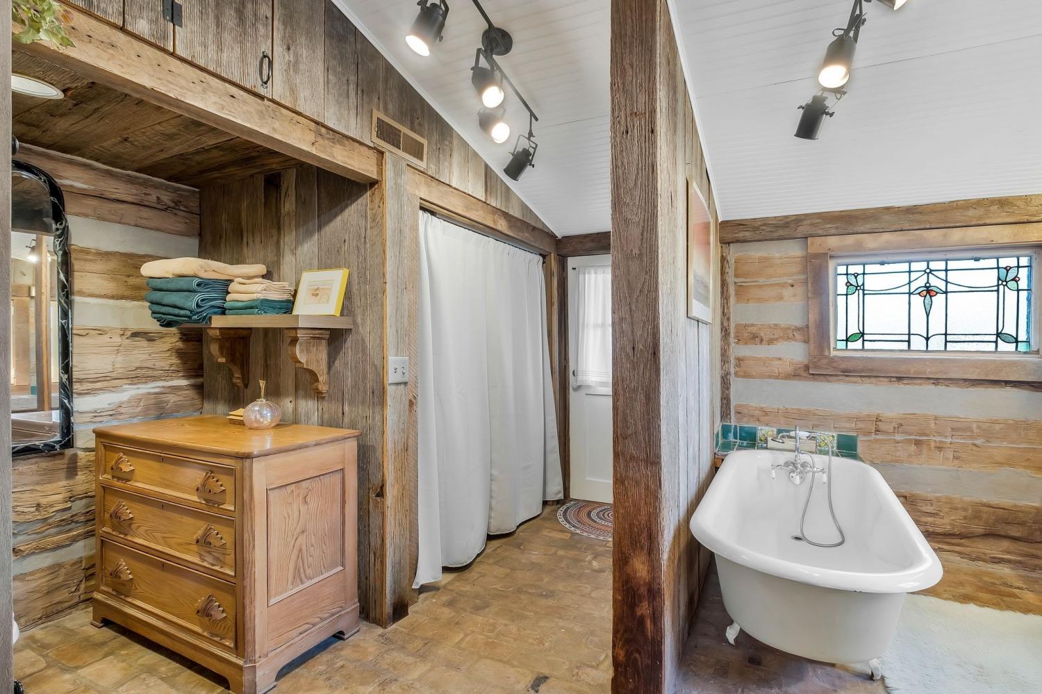 A creative masterpiece, this log home was designed and built in 1997 by famed local builder, Braxton Dixon. It is constructed of 19th century poplar logs from two different structues. The house has many architectural antique features, such as vintage leaded and stained glass windows, vintage doors, reclaimed wood and reclaimed brick floors. Dixon was a master stone mason, and the two wood burning fireplaces bear his signagure stone heart on the exterior chimneys. A gas line and gas log set was added to the living room fireplace for convenience. Two full-length covered porches overlook the 5.02 acre lot. A new 2-car carport, constructed from reclaimed wood, was added by the current owner, along with updated landscaping features and drainage improvements on the hill behind the home. The driveway from Long Hollow Pike has been repaved. A new standing seam insulated metal roof and new gutters and chimney caps were recentely installed. New HVAC was installed in 2021 by the previous owner. The primary bath features antique claw foot tub and handmade tiles from Mexico. Note that upstairs the third bedroom is entered through the second bedroom. Located just outside the Goodlettsville city limits, the home is in Sumner County and is five minutes from I-65 North, 20-25 minutes to Nashville. Garden & Gun magazine wrote a great piece about Braxton Dixon in 2013 (https://gardenandgun.com/feature/built-to-last-braxton-dixon/).