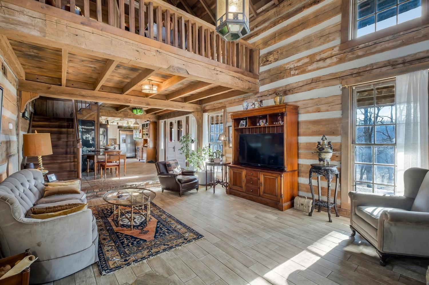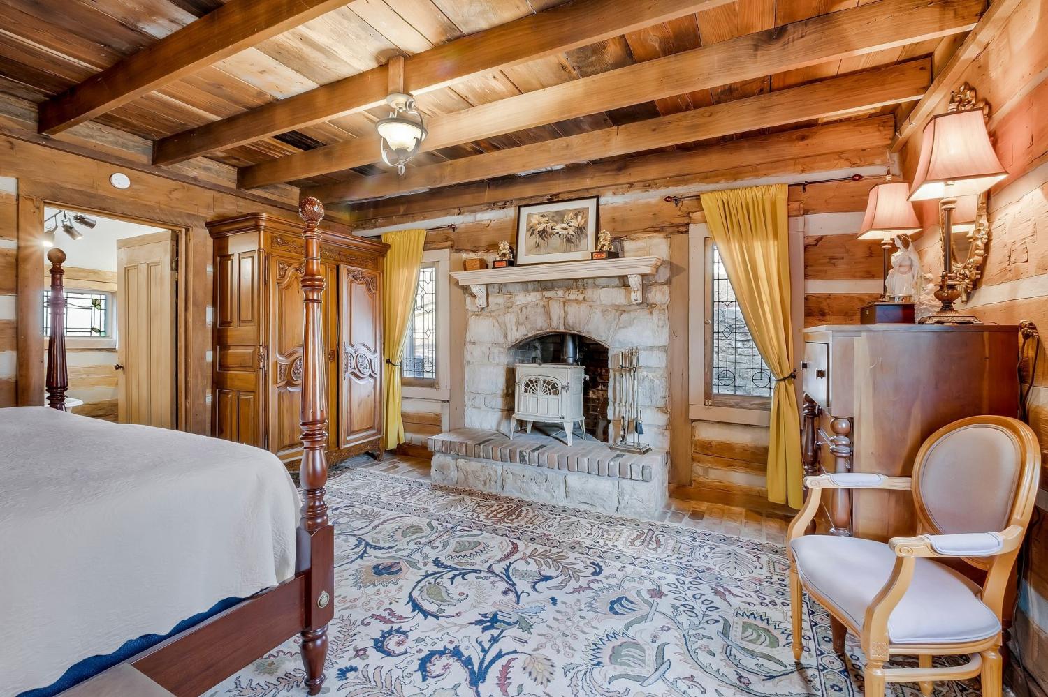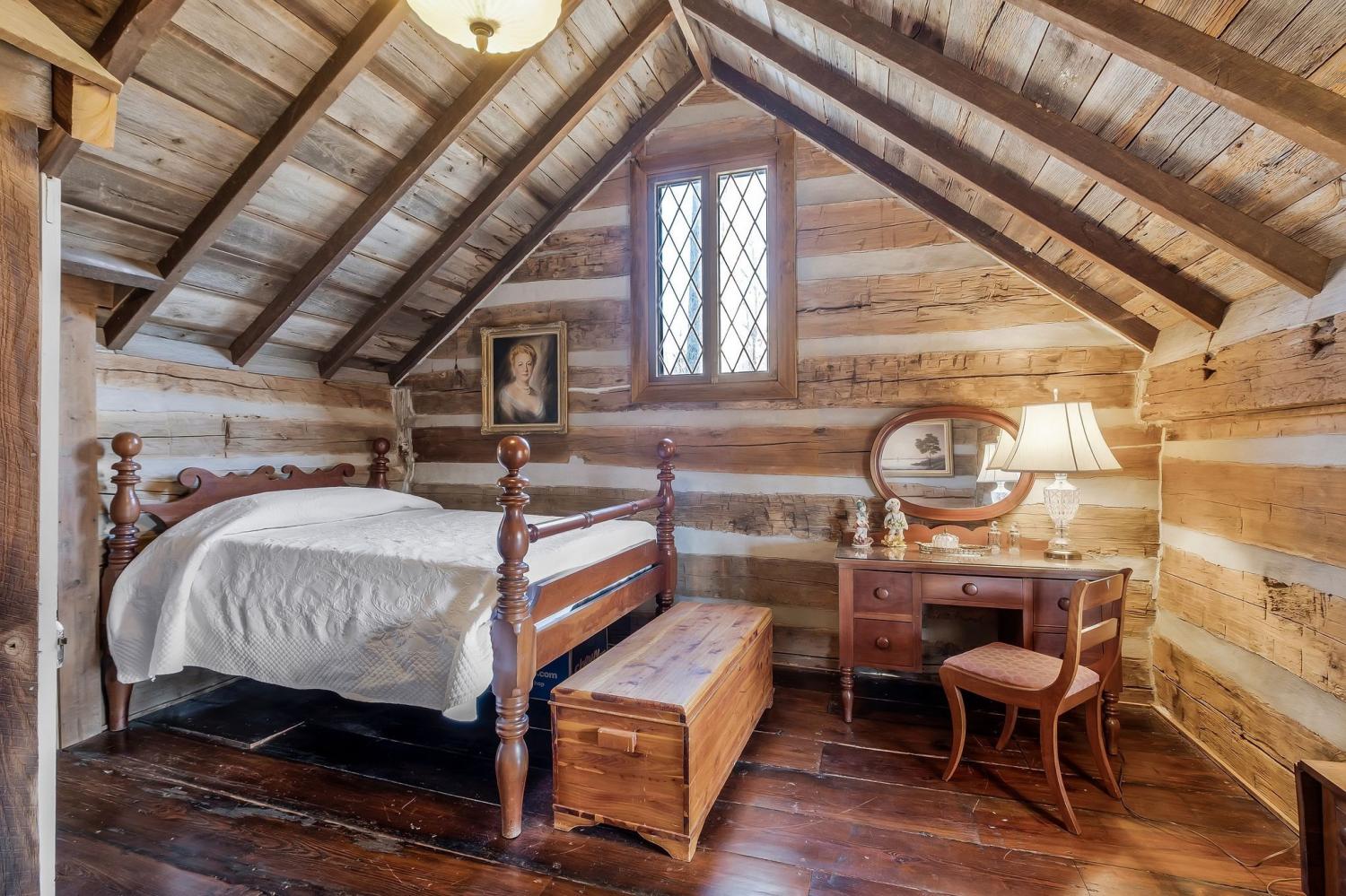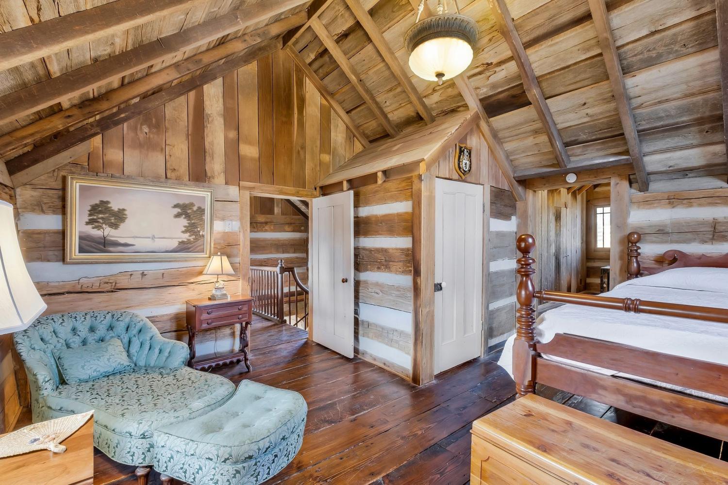 A creative masterpiece, this log home was designed and built in 1997 by famed local builder, Braxton Dixon. It is constructed of 19th century poplar logs from two different structues. The house has many architectural antique features, such as vintage leaded and stained glass windows, vintage doors, reclaimed wood and reclaimed brick floors. Dixon was a master stone mason, and the two wood burning fireplaces bear his signagure stone heart on the exterior chimneys. A gas line and gas log set was added to the living room fireplace for convenience. Two full-length covered porches overlook the 5.02 acre lot. A new 2-car carport, constructed from reclaimed wood, was added by the current owner, along with updated landscaping features and drainage improvements on the hill behind the home. The driveway from Long Hollow Pike has been repaved. A new standing seam insulated metal roof and new gutters and chimney caps were recentely installed. New HVAC was installed in 2021 by the previous owner. The primary bath features antique claw foot tub and handmade tiles from Mexico. Note that upstairs the third bedroom is entered through the second bedroom. Located just outside the Goodlettsville city limits, the home is in Sumner County and is five minutes from I-65 North, 20-25 minutes to Nashville. Garden & Gun magazine wrote a great piece about Braxton Dixon in 2013 (https://gardenandgun.com/feature/built-to-last-braxton-dixon/).