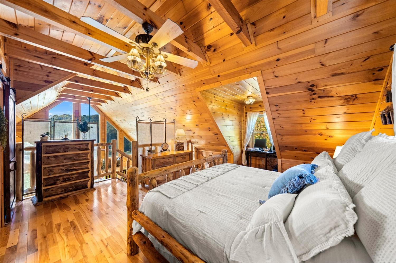 From Pigeon Forge Parkway light #6 take Pine Mountain Rd 2.6 miles. Right turn onto Little Cove Rd. Go approx. 1.5 mi and turn left onto Starwood Way. Home will be last home on right