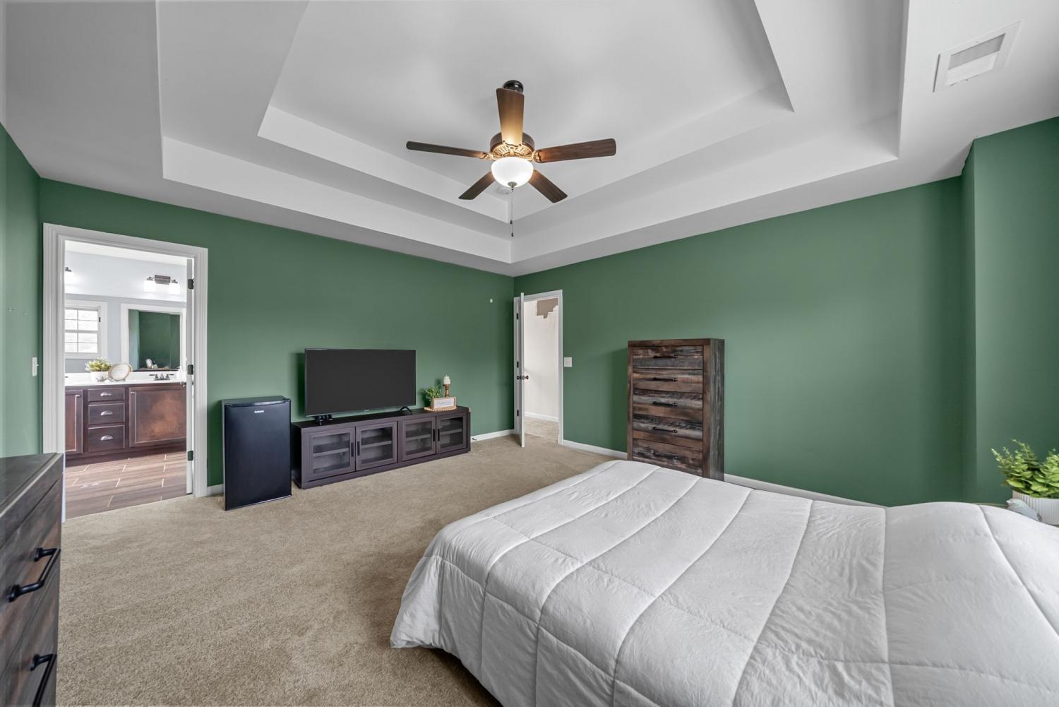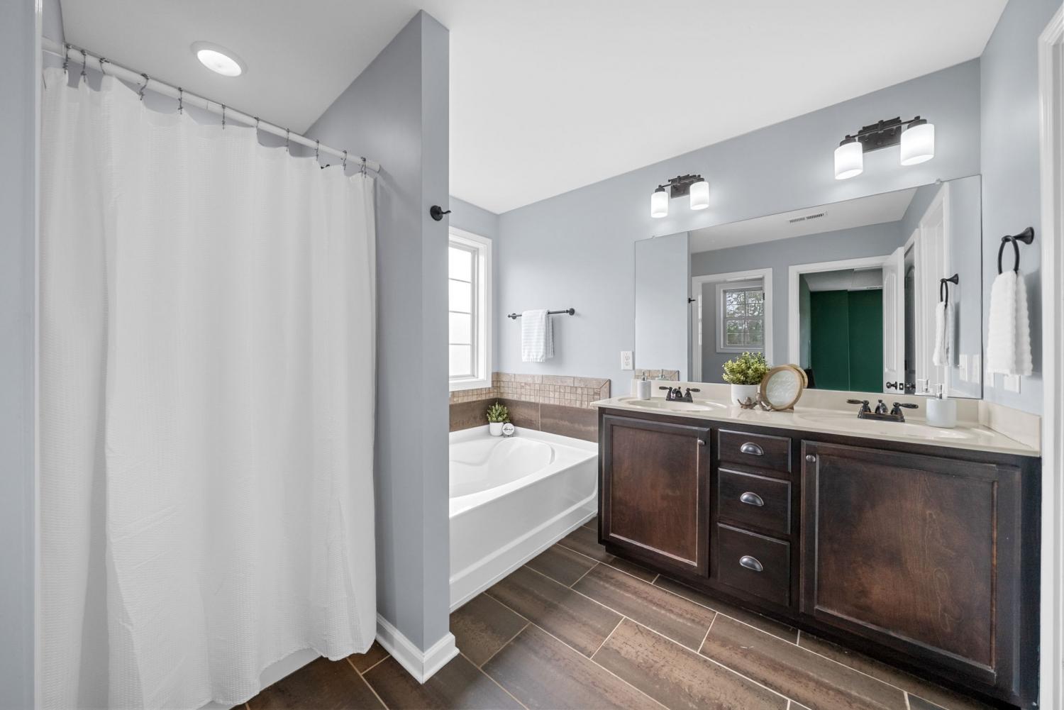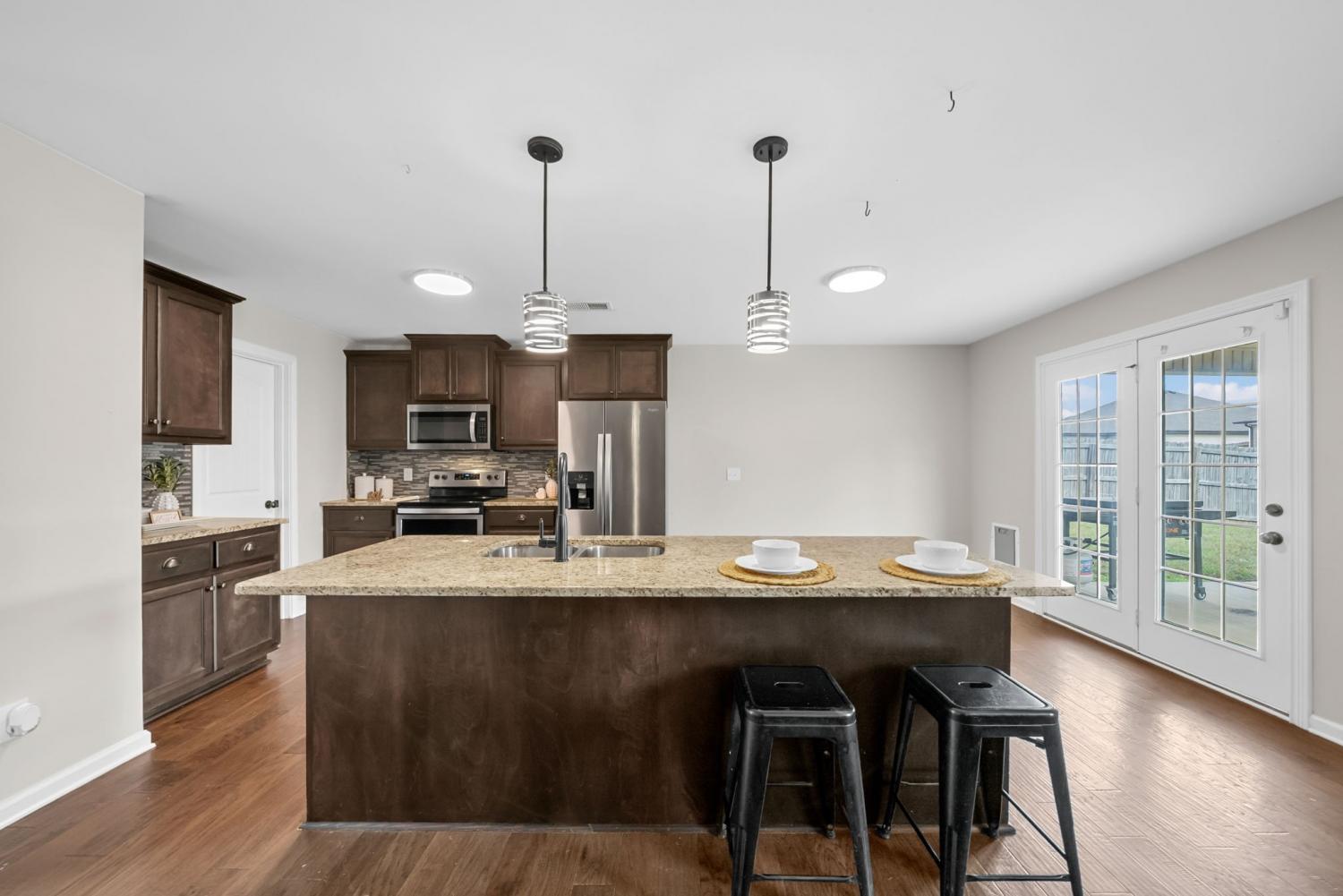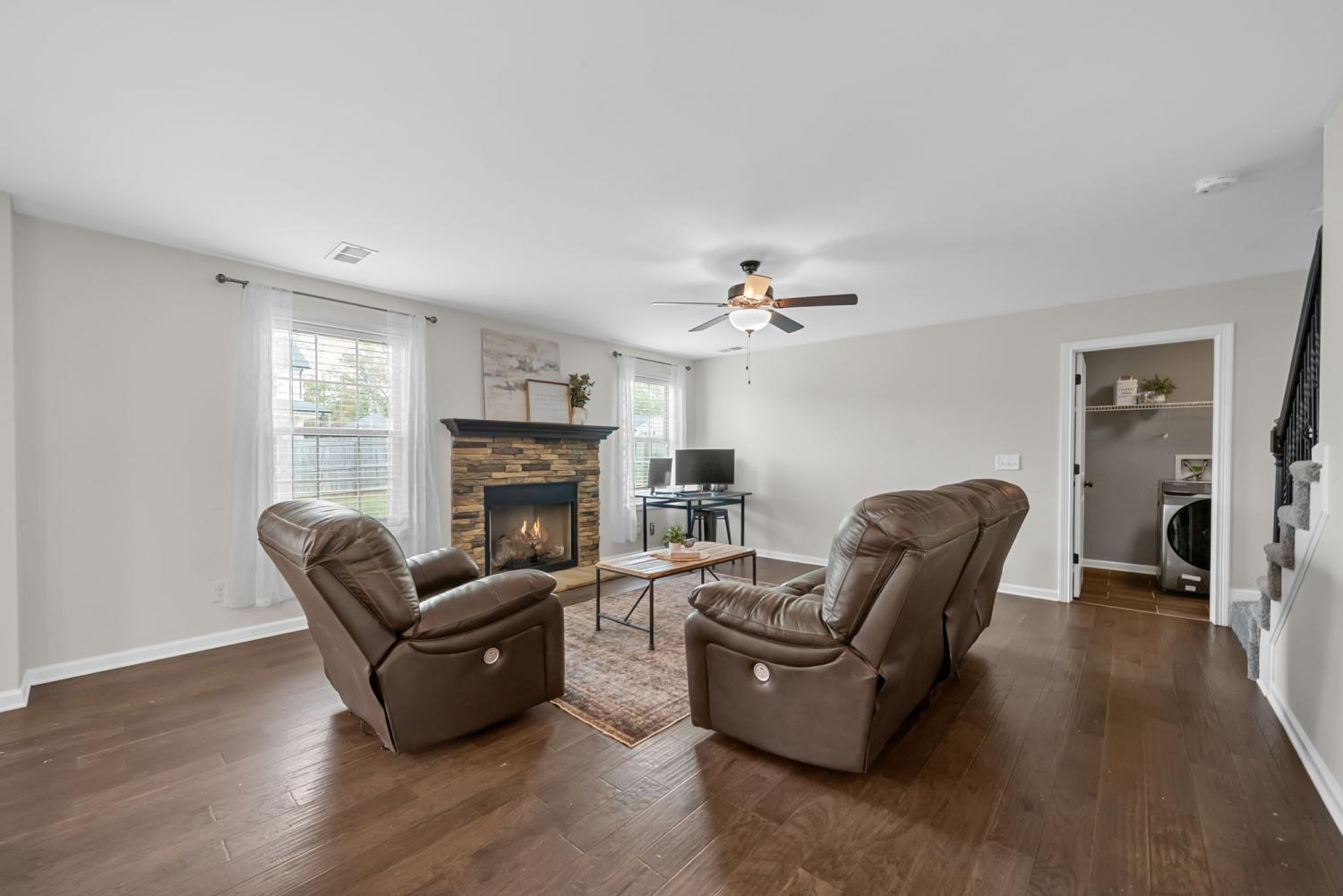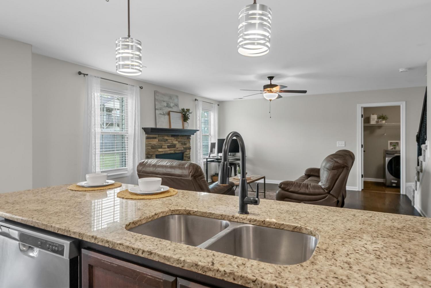 Beautiful 3-bedroom, 2.5-bath home in the desirable Liberty Park community featuring two playgrounds (walking distance to playground 1) and a neighborhood pond. This home offers LVP flooring on the main level, a spacious living area with a gas fireplace, and a modern kitchen with granite countertops, stainless steel appliances, a large island, and a roomy eat-in area. The master suite includes a large bath with double vanities, a soaking tub, and a walk-in closet. Enjoy outdoor living on the covered front porch or the covered concrete patio overlooking the privacy-fenced, flat backyard. Schedule your showing today!