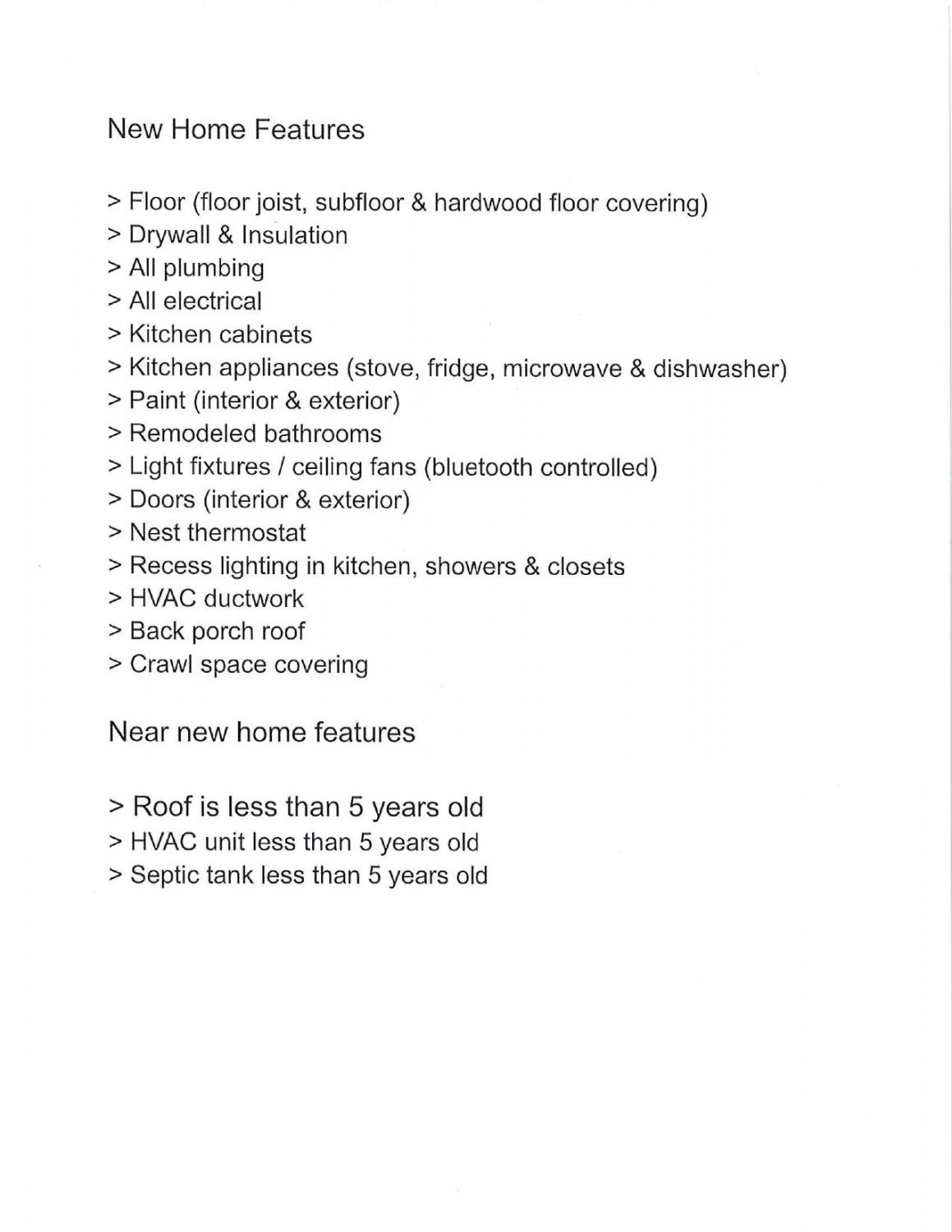 Near complete remodel on this home (New features list is in the pictures section). Year round spring behind the home feeds the neighbors pond. Less than 3 miles to town. Woods behind the home, open field across the road. Nearly same as a new home with new kitchen and bathrooms. City water added and septic tank/ field line replaced in last 5 years. 1 car attached carport with additional parking beside carport. Good size level side yard with shed. Property is on a straight, level section of Hwy 100 cutting down on road noise.