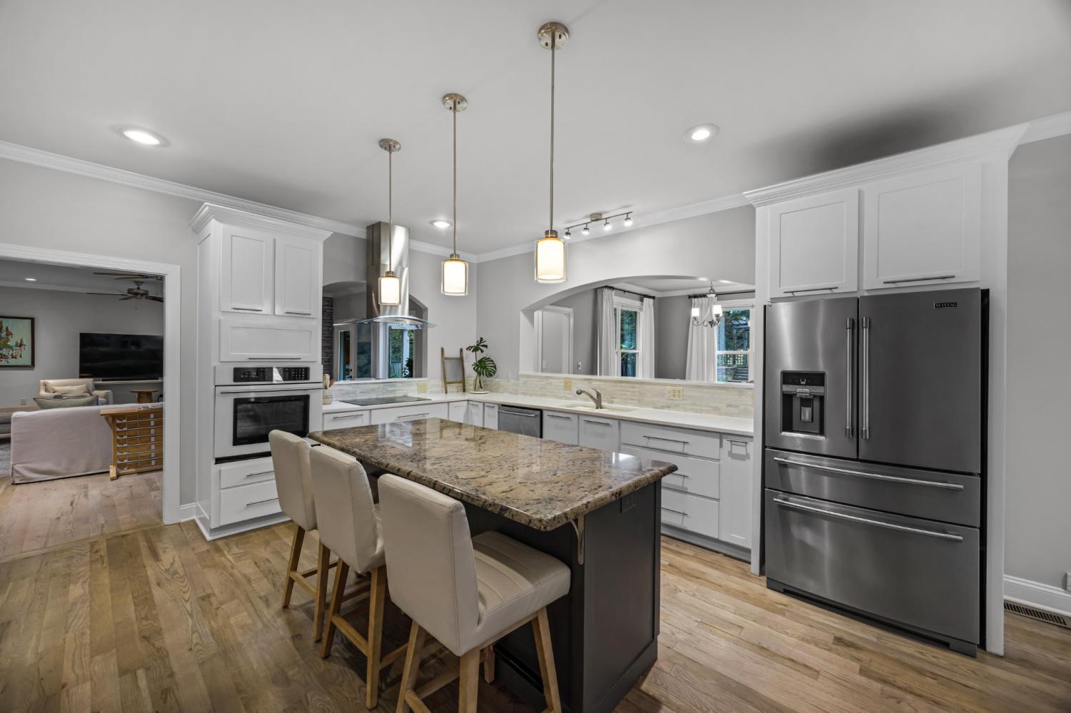 This spacious, updated and well-maintained home is ideally located in NW Jackson. It was completely renovated in 2009, creating a semi-open floor plan that provides defined rooms and open access through living spaces. Additional square footage was added, custom and upgraded finishes. The park-like, private backyard has a pool, porch, and patio areas perfect for entertaining. The property has custom iron gates + iron fencing. The first-floor features 9’ ceilings and ¾” hardwood flooring. The gourmet chef's kitchen has quartz and granite countertops+ breakfast/lounge area. The main floor primary suite includes a large closet w/custom wood shelving. The full 2nd floor has four bedrooms, 2 primary size with ensuites, large closets w/custom wood shelving and new carpet throughout the space. The media/bonus room offers ample recreation space and can be converted into a spacious mother-in-law suite. Adjacent to USJ and minutes from TCA.