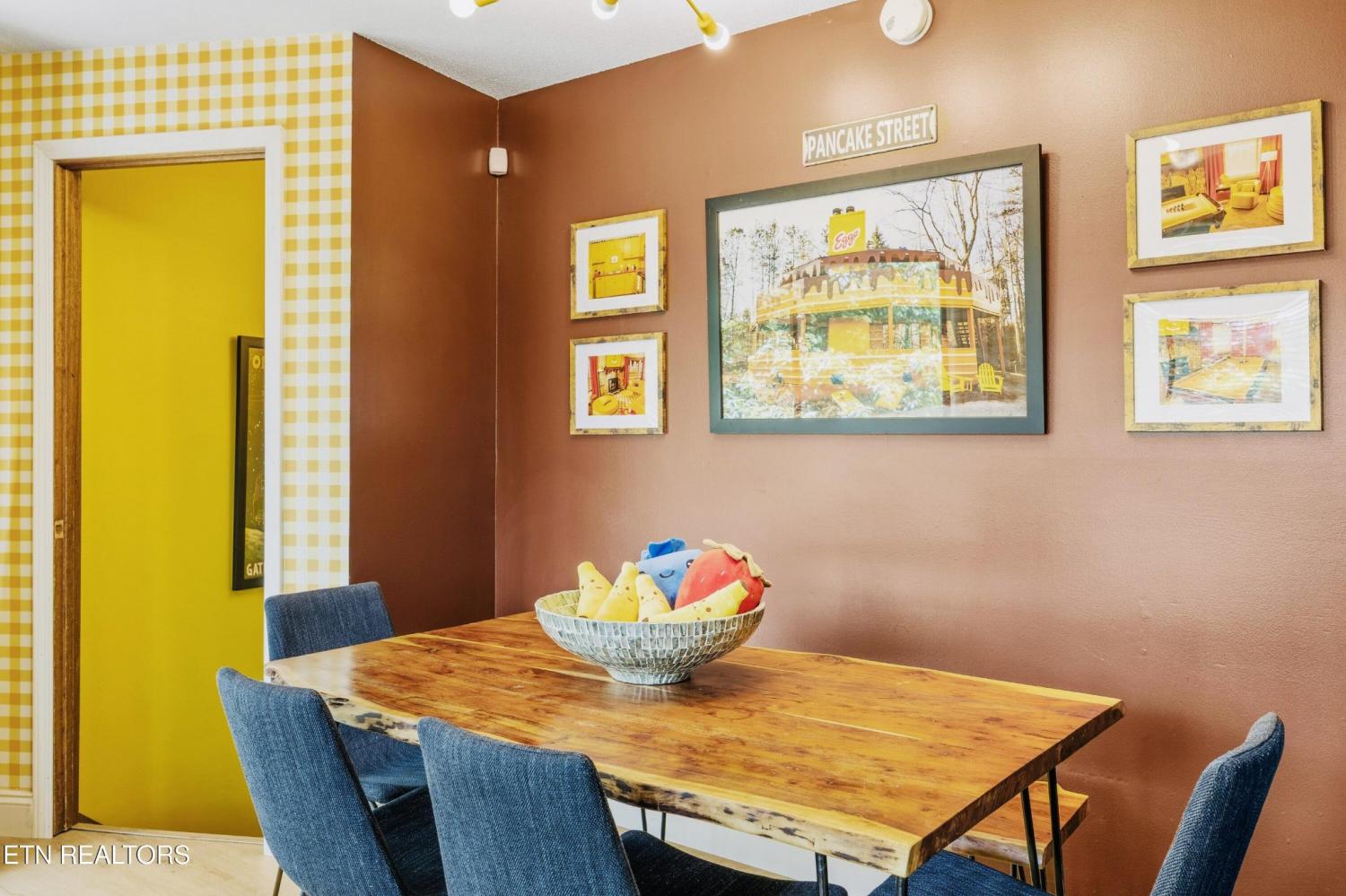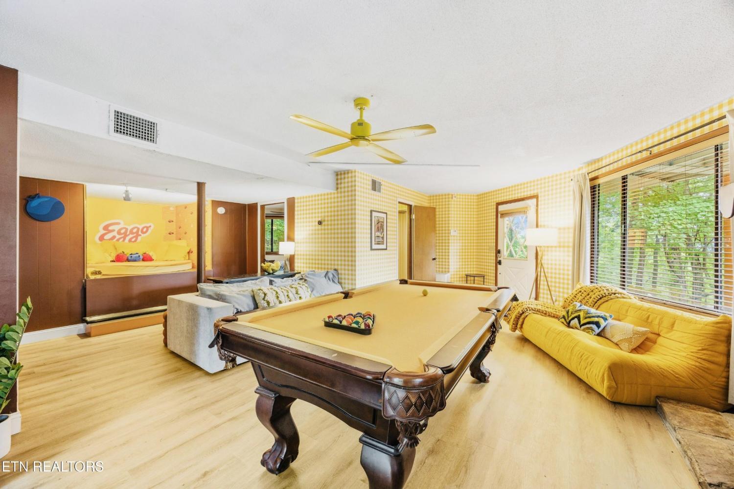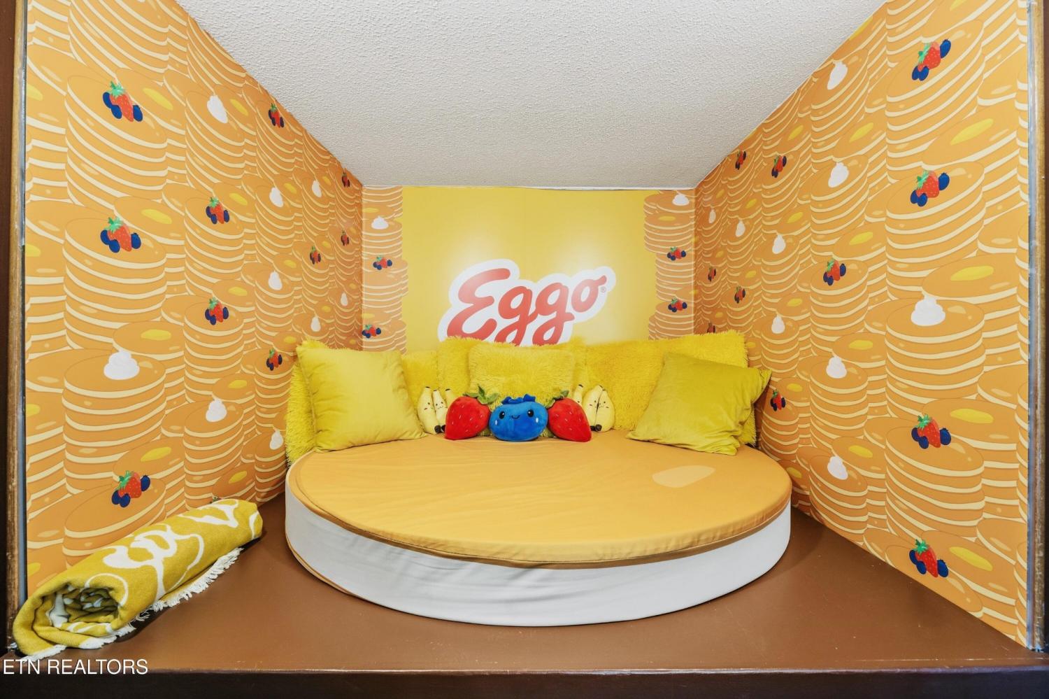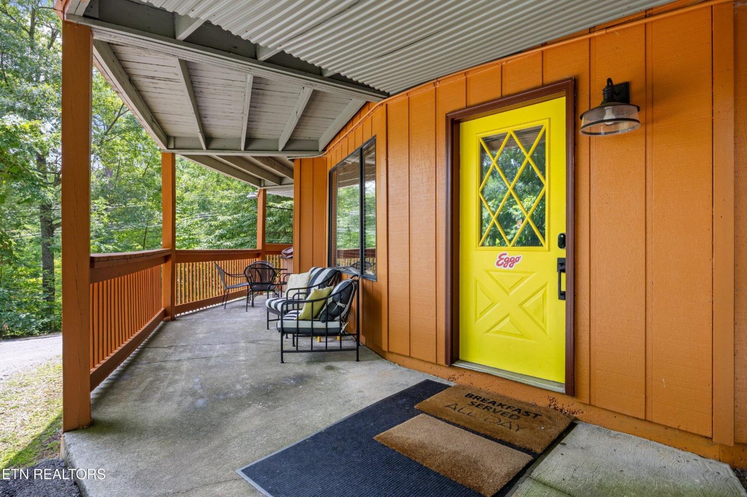 Welcome to the Pancake Eggo Cabin: a truly one-of-a-kind, pancake-themed retreat nestled in the heart of Gatlinburg. This unforgettable cabin looks like a towering stack of Eggo pancakes and offers a whimsical escape with mountain views and an unbeatable location. Whether you're looking for a fun-filled getaway or a top-performing short-term rental, this property delivers charm, character, and income. Inside, you'll find four cozy bedrooms, each uniquely decorated with pancake-inspired touches and their own private bathrooms, allowing comfortable accommodations for all your guests. The living area is bright and inviting, complete with a fireplace, Eggo-themed décor, and plenty of room to relax. The fully equipped kitchen features vibrant retro accents and maybe a variety of Eggos which makes every morning a delicious experience. The fun continues downstairs in the game room, where guests can enjoy a custom Eggo-yellow pool table, board games, and additional lounge space. Step outside to the spacious wraparound deck, soak in the hot tub under the stars, or gather around the firepit to enjoy the peaceful mountain surroundings. Located in Chalet Village, the cabin is just minutes from Ober Gatlinburg, downtown shops and attractions, and the entrance to the Great Smoky Mountains National Park. The Pancake Eggo Cabin is more than a place to stay—it's a destination in itself, blending nostalgia, creativity, and comfort for a truly memorable Smoky Mountain experience.