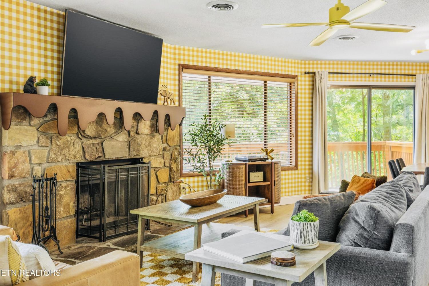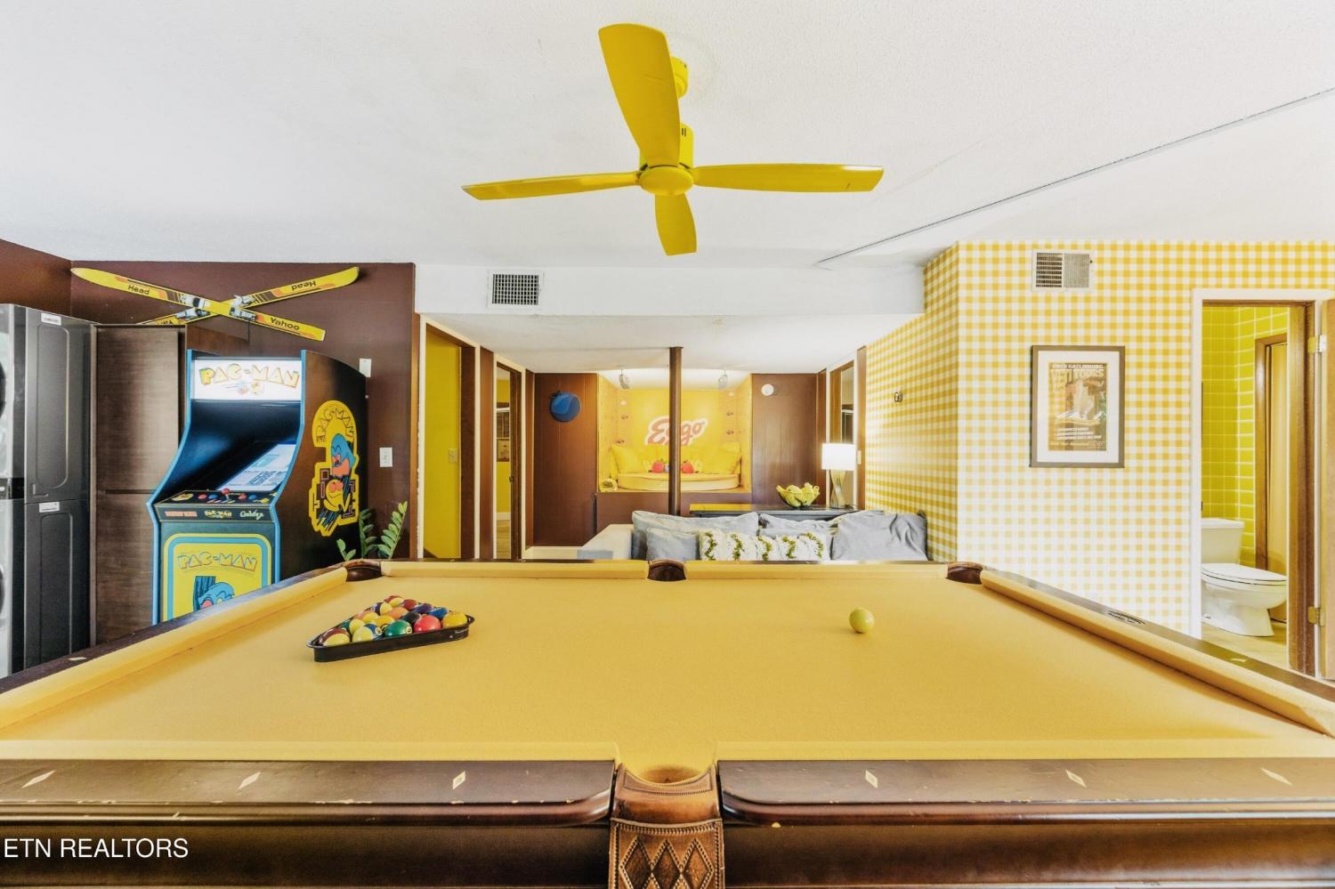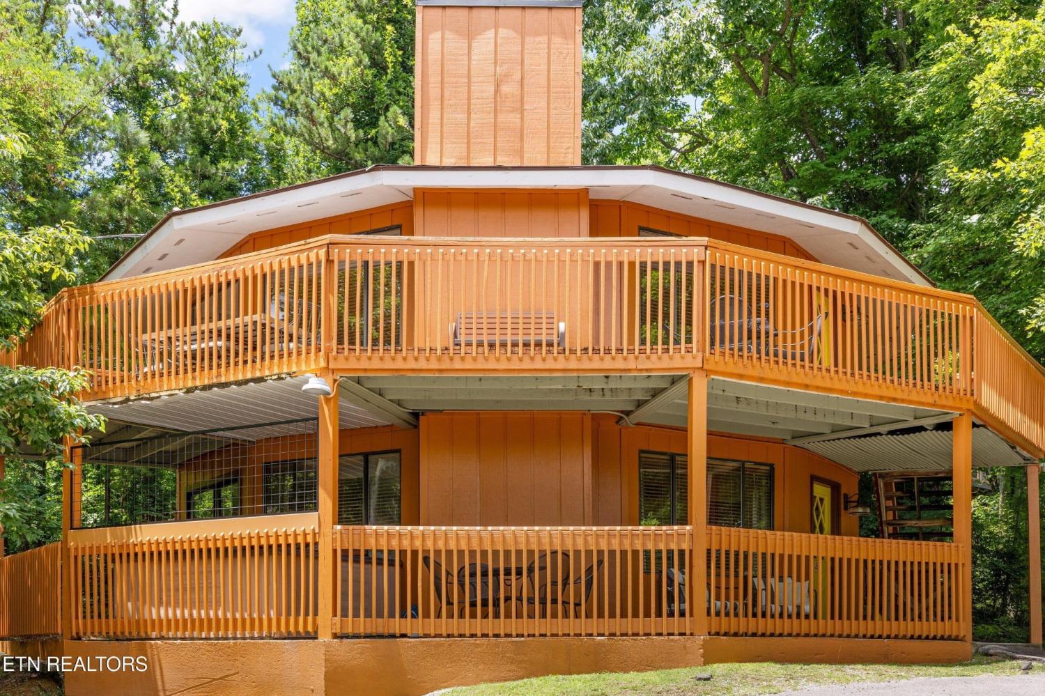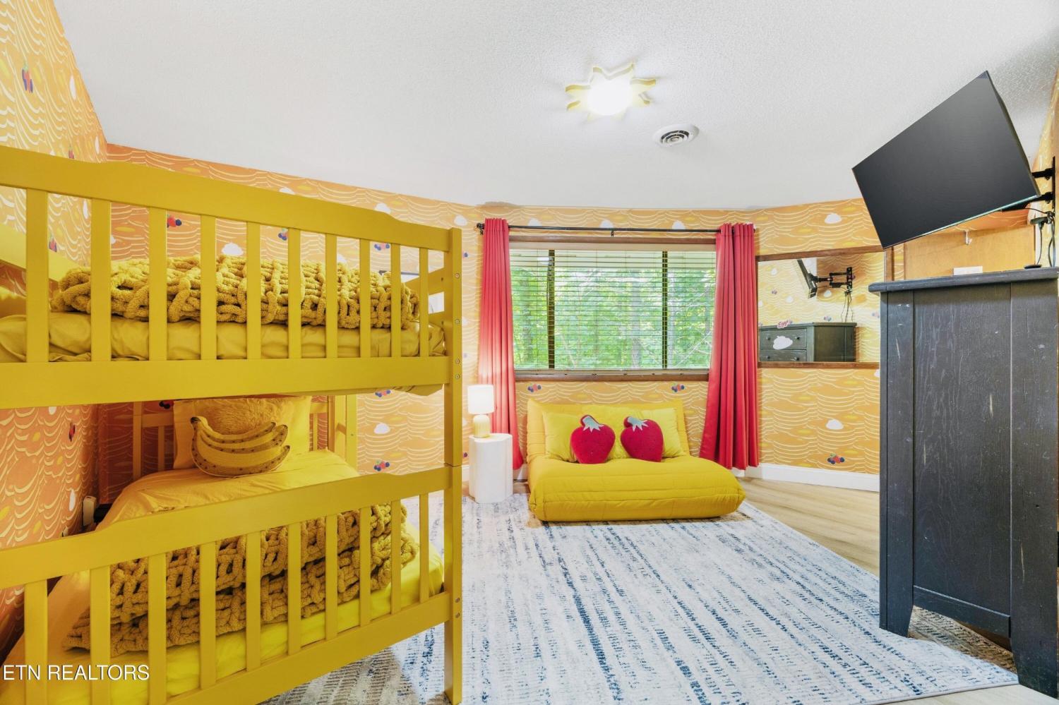 Welcome to the Pancake Eggo Cabin: a truly one-of-a-kind, pancake-themed retreat nestled in the heart of Gatlinburg. This unforgettable cabin looks like a towering stack of Eggo pancakes and offers a whimsical escape with mountain views and an unbeatable location. Whether you're looking for a fun-filled getaway or a top-performing short-term rental, this property delivers charm, character, and income. Inside, you'll find four cozy bedrooms, each uniquely decorated with pancake-inspired touches and their own private bathrooms, allowing comfortable accommodations for all your guests. The living area is bright and inviting, complete with a fireplace, Eggo-themed décor, and plenty of room to relax. The fully equipped kitchen features vibrant retro accents and maybe a variety of Eggos which makes every morning a delicious experience. The fun continues downstairs in the game room, where guests can enjoy a custom Eggo-yellow pool table, board games, and additional lounge space. Step outside to the spacious wraparound deck, soak in the hot tub under the stars, or gather around the firepit to enjoy the peaceful mountain surroundings. Located in Chalet Village, the cabin is just minutes from Ober Gatlinburg, downtown shops and attractions, and the entrance to the Great Smoky Mountains National Park. The Pancake Eggo Cabin is more than a place to stay—it's a destination in itself, blending nostalgia, creativity, and comfort for a truly memorable Smoky Mountain experience.