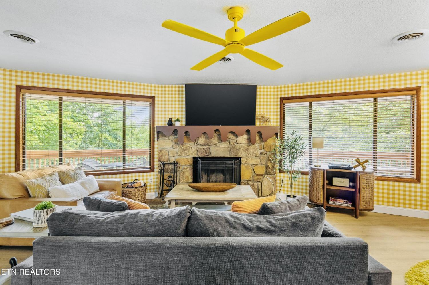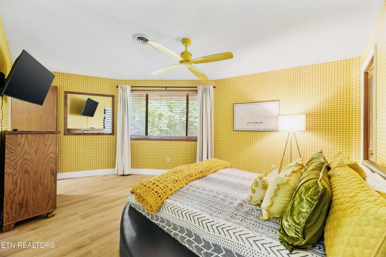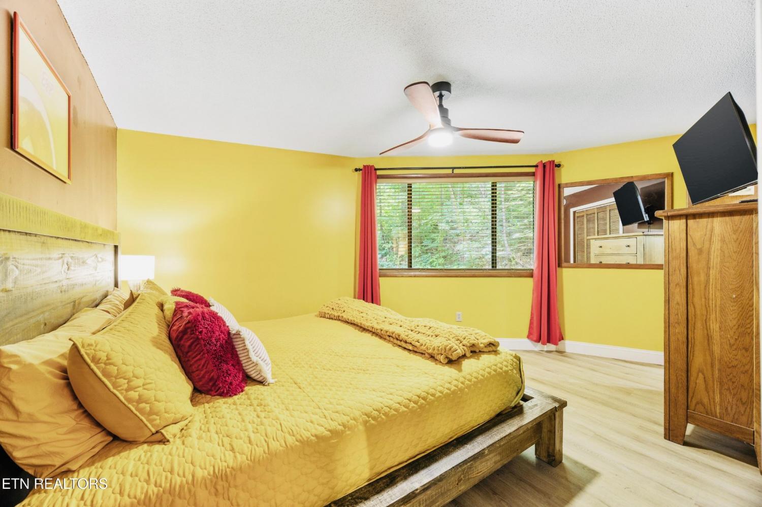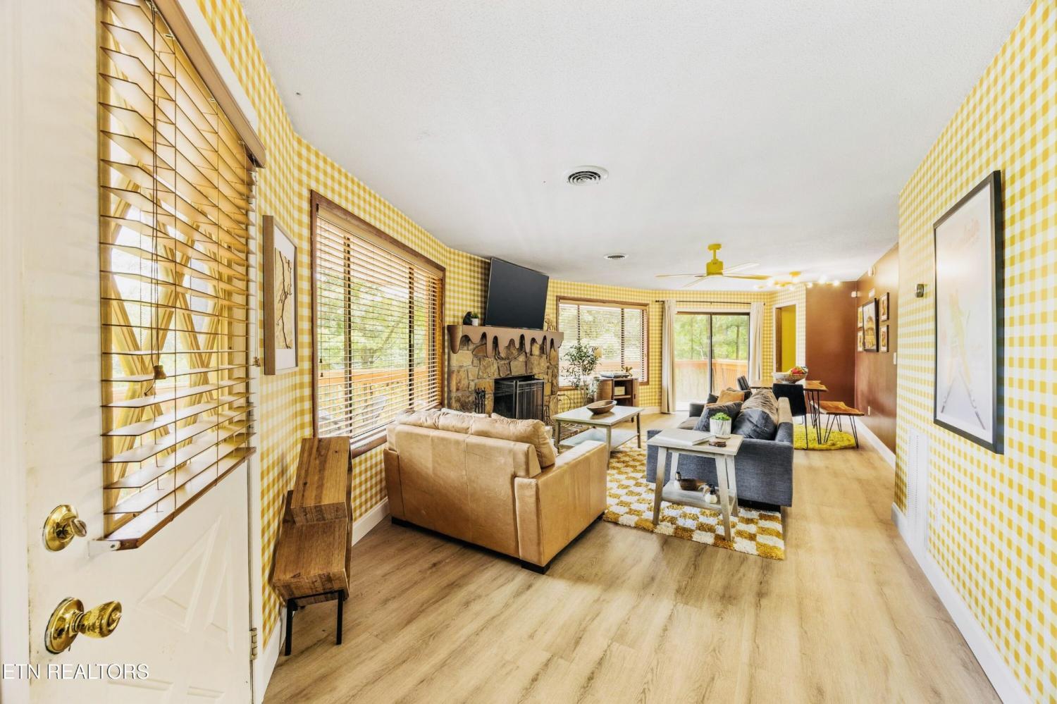 Welcome to the Pancake Eggo Cabin: a truly one-of-a-kind, pancake-themed retreat nestled in the heart of Gatlinburg. This unforgettable cabin looks like a towering stack of Eggo pancakes and offers a whimsical escape with mountain views and an unbeatable location. Whether you're looking for a fun-filled getaway or a top-performing short-term rental, this property delivers charm, character, and income. Inside, you'll find four cozy bedrooms, each uniquely decorated with pancake-inspired touches and their own private bathrooms, allowing comfortable accommodations for all your guests. The living area is bright and inviting, complete with a fireplace, Eggo-themed décor, and plenty of room to relax. The fully equipped kitchen features vibrant retro accents and maybe a variety of Eggos which makes every morning a delicious experience. The fun continues downstairs in the game room, where guests can enjoy a custom Eggo-yellow pool table, board games, and additional lounge space. Step outside to the spacious wraparound deck, soak in the hot tub under the stars, or gather around the firepit to enjoy the peaceful mountain surroundings. Located in Chalet Village, the cabin is just minutes from Ober Gatlinburg, downtown shops and attractions, and the entrance to the Great Smoky Mountains National Park. The Pancake Eggo Cabin is more than a place to stay—it's a destination in itself, blending nostalgia, creativity, and comfort for a truly memorable Smoky Mountain experience.