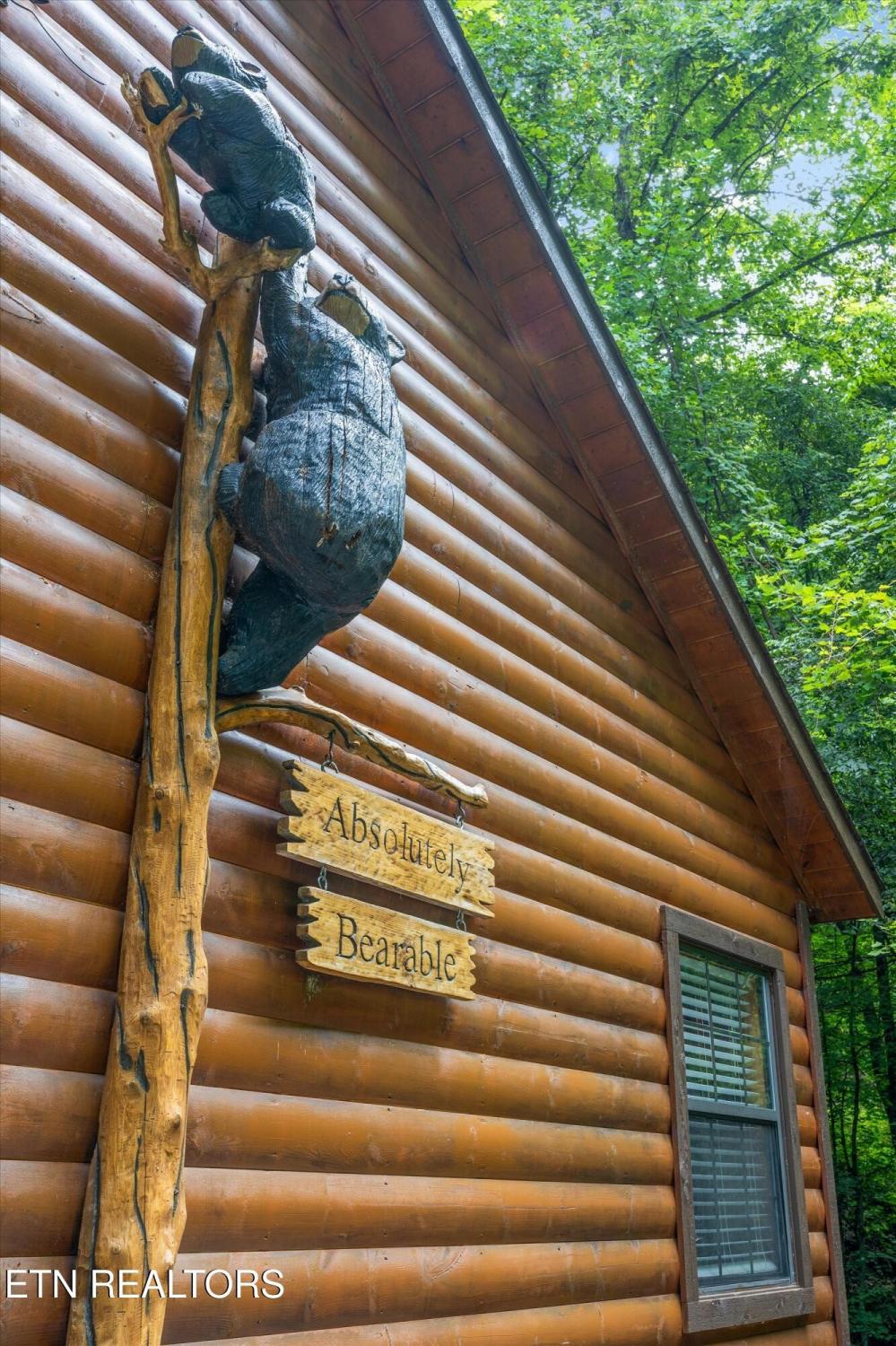 Welcome to Absolutely Bearable — the charming bear-themed cabin in the Sky Harbor subdivision that's as cute as its name! From the moment you arrive, you'll be greeted by the wooden bears peeking over the roof at the entrance and the two more keeping watch along the side of the cabin. Freshly graveled parking makes for an easy arrival a long with seeing the recently stained cabin and deck, and once inside, you'll notice the kitchen and bathroom/laundry room have brand new flooring for a fresh, updated feel. Perfect for couples and honeymooners, this cozy getaway is filled with personality. Challenge your sweetheart to a game of pool with the 'Rat Pack' looking on from their spot above the table — it's a playful touch that guests adore. Out back, the private deck is all about relaxation, featuring a bubbling hot tub surrounded by nothing but peaceful wooded views. Whether you're here for rental revenue, fun, or just a quiet escape, Absolutely Bearable is the kind of cabin that makes you smile from the moment you arrive.