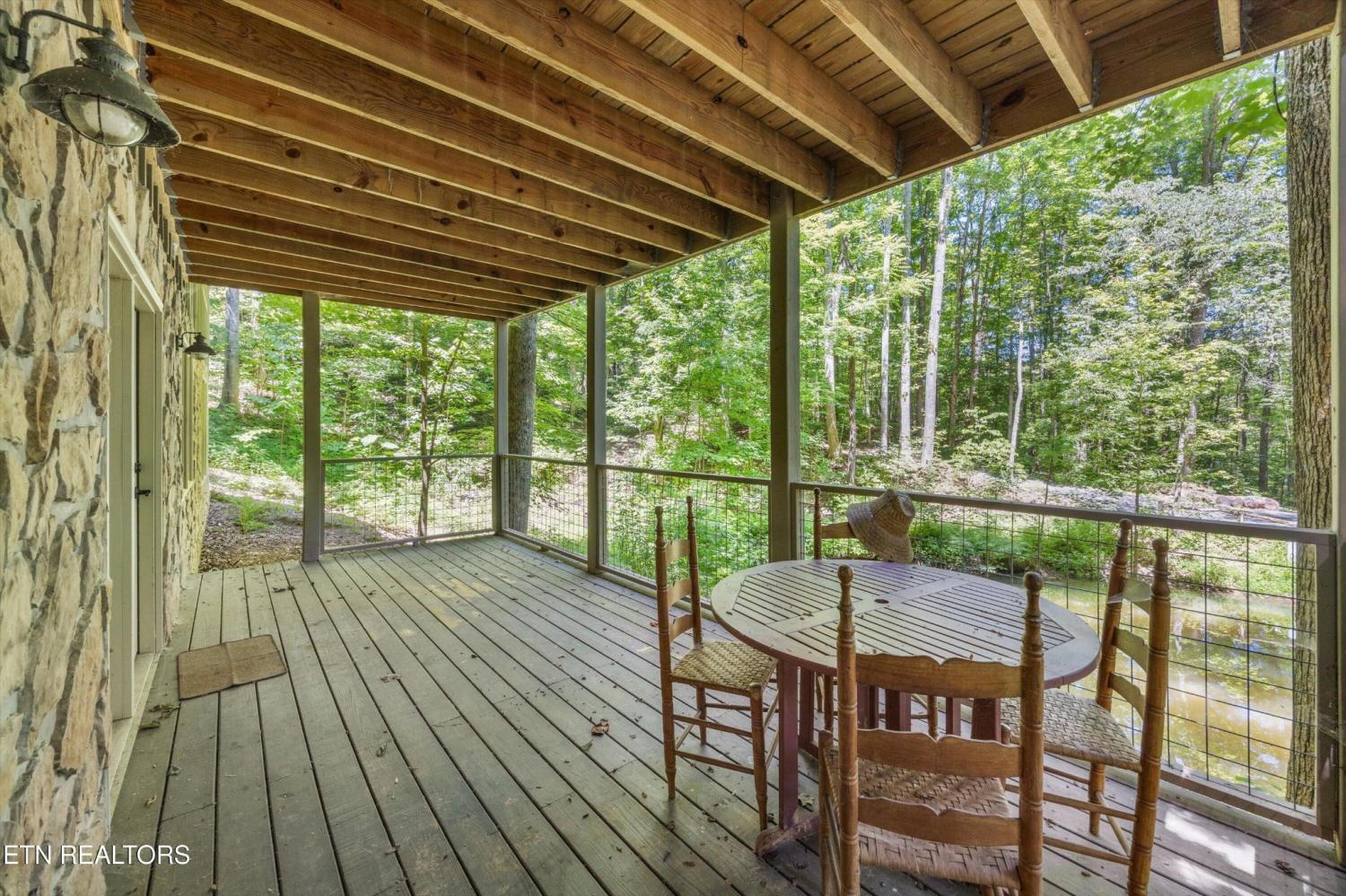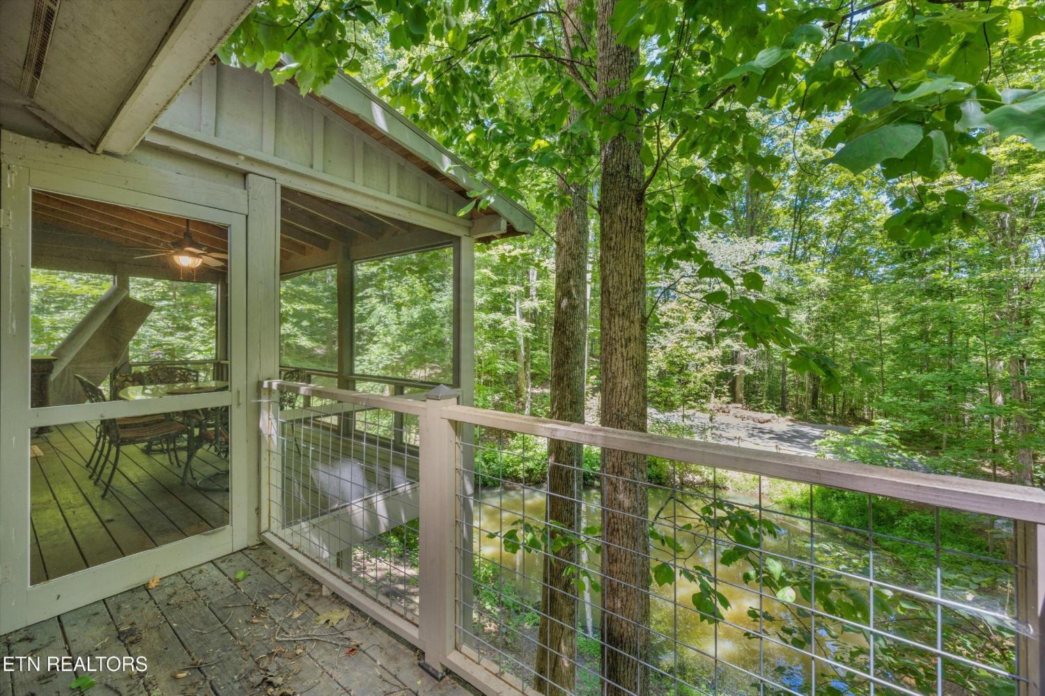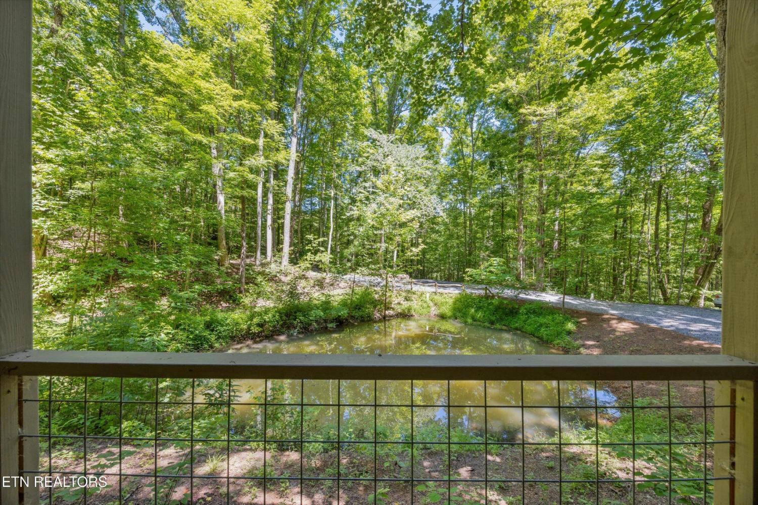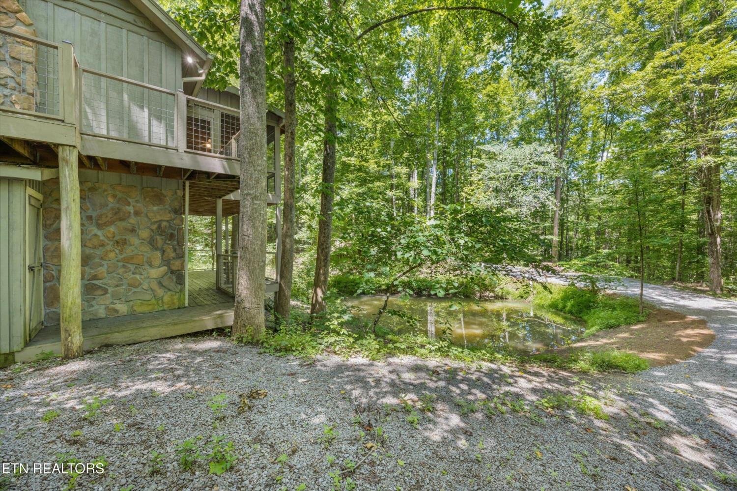 Tucked inside a gated community with a stunning entrance and surrounded by peaceful woods, this 1.37-acre private retreat is a hidden gem just minutes from shopping, dining, and entertainment yet blissfully removed from the hustle of tourism. The setting feels like a nature preserve, with wildlife all around and a natural pond out front that sets the perfect backdrop for evening relaxation while listening to the chorus of frogs. Take in the view from two expansive porches that overlook the water—ideal for morning coffee or unwinding with a glass of wine. Inside, this turn-key home has been fully updated and expanded in 2022 to provide even more space for guests. It features an open floor plan, two primary suites, and bedrooms on both levels. Downstairs offers a second family room for movie nights or game time, and the kitchen is a dream with granite countertops, ample storage, and new stainless appliances included. Best of all? All furnishings stay, making your move-in seamless. The community itself is a rare find, offering over 100 acres of shared space including a creek, barn, open meadows, wooded areas, and a pavilion with a fireplace—perfect for gatherings or peaceful afternoons outdoors. Other perks include underground utilities and HOA-covered water and sewer. Whether you're looking for a primary home or a second home to escape to, this property checks every box. Please note: no overnight rentals allowed, preserving the peace and privacy that make this place so special.