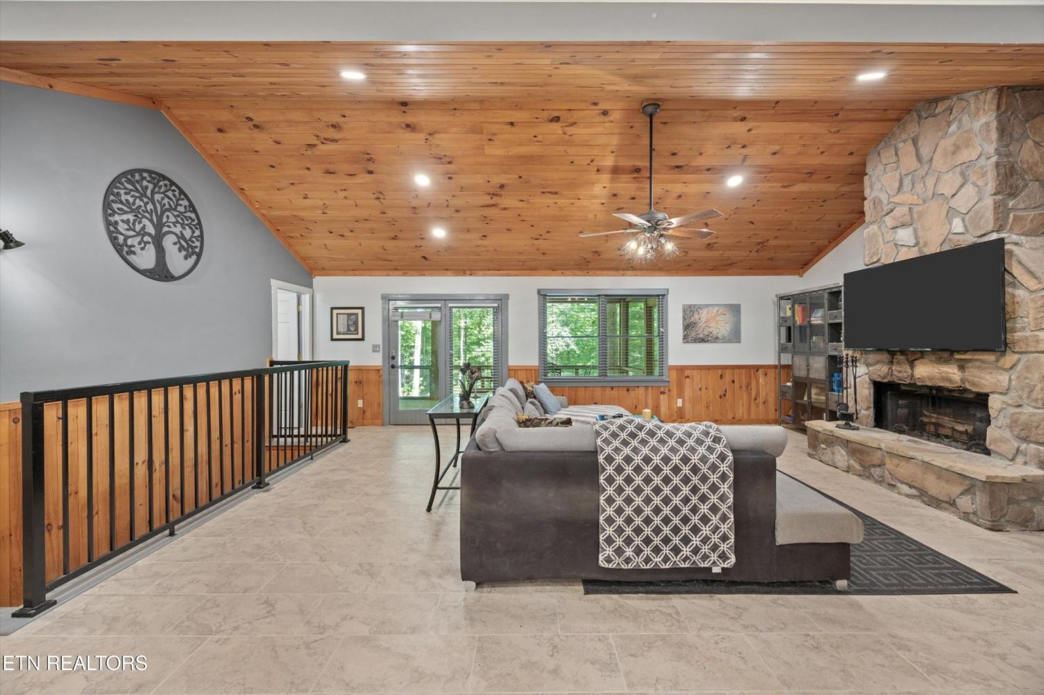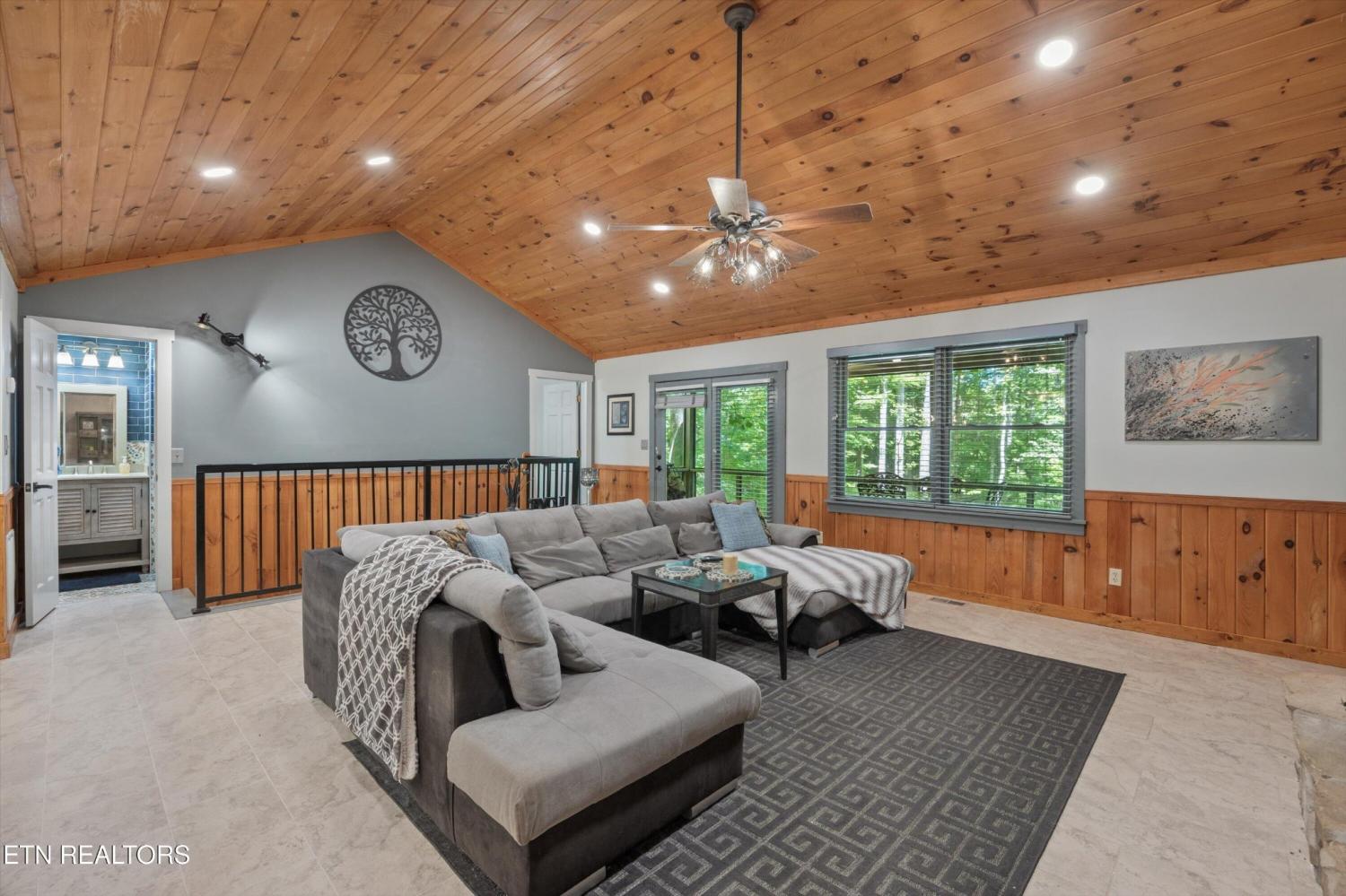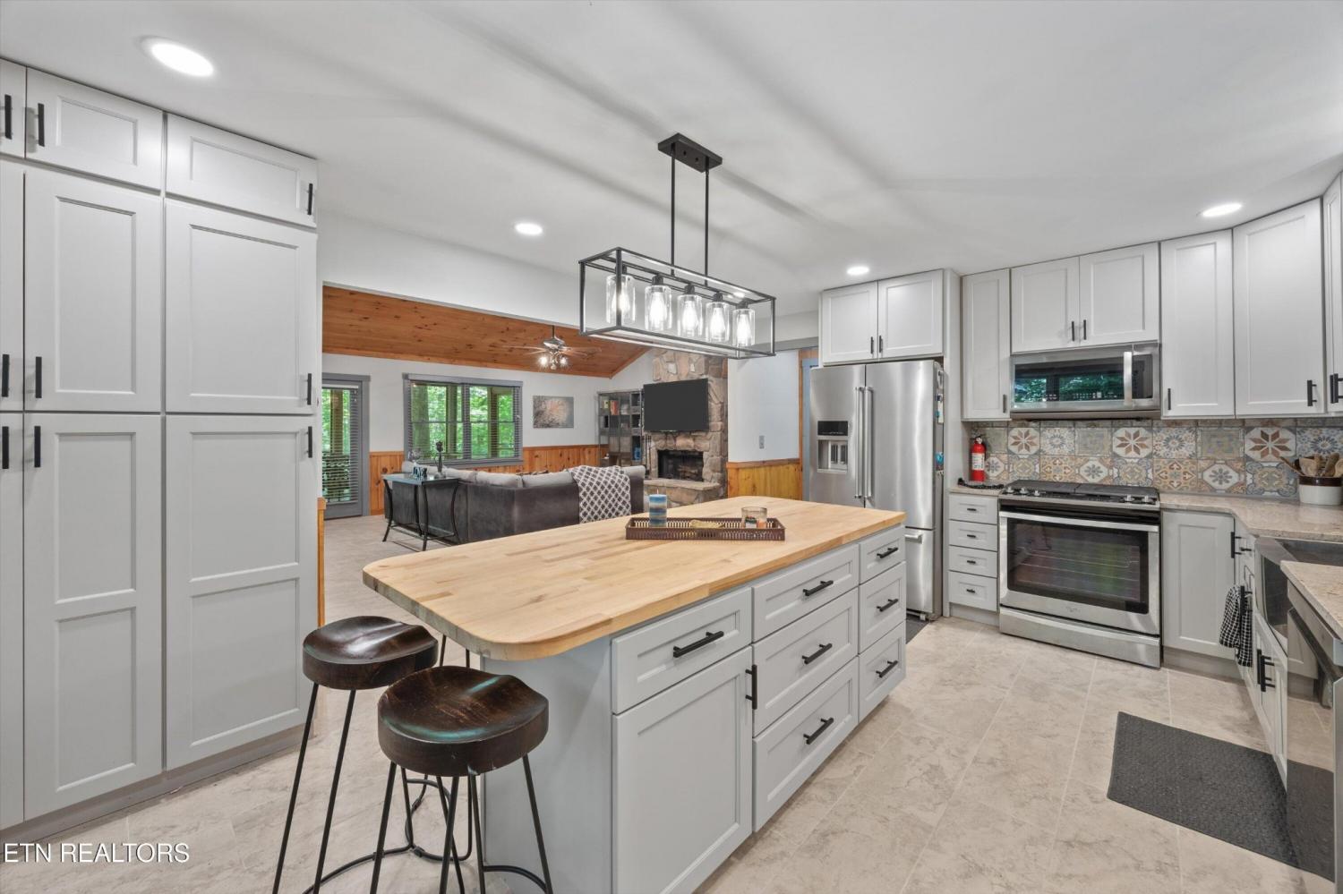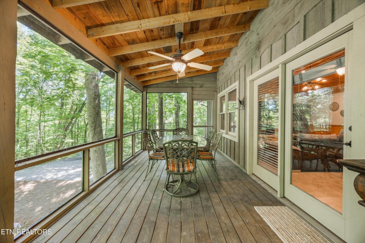 Tucked inside a gated community with a stunning entrance and surrounded by peaceful woods, this 1.37-acre private retreat is a hidden gem just minutes from shopping, dining, and entertainment yet blissfully removed from the hustle of tourism. The setting feels like a nature preserve, with wildlife all around and a natural pond out front that sets the perfect backdrop for evening relaxation while listening to the chorus of frogs. Take in the view from two expansive porches that overlook the water—ideal for morning coffee or unwinding with a glass of wine. Inside, this turn-key home has been fully updated and expanded in 2022 to provide even more space for guests. It features an open floor plan, two primary suites, and bedrooms on both levels. Downstairs offers a second family room for movie nights or game time, and the kitchen is a dream with granite countertops, ample storage, and new stainless appliances included. Best of all? All furnishings stay, making your move-in seamless. The community itself is a rare find, offering over 100 acres of shared space including a creek, barn, open meadows, wooded areas, and a pavilion with a fireplace—perfect for gatherings or peaceful afternoons outdoors. Other perks include underground utilities and HOA-covered water and sewer. Whether you're looking for a primary home or a second home to escape to, this property checks every box. Please note: no overnight rentals allowed, preserving the peace and privacy that make this place so special.