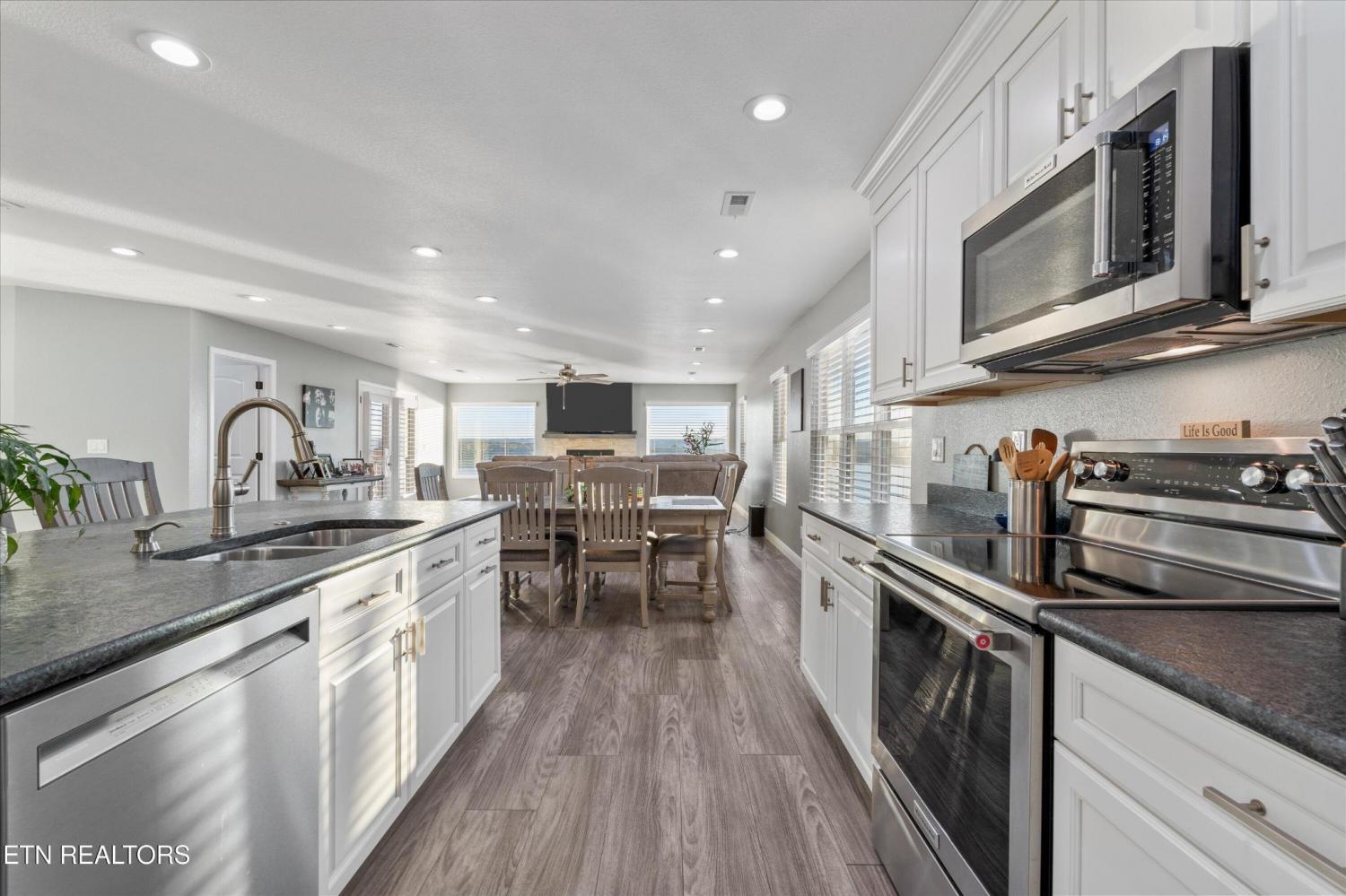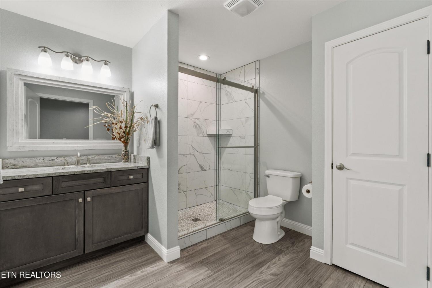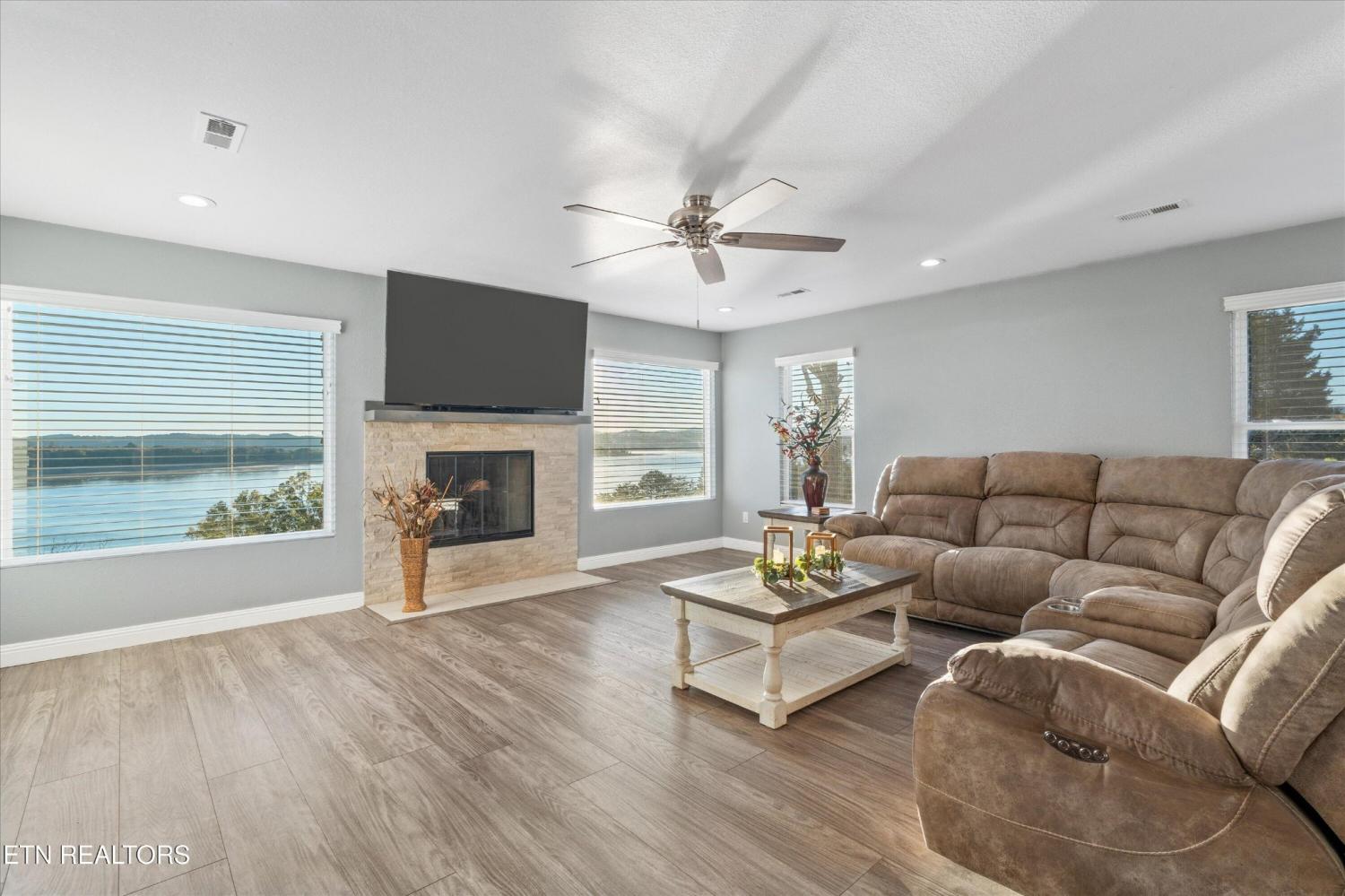 Looking for the ultimate lake life setup? This practically brand-new home on Lake Douglas checks every box and then some! Step inside to discover all main-level living with an open floor plan designed for easy entertaining and relaxing lake days. The kitchen features gorgeous leathered granite countertops, a walk-in pantry, and plenty of space for gathering around the island with friends. Lake views from every room of the house! The spacious primary suite feels like a retreat, complete with a massive tile walk-in shower and a soaking tub that's just begging for bubble baths after a day on the water. Downstairs, you'll find a bright, high-ceilinged basement with its own living area perfect for guests, in-laws, or even a second living quarters. Outside, you'll love the Hardie board siding, the community dock and boat ramp, and the fact that this lot is TVA dockable a rare find! You can even drive down to the water's edge on the property, which makes it ideal for watching fireworks or sunset picnics by the shore. And the extras? A top-of-the-line swim spa that's negotiable (you'll fall in love with it), and if you're ready for the full lake life package, the boat is for sale too! With low HOA fees, friendly neighbors, and year-round water (that just shrinks a little in winter), this is the kind of place that makes every weekend feel like a getaway.