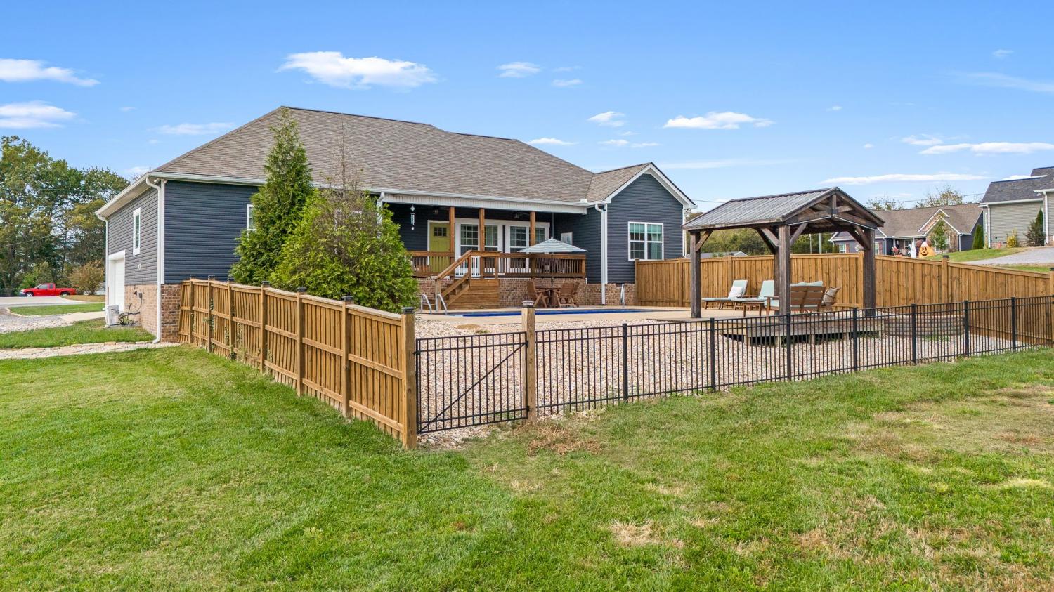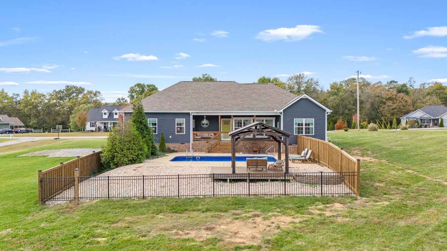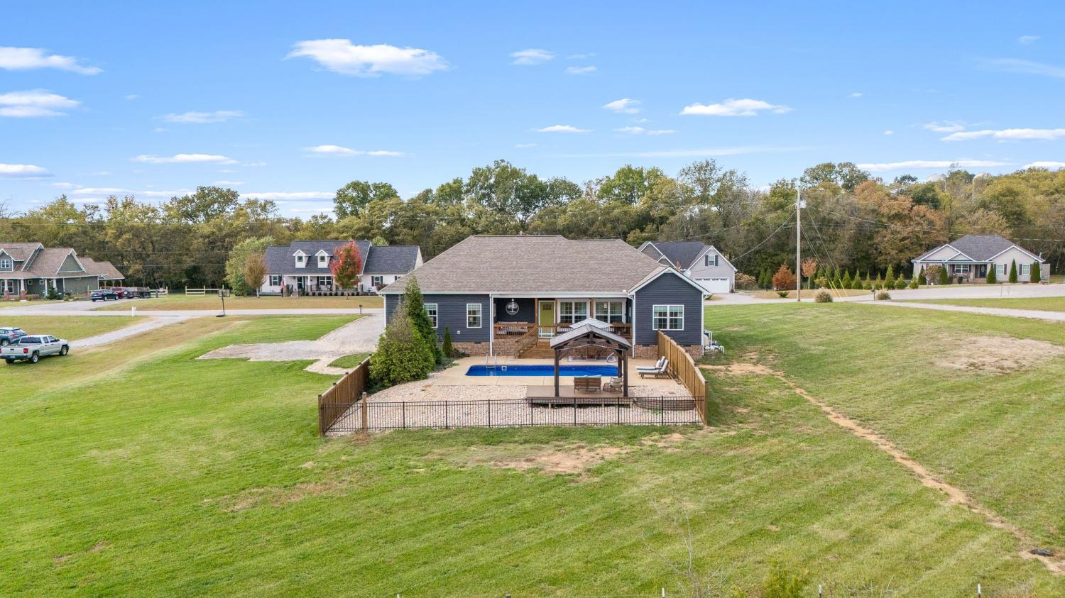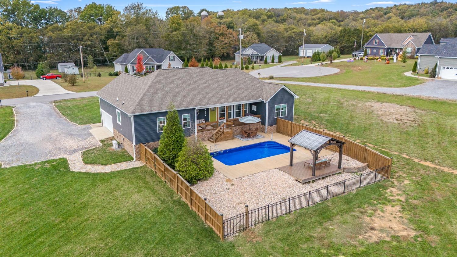 Custom Built one level home with gorgeous views, covered front porch, open floor plan, island kitchen with granite countertops, tile backsplash & gas stove, gorgeous primary bathroom with custom tile shower, soaking tub, double vanities, hardwood & tile flooring throughout, two car garage that is heated and cooled, covered back porch, in ground saltwater pool with new liner, gazebo, fenced backyard, and situated on 1.04 acres. United Fiber Internet is available. Conveniently situated 10 minutes from the interstate for effortless commutes to Murfreesboro. Additionally, it is in close proximity to the bypass. The property is merely 7 minutes from Shelbyville and 25 minutes from Tullahoma.