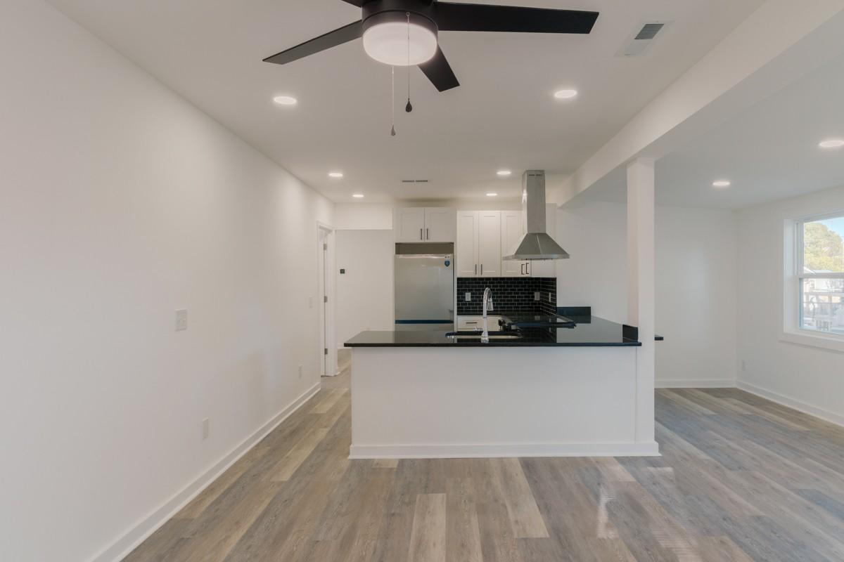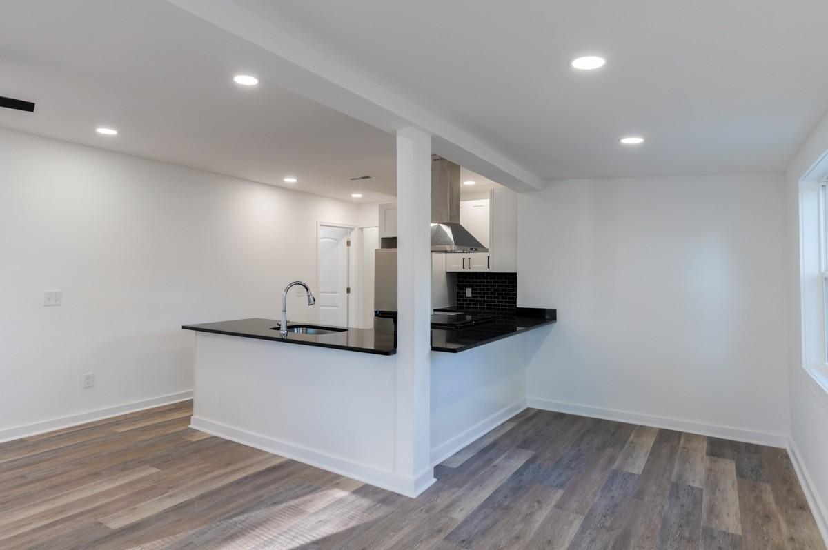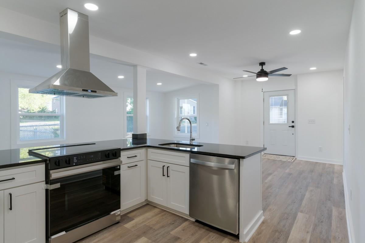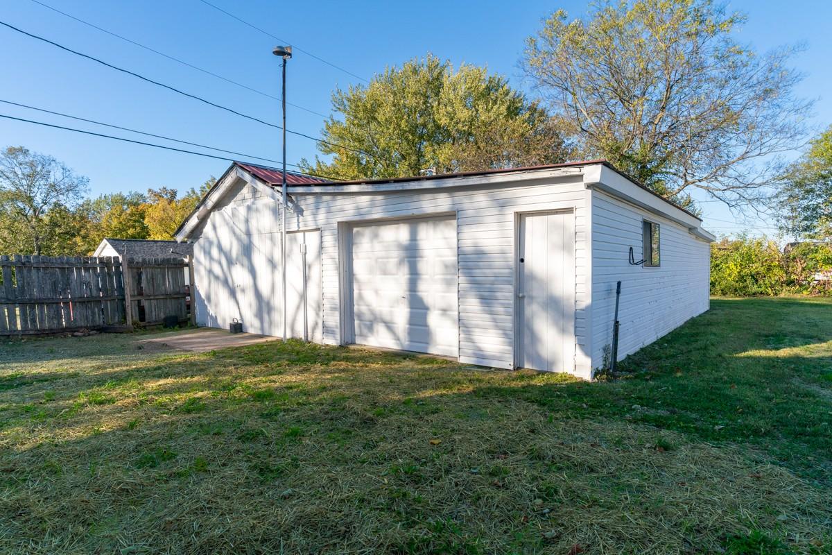 Welcome to this beautifully renovated 3-bedroom, 2-bathroom home combining classic charm with modern comfort. Built in 1945 and recently renovated from top to bottom, this single-level 917 sq. ft. home has been thoughtfully designed to maximize every inch of space for comfortable, efficient living. The open-concept layout creates a bright, airy feel, complemented by neutral luxury vinyl plank flooring that flows seamlessly throughout. The modern eat-in kitchen features striking black granite countertops, crisp white cabinets with black hardware, a sleek black backsplash, and stainless steel appliances, including a vented hood over the range. A counter overhang provides additional dining space, perfect for casual meals or entertaining. Both bathrooms have been completely renovated with stylish fixtures and finishes, while each bedroom offers comfort and flexibility. The home’s many upgrades include a new HVAC unit, tankless water heater, updated plumbing and electrical systems, new baseboards, sheetrock, lighting, and molding, as well as a new vapor barrier and updated floorboards in the foundation. The three-year-old metal roof, fresh paint, and modern finishes inside and out make this home truly move-in ready. Set on a level lot with double driveways, a partial fence, city water, and public sewer, the property also includes a detached two-car garage for parking or storage. Though compact in size, this home lives large with its open layout and smart design. Every detail has been thoughtfully selected to create a space that is stylish, functional, and low-maintenance. Perfect for first-time buyers, downsizers, or anyone seeking modern living in a manageable footprint, this home is ready to welcome you with comfort, efficiency, and timeless appeal.