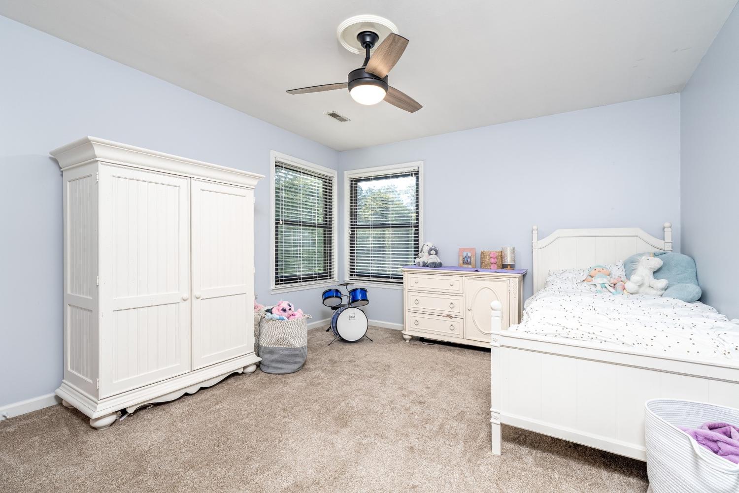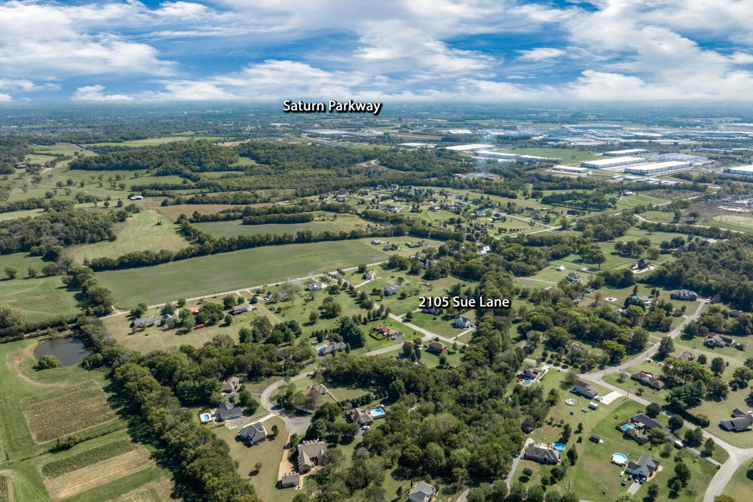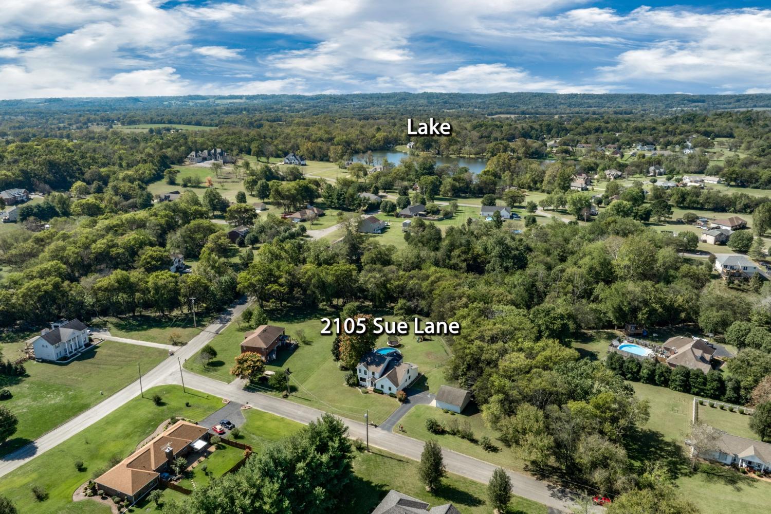 The sought after Lakeview Community is conveniently located near Saturn Parkway and rarely has homes come on the market. The established neighborhood boasts over 1 acre lots and a large stocked lake for the community to use for fishing or boating with a minimal annual HOA. 2105 Sue Lane is a well cared for all brick home that is freshly painted, has all new windows, an attached 2 car garage plus a detached 2 car garage that is perfect for a workshop, a car enthusiast or extra storage. The 1.4 acre parcel is very private with a creek at the back, a partially decked above ground pool and covered porch creating a back yard oasis. The interior is bright and open with fresh paint, detailed woodwork that adds character, updated eat-in-kitchen and a formal dining room, a spacious first floor primary suite with sizable walk-in closet. Upstairs has a large open landing that leads to two bedrooms and a full bath plus a roomy office/den flex space with huge closet and attic storage space. The location of this home provides that ideal combination of a tranquil, rural setting and the convenience of being just minutes from shopping and the interstate. All appliances remain including second fridge and freezer in garage plus a storage shed in the back yard.