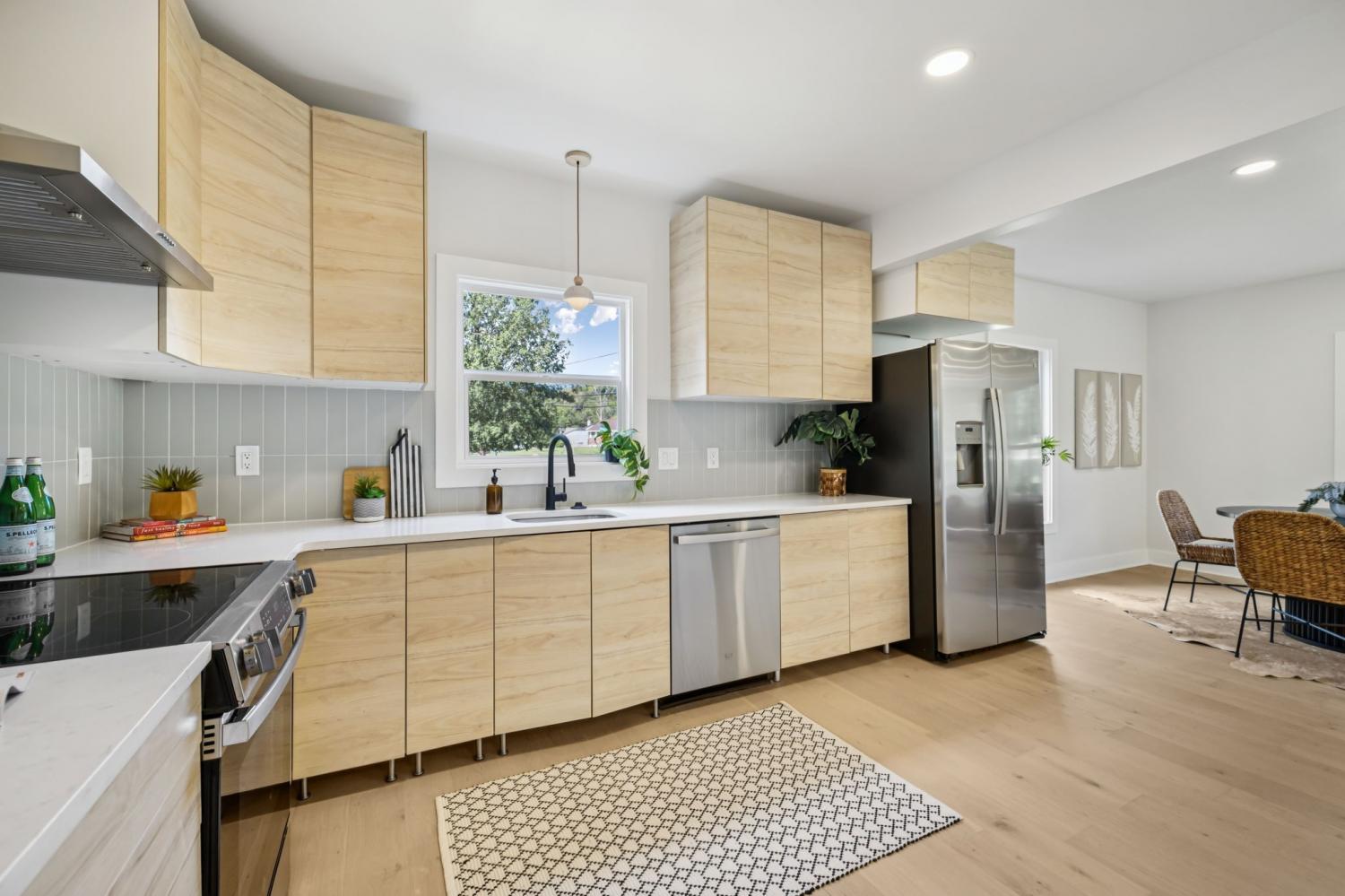 This beautifully renovated single-level home features 3 bedrooms and 2 bathrooms, set on an expansive 0.9-acre lot in Nashville. Inside, the open and airy layout showcases updated hardwood flooring, large windows that fill the space with natural light, and a fresh, modern color palette. The sleek kitchen offers stainless steel appliances, new cabinetry, and a stylish tile backsplash, seamlessly connecting to the dining area—perfect for everyday living or entertaining. The private primary suite is complemented by two additional bedrooms and a fully updated second bath. Downstairs, the unfinished basement provides ample space for storage, utilities, or potential future expansion. Outside, enjoy a covered patio overlooking the spacious yard—ideal for relaxing or hosting gatherings. With a carport, wide driveway, and generous outdoor space, this home blends modern comfort, functionality, and plenty of room to grow—all just minutes from local amenities.
