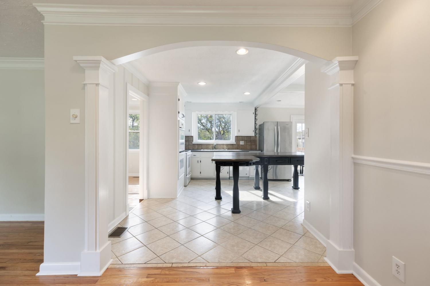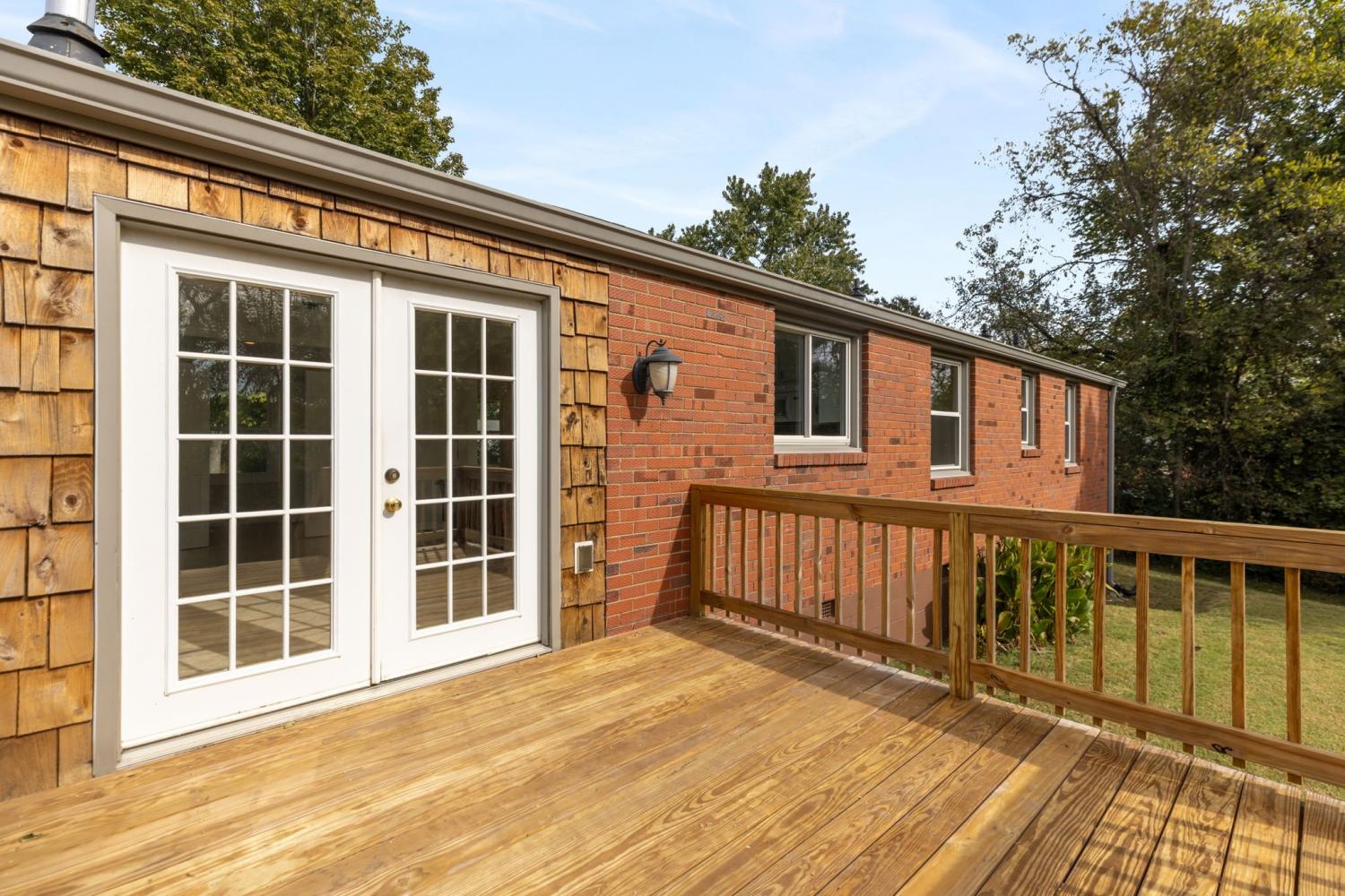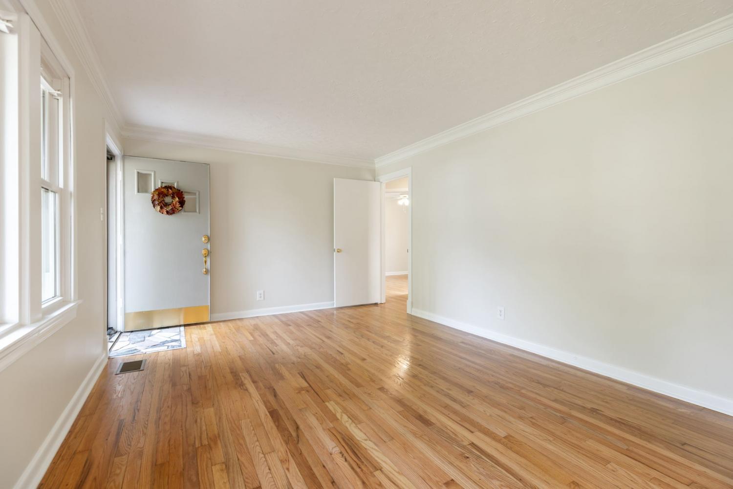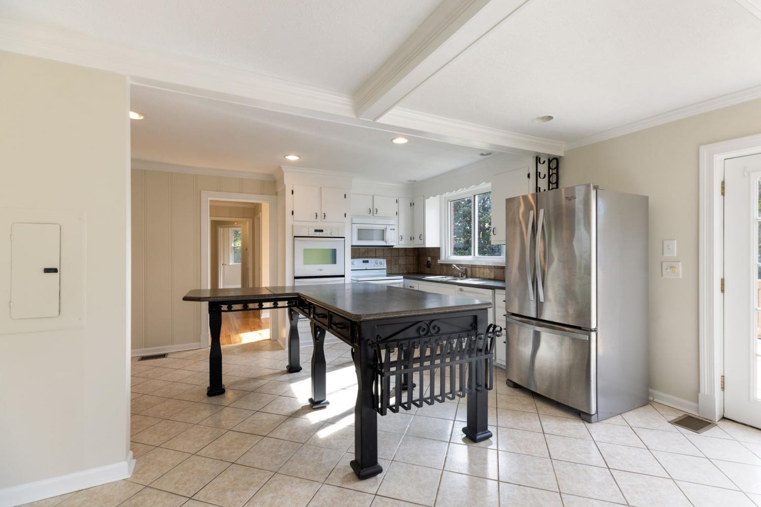 Freshly updated and full of charm, this beautifully maintained brick ranch blends timeless character with improvements over the years. Inside, you’ll find fresh paint, crown molding, and gleaming hardwood floors that flow through the main living areas and bedrooms. The kitchen impresses with painted cabinetry, abundant countertop space, and tile backsplash—plus a stainless refrigerator, electric cooktop, and microwave. The home’s previous owner was a dedicated baker who designed the kitchen to feature three ovens and a custom-made iron island perfect for crafting homemade recipes or hosting family gatherings. A spacious pantry and tile floors complete the space, while the adjoining den features exposed ceiling beams and plenty of room to gather. Additional highlights include a room that was converted into a bright home office, updated bathroom with tile surround and linen storage. Outside, a recently built deck overlooks the private backyard with mature trees and plenty of room to relax or entertain. Notable updates: Crawlspace was encapsulated in 2024 by Crawlspace brothers with a dehumidifier for peace of mind. The roof was replaced in 2025 and carries a Don Kennedy Roofing transferable 10- year No Leak Warranty. Windows were replaced in 2017 and are under warranty until 2027 (transferable to new owner). This move-in-ready home combines practical updates with classic design in a serene, convenient location—perfect for anyone seeking comfort and character in one package.